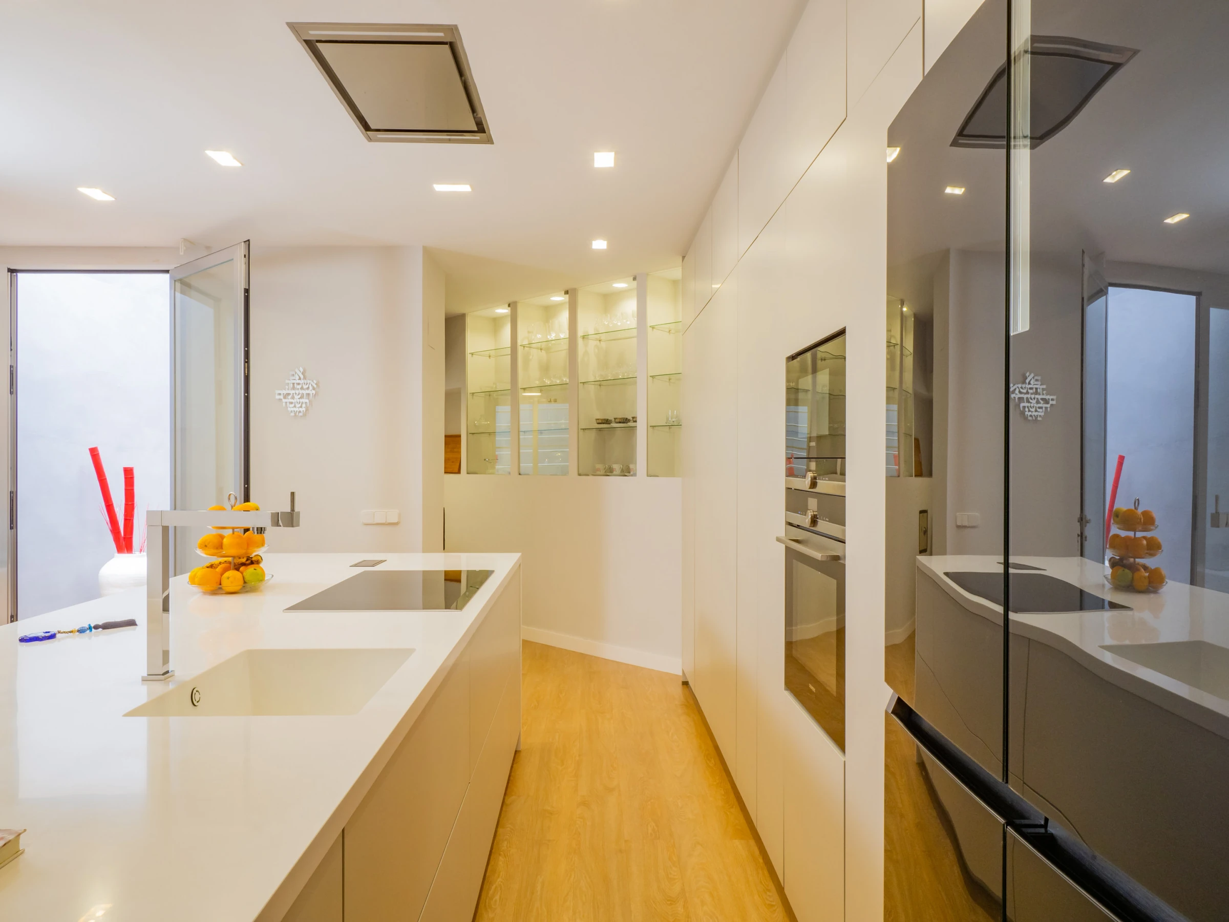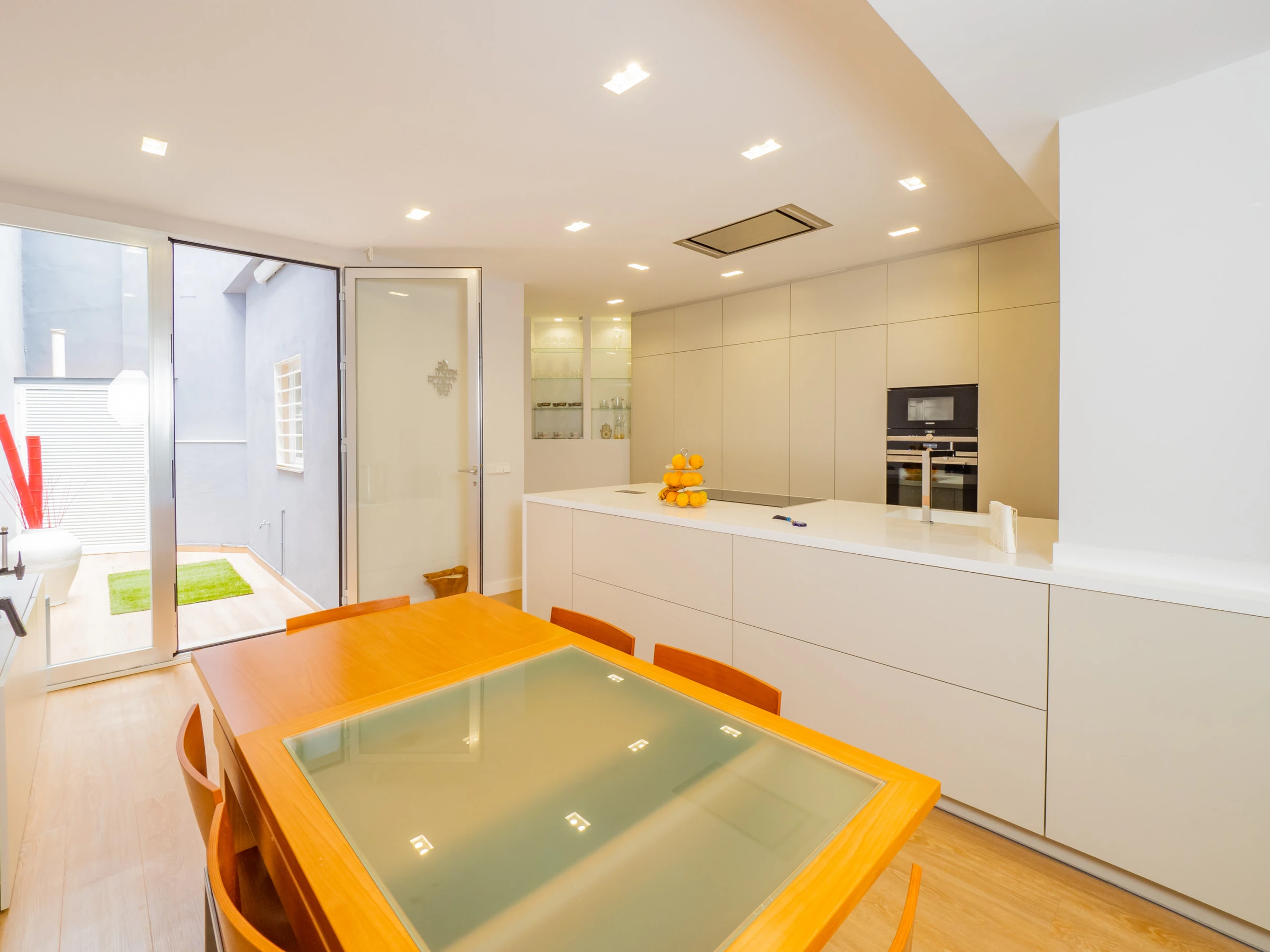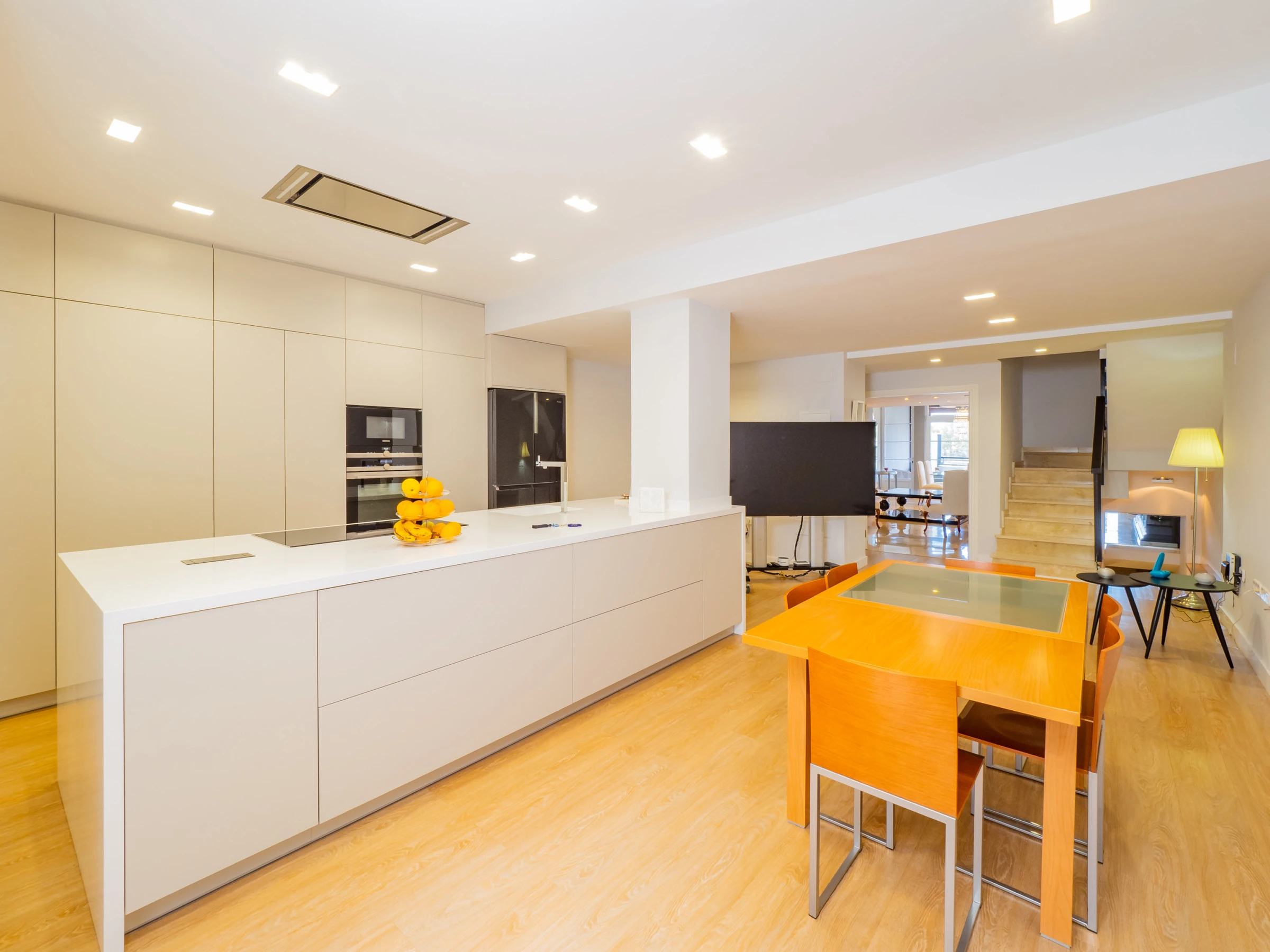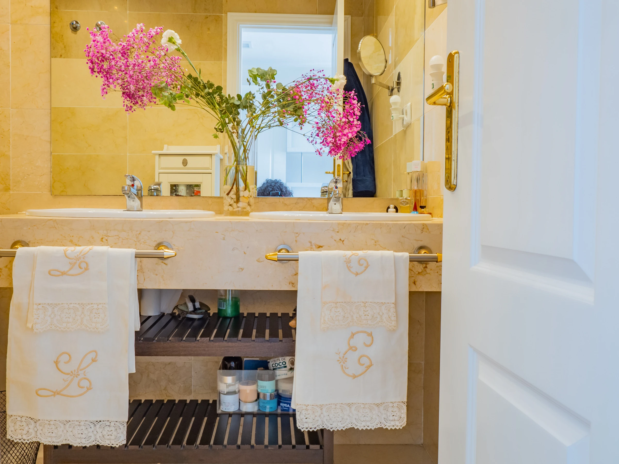 Le logement dispose de 4 chambres spacieuses et élégantes, équipées de grands lits (2x2 mètres), réparties sur plusieurs étages pour offrir intimité et confort. À l'étage supérieur, la chambre principale comprend une salle de bain attenante et une terrasse privée avec une vue spectaculaire. À l'étage intermédiaire, une autre chambre avec un lit de couple, de grands placards et une terrasse accueillante parfaite pour des dîners en plein air. Au rez-de-chaussée se trouvent deux autres chambres, l'une avec un lit de couple et l'autre avec deux lits individuels, toutes deux avec une salle de bain attenante.