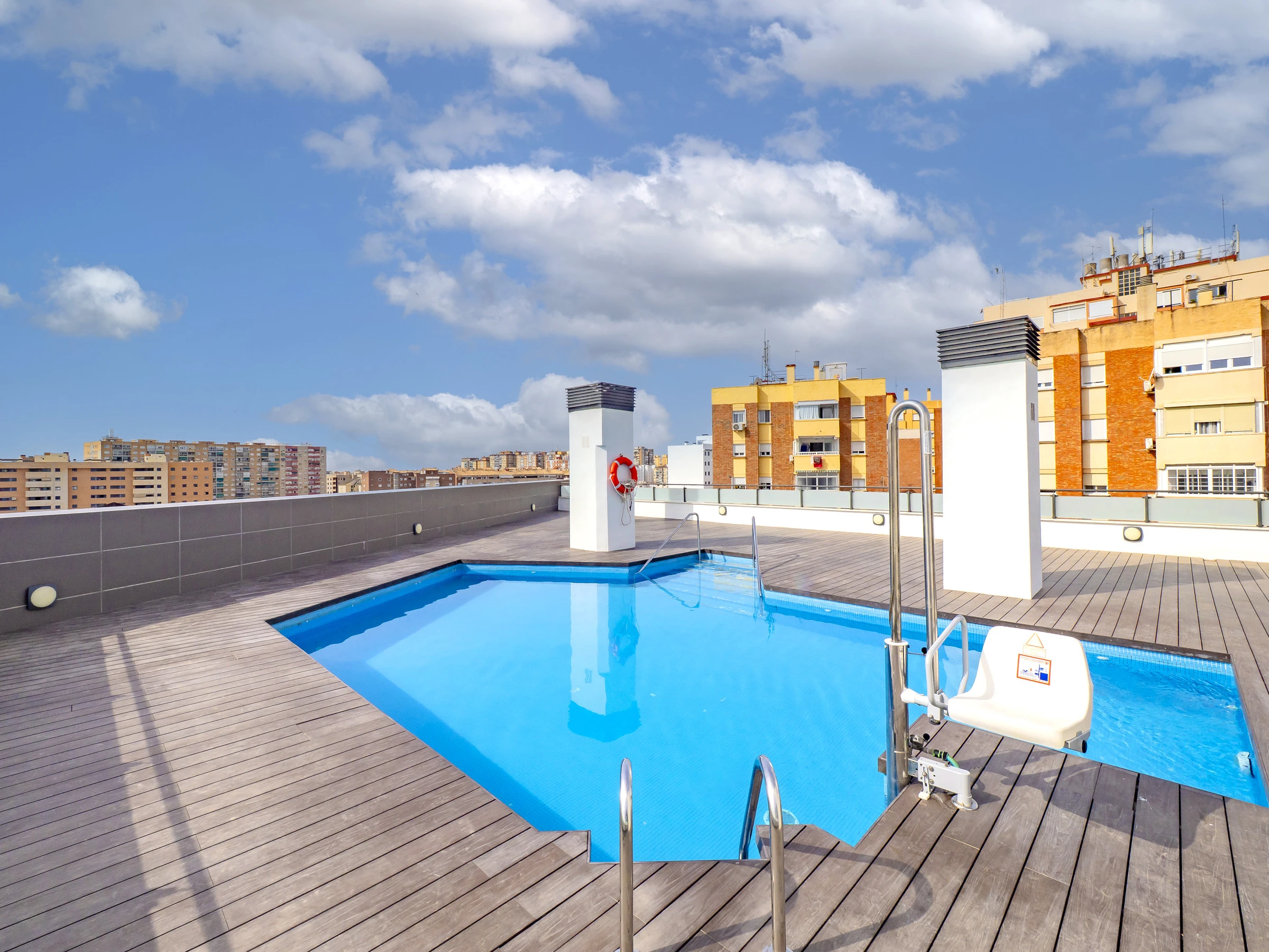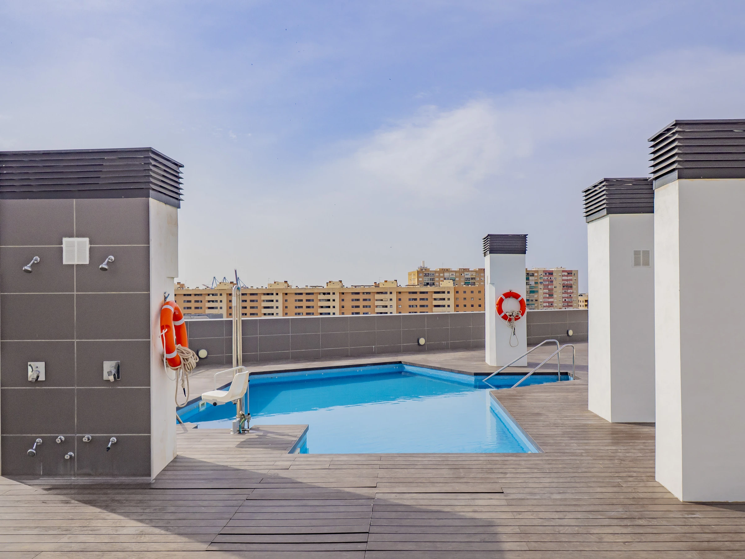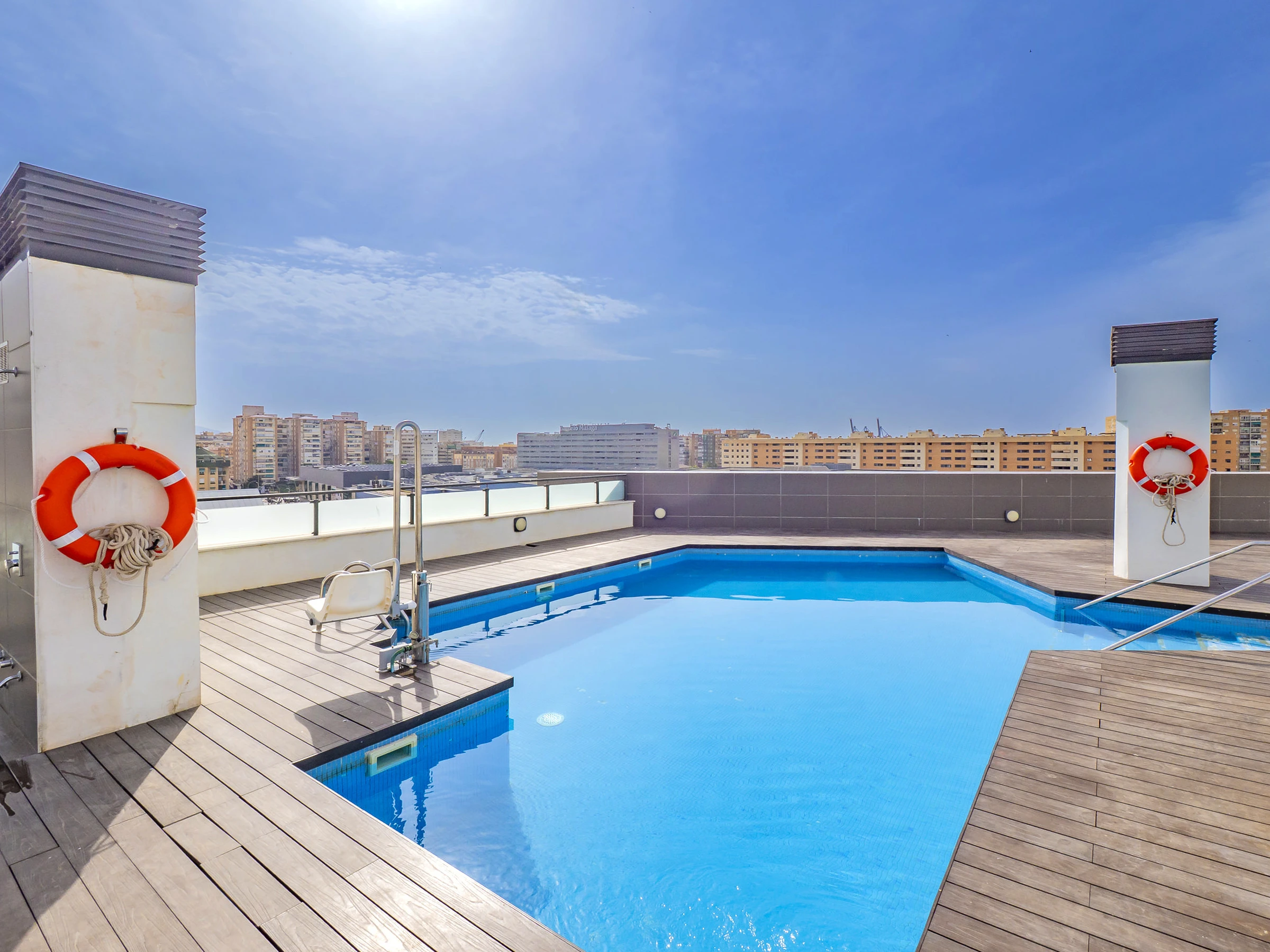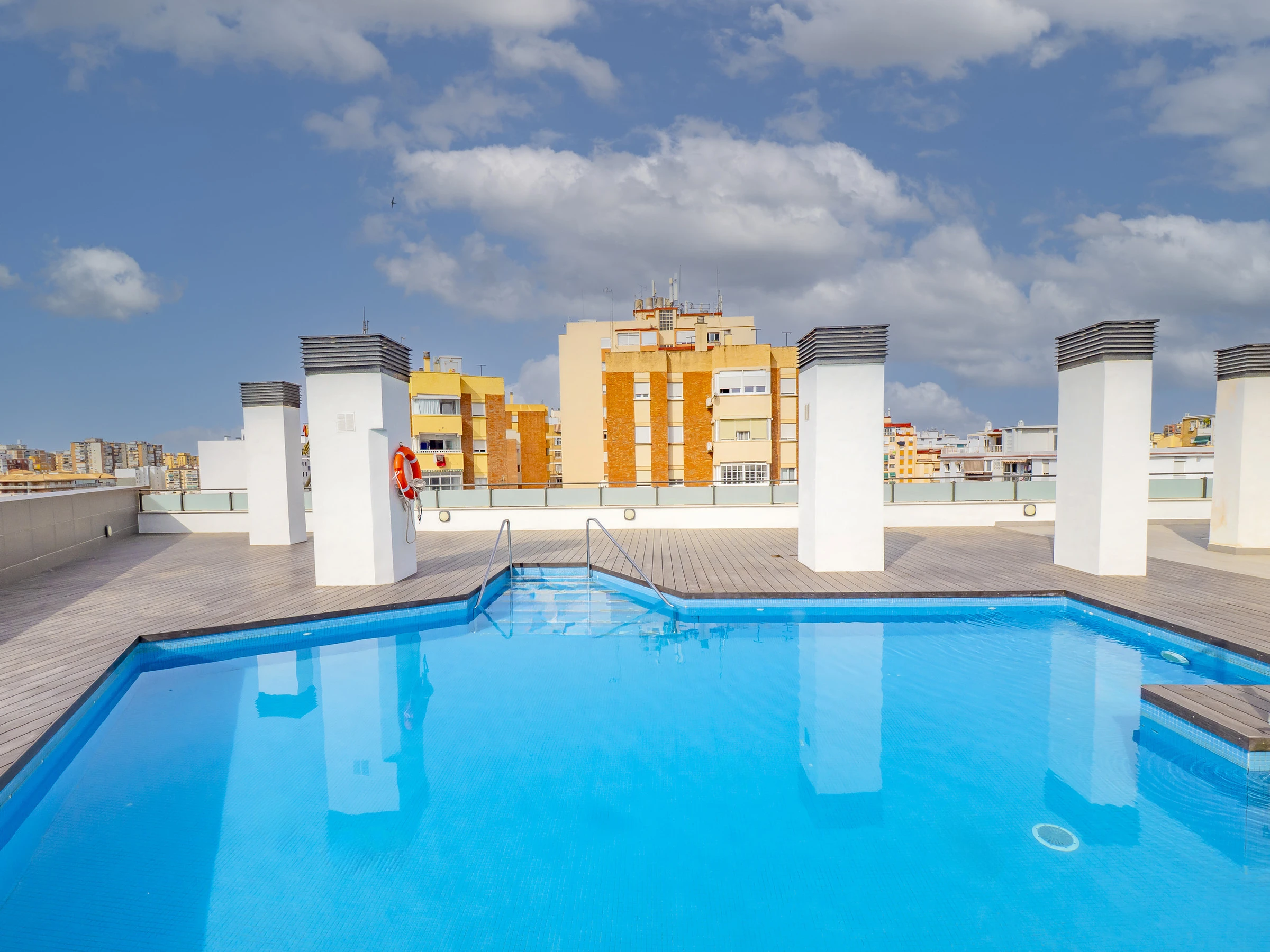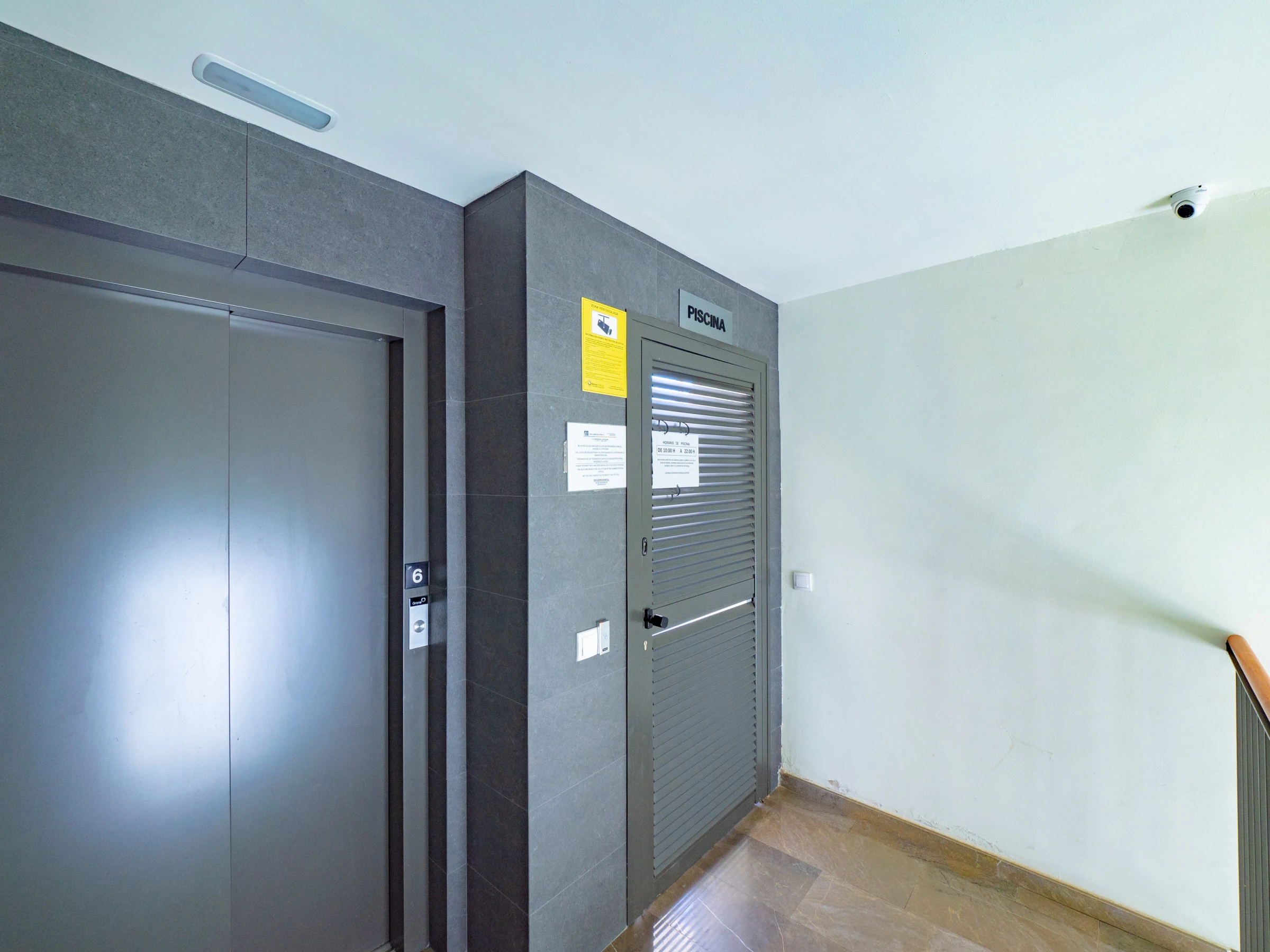 Le bâtiment dispose d'un ascenseur et d'une belle piscine communautaire au dernier étage, parfaite pour se détendre après une journée d'exploration. Vous avez également la possibilité de stationner dans le même bâtiment moyennant un coût supplémentaire par nuit (à vérifier auprès de l'agence).