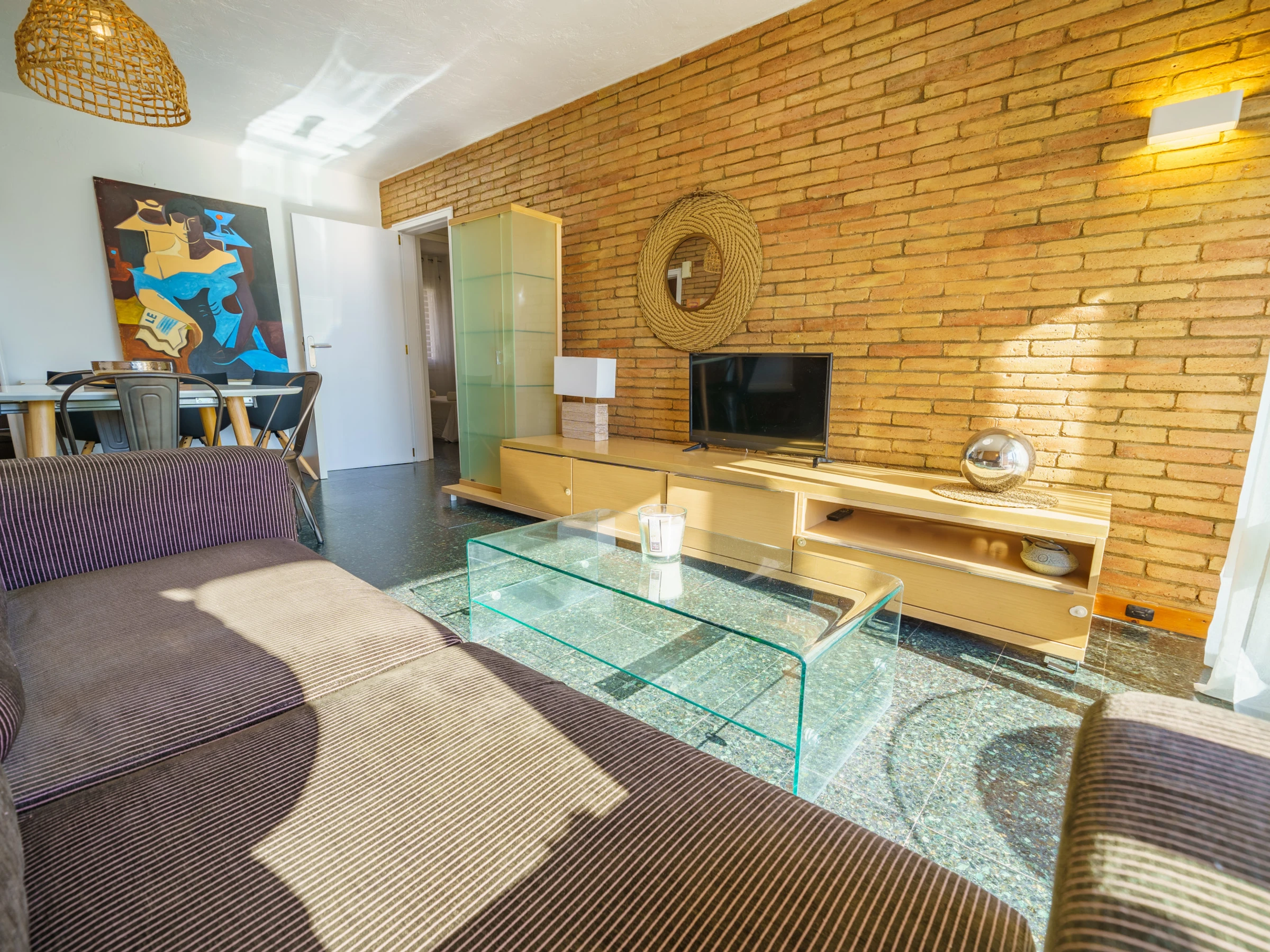 Bienvenue à Apto Miracel, un magnifique appartement conçu pour que vous passiez des vacances confortables, détendues et remplies de bons moments. D'une capacité de 5 personnes, il se trouve au troisième étage d'un immeuble avec ascenseur, idéal pour les familles qui recherchent de l'espace, du confort et un emplacement inégalable près de la mer. Son intérieur est spacieux, lumineux et accueillant, avec la climatisation dans le salon pour soulager les journées d'été chaudes, dispose d'un salon-salle à manger spacieux, parfait pour partager des repas, se reposer après une journée à la plage ou profiter d'un film en famille. Il dispose du service wifi, pour que vous puissiez rester connecté quand vous en avez besoin. La cuisine est entièrement équipée, conçue pour que vous puissiez préparer des petits-déjeuners tranquilles ou des dîners spéciaux. Il dispose de trois chambres confortables et de deux salles de bains, dont une en suite dans la chambre individuelle, offrant plus de intimité et de confort. Le balcon offre un coin agréable où se détendre avec un café ou profiter de la brise marine. Tout l'intérieur est spacieux et très lumineux, créant une ambiance chaleureuse et agréable pour se sentir comme chez soi dès le premier jour. Pour votre tranquillité, le logement comprend une place de parking extérieure, en plein air, dans le même immeuble, non numérotée, un grand avantage dans la zone côtière. De plus, le logement est entièrement préparé, avec un service de ménage, la literie et les serviettes incluses.