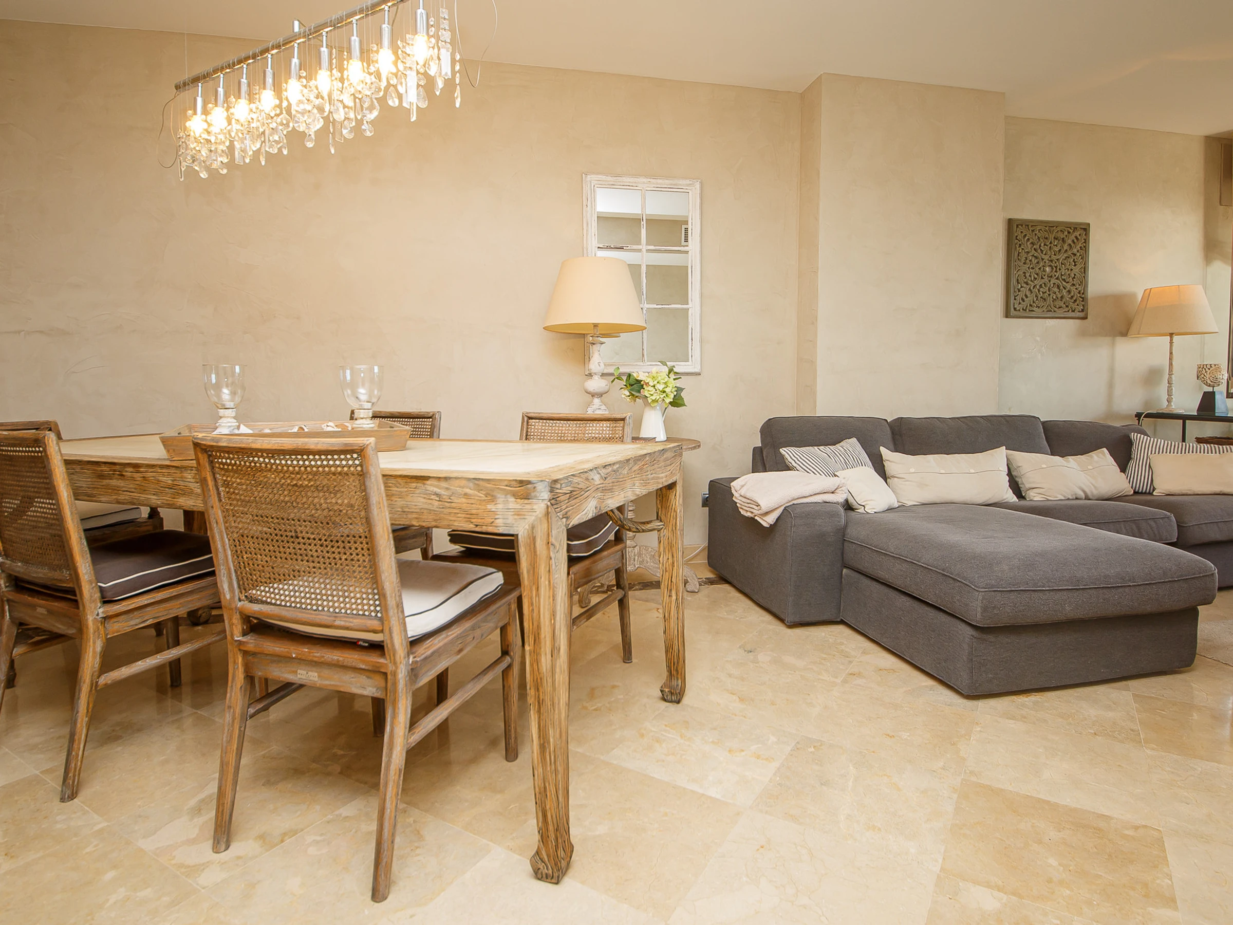 Appartement de trois chambres et deux salles de bain à Marina del Castillo, à quelques pas de la promenade menant à Puerto de la Duquesa. Deux terrasses offrent une vue imprenable sur la mer. La terrasse principale, accessible depuis le salon, est aménagée avec un salon de jardin, une table et six chaises. La deuxième terrasse est accessible depuis la chambre principale et dispose d'une chaise longue. L'appartement est entièrement climatisé, dispose d'une connexion Wi-Fi privée et d'une place de parking souterrain dans le même immeuble.