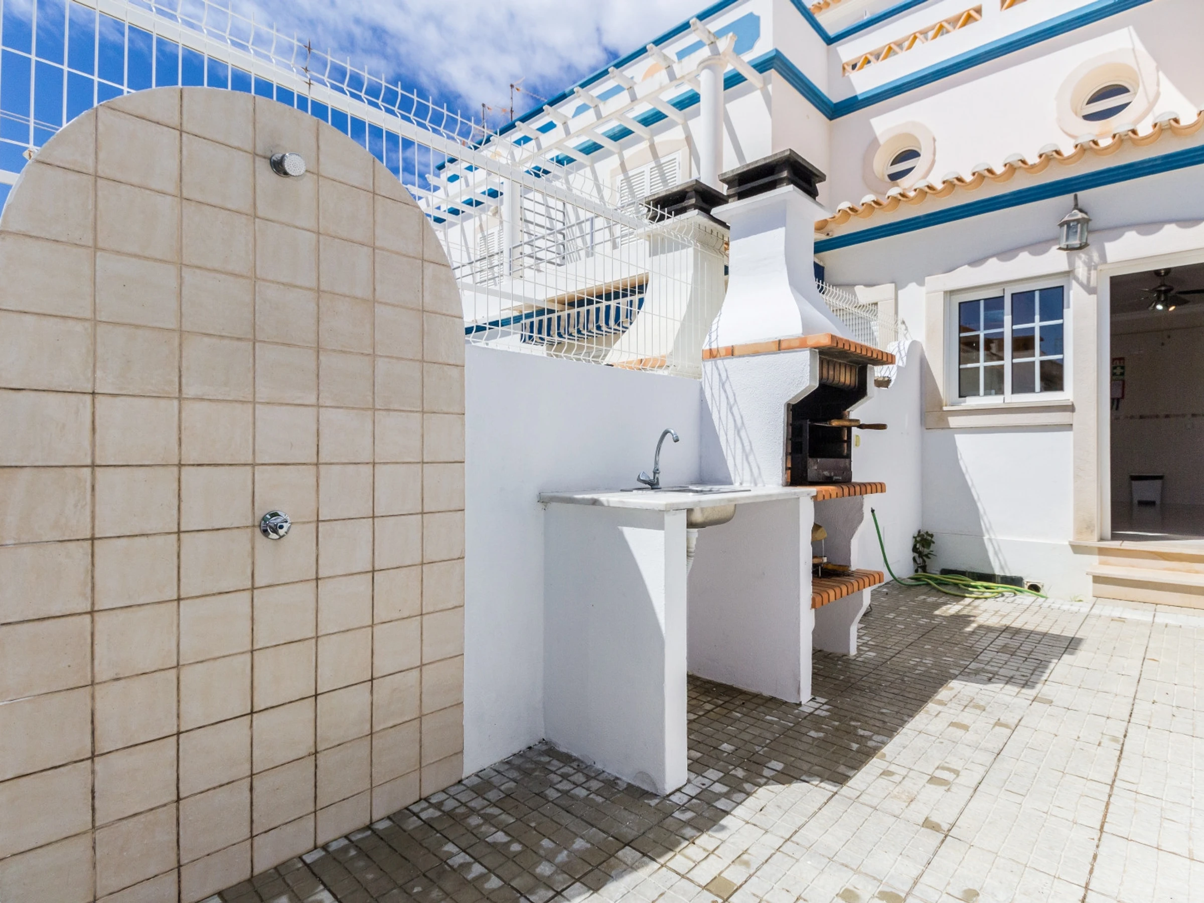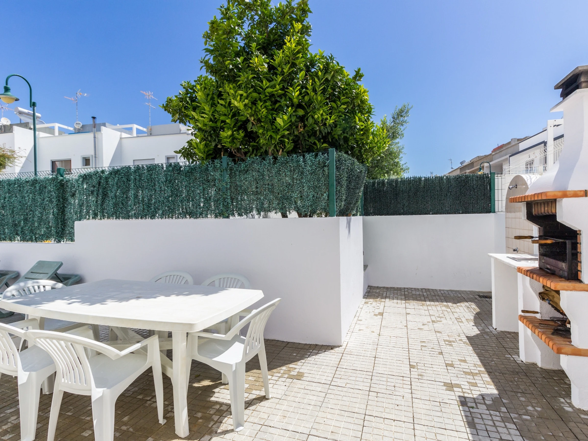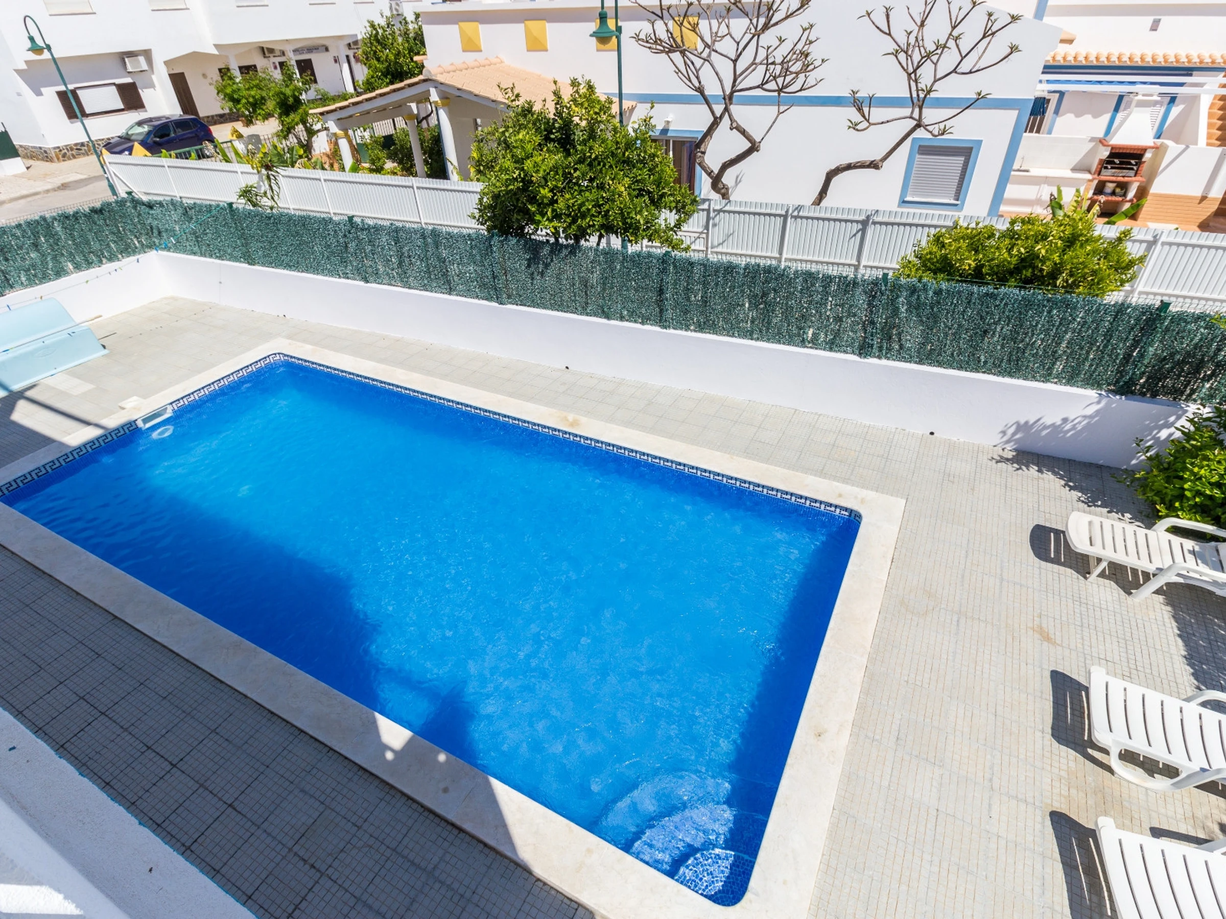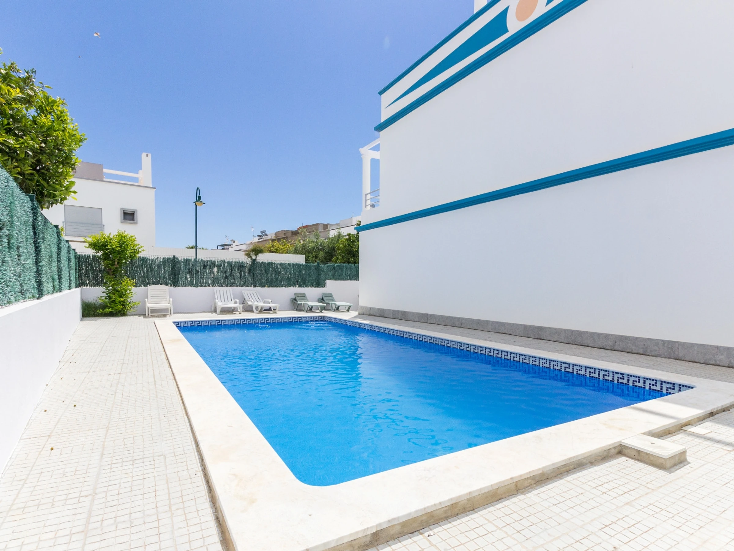 L'espace extérieur est vraiment un point fort, avec une zone de piscine privée, des transats, un barbecue, un évier, une table, des chaises et un parasol, parfait pour les repas en plein air et les loisirs. Le logement dispose de la climatisation, du Wi-Fi gratuit et d'un emplacement de stationnement dans le même bâtiment.
