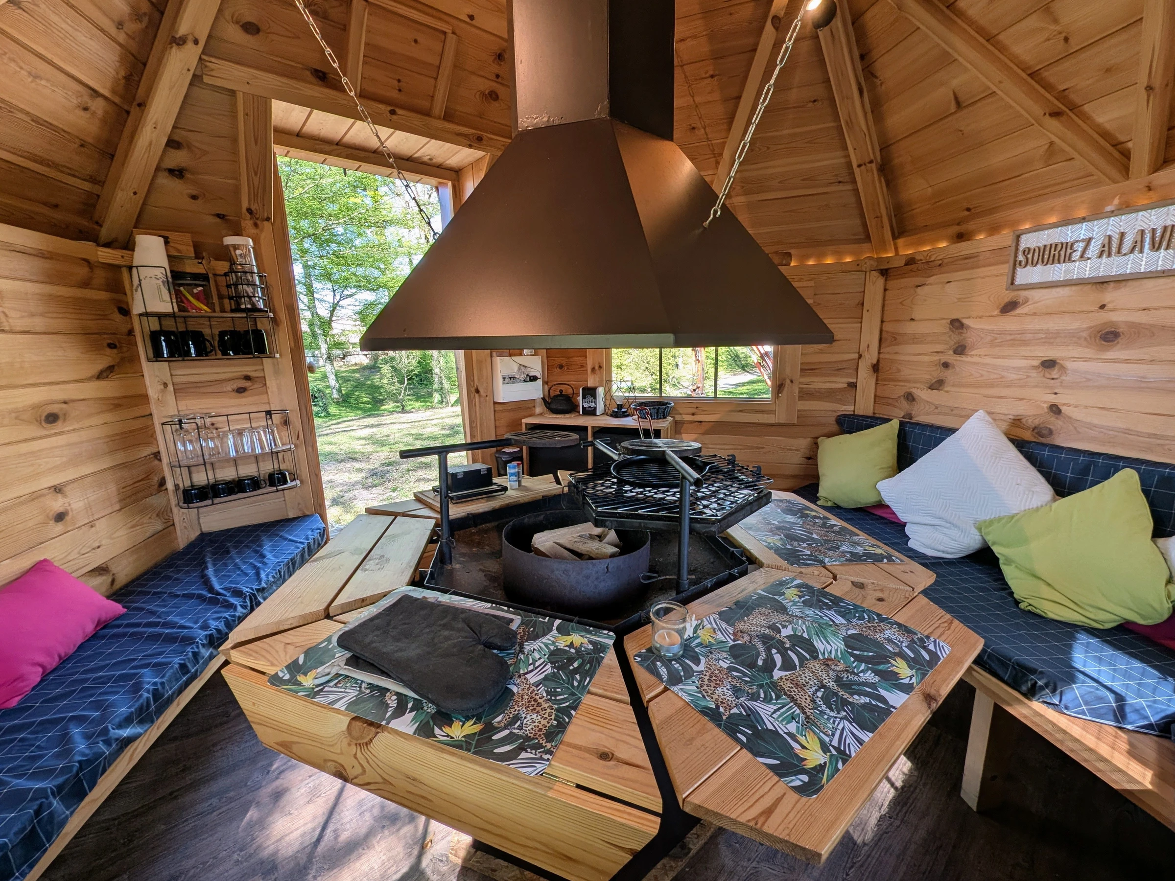 Sur place, profitez librement des nombreux équipements et espaces de détente : kota grill privatif pour un repas autour du feu, sauna sur réservation, cabane du pêcheur avec barbecue, canoë-kayak, paddle, vélos, terrain de pétanque et jeux de plein air.