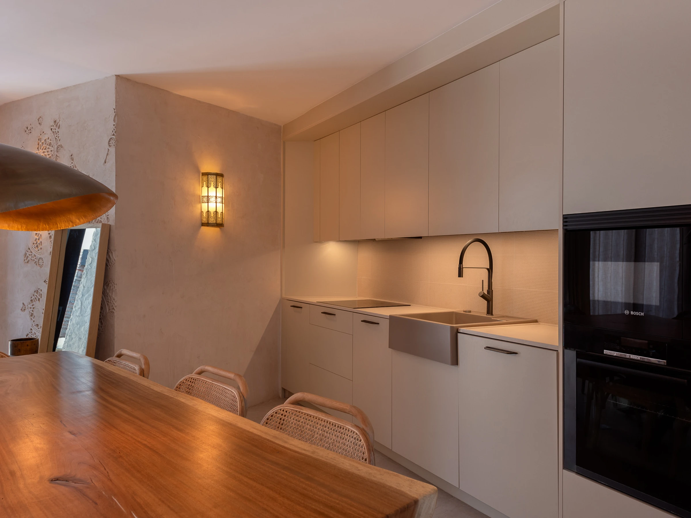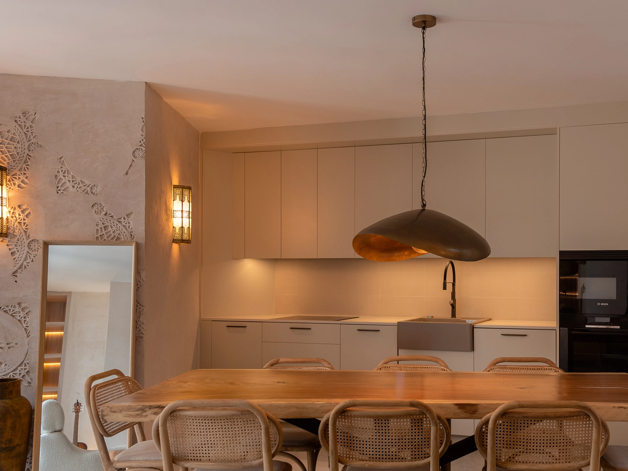 Avec ses éléments de design traditionnel, comprenant un bain marocain serein et un espace de thé tranquille surplombant une cour magnifiquement aménagée, cette maison dégage l'élégance. En entrant dans la propriété, les invités trouveront une chambre double au rez-de-chaussée, une cuisine ouverte et un espace de vie avec une table à manger pour huit personnes, ainsi qu'une charmante cour avec des sièges détendus pour recevoir et un bain turc - pour se rafraîchir ou se réchauffer selon la météo !