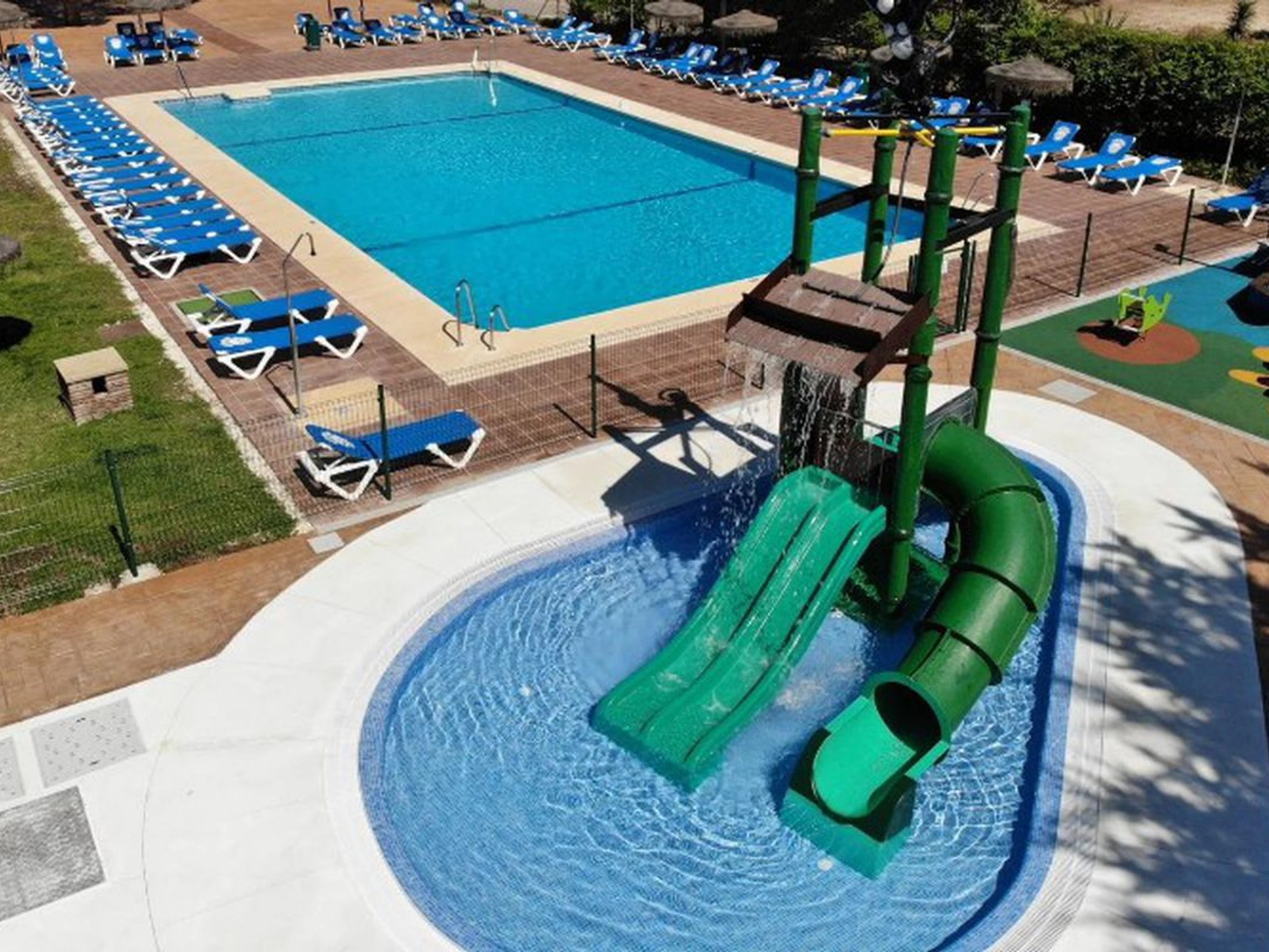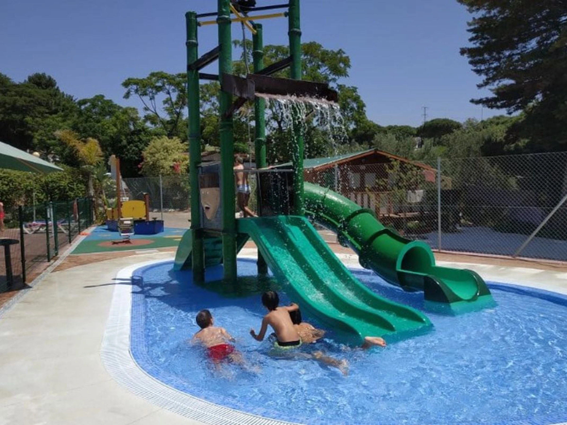 - Une piscine extu00e9rieure avec piscine pour enfants avec toboggans et aire de jeux pour les plus petits.rnPiscine pleine air l'u00e9tu00e9,