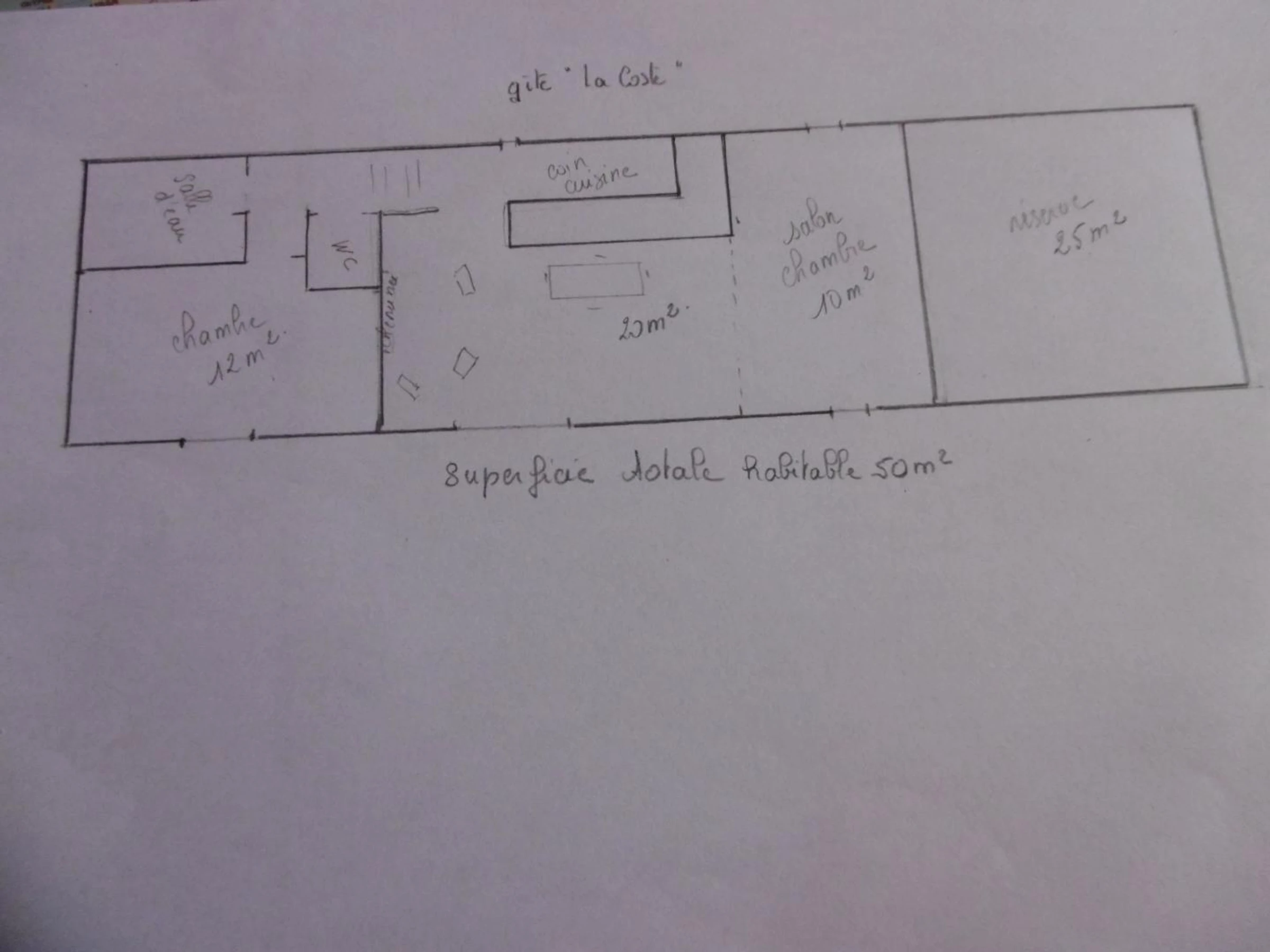 Vous apprécierez cette maison rustique en pierres apparentes typique de la région. Au rez-de-chaussée, vous entrerez par la pièce à vivre composée d'un coin-cuisine, salle à manger et salon (fauteuils, poêle à bois) suivie d'une chambre séparée par une cloison amovible disposant d'1 lit en 90x190. Par 5 marches descendantes (rampe et barrière de sécurité en haut), vous accéderez à une chambre avec 1 lit en 90x190 et 1 lit en 140x190, à la salle d'eau avec lavabo et douche à l'italienne et aux WC indépendants.