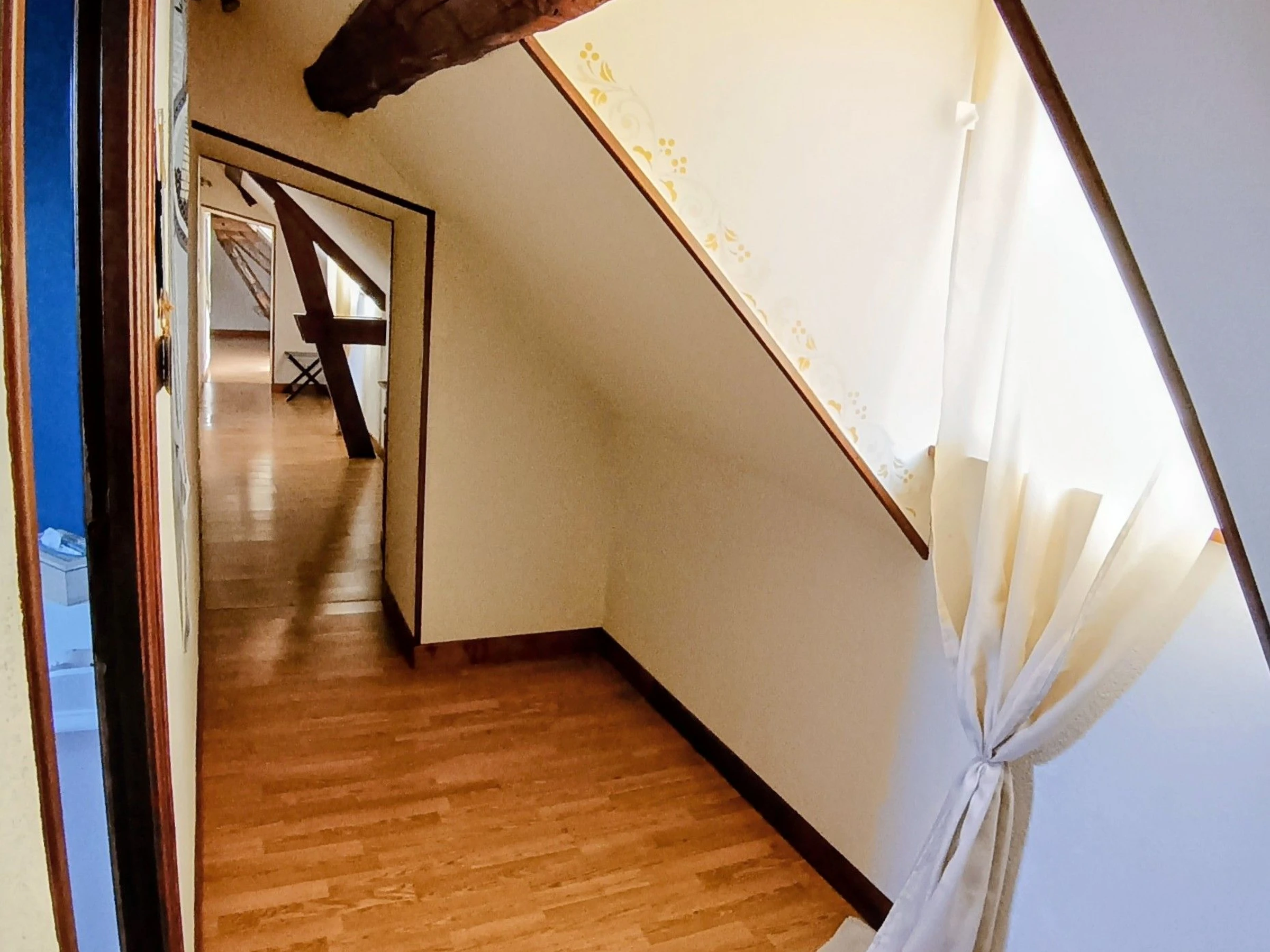 Le gîte, mitoyen à l'habitation des propriétaires, offre au rez-de-chaussée un grand double séjour avec poutres et pierres apparentes : salle à manger, cuisine équipée, salon confortable, espace de jeux et WC. Un poêle à granulés réchauffera vos soirées hivernales. A l'étage, 4 belles chambres accueillant chacune de 2 à 4 personnes : 1 chambre avec 2 lits 90x190 jumelables, 1 chambre avec 3 lits 90x190, dont 2 jumelables, 1 chambre avec un lit 140 et une chambre familiale avec 4 lits 90x190 dont 2 jumelables. Ces 4 chambres disposent chacune d'une salle d'eau avec WC. La 5ème chambre "le dortoir", idéale pour les ados, est accessible par un escalier depuis le salon ; elle est composée de quatre lits simples (80x200).