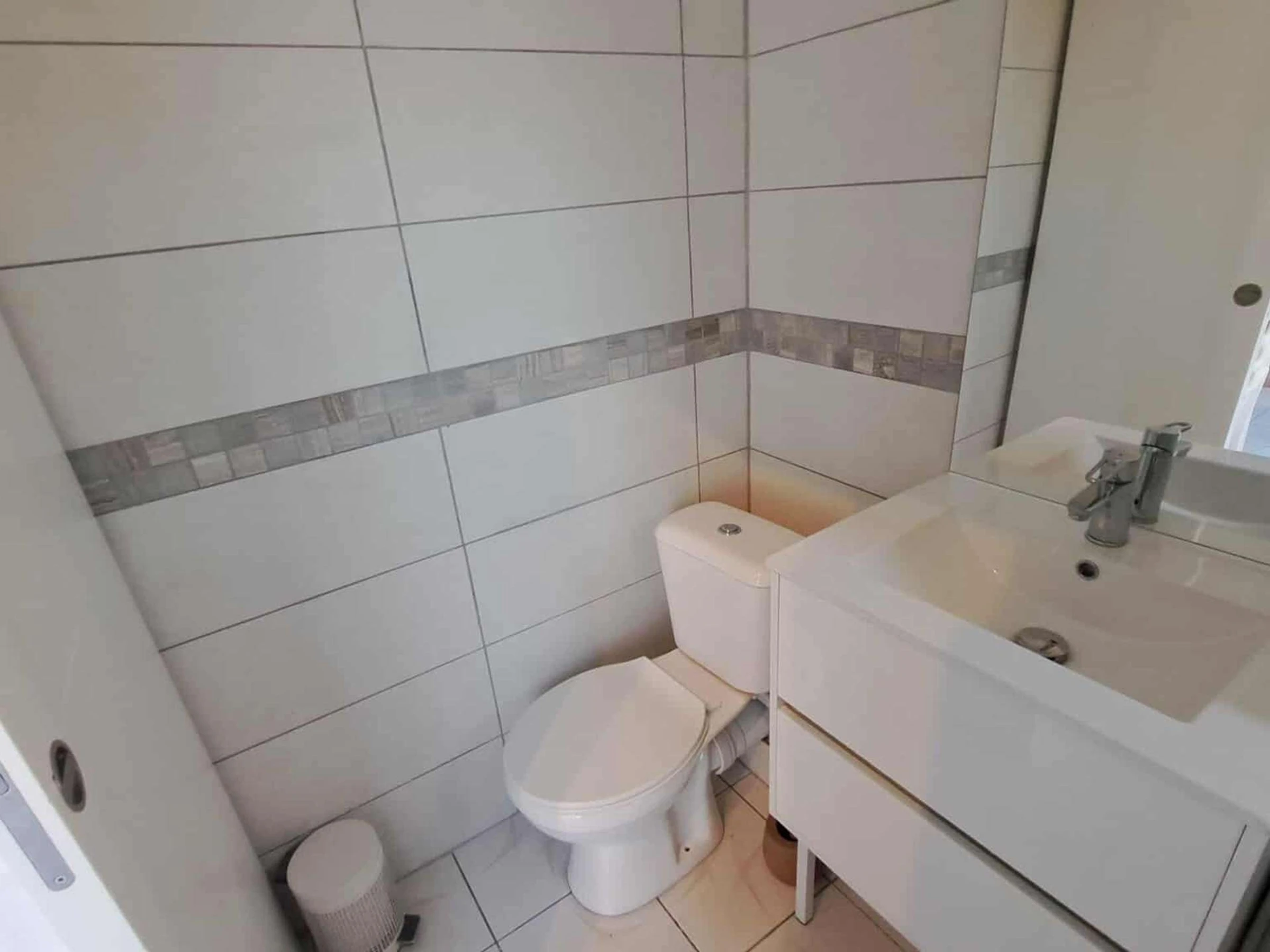 Pour votre confort, une salle d'eau avec douche, lavabo, meuble de rangements et WC est à votre disposition.
