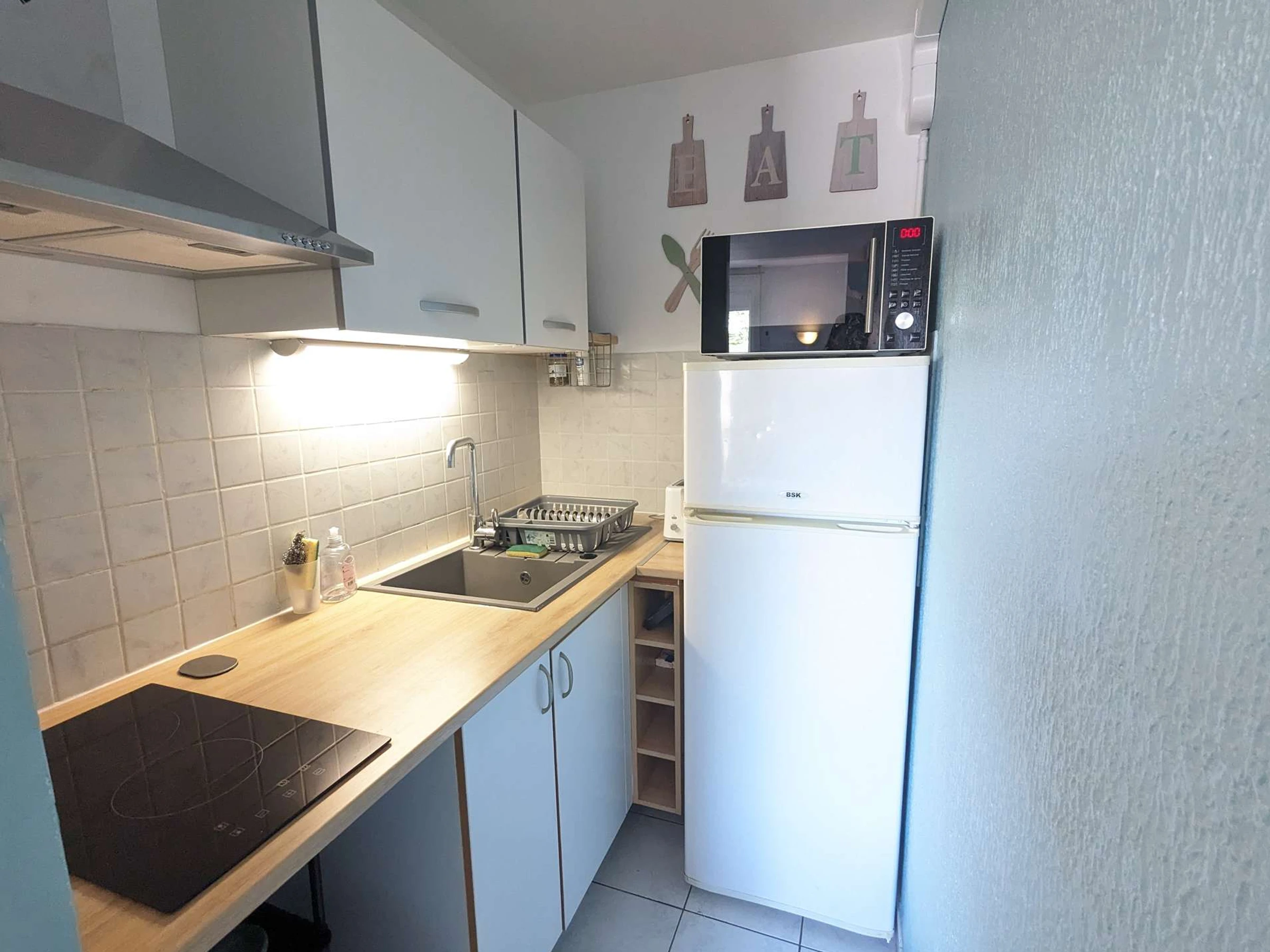 Cuisine équipée : plaque vitrocéramique, micro-ondes, réfrigérateur/congélateur, cafetière électrique et cafetière Senséo, et toute la vaisselle nécessaire pour préparer vos repas.