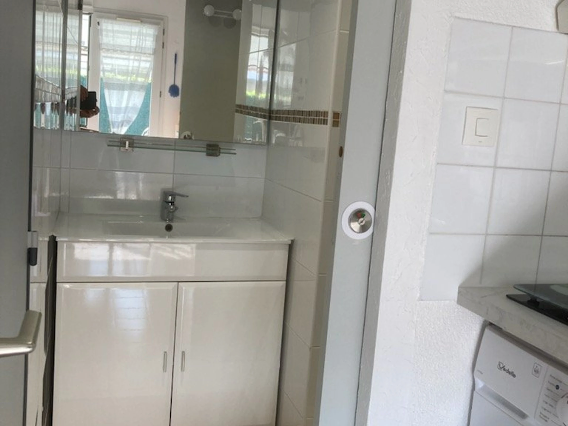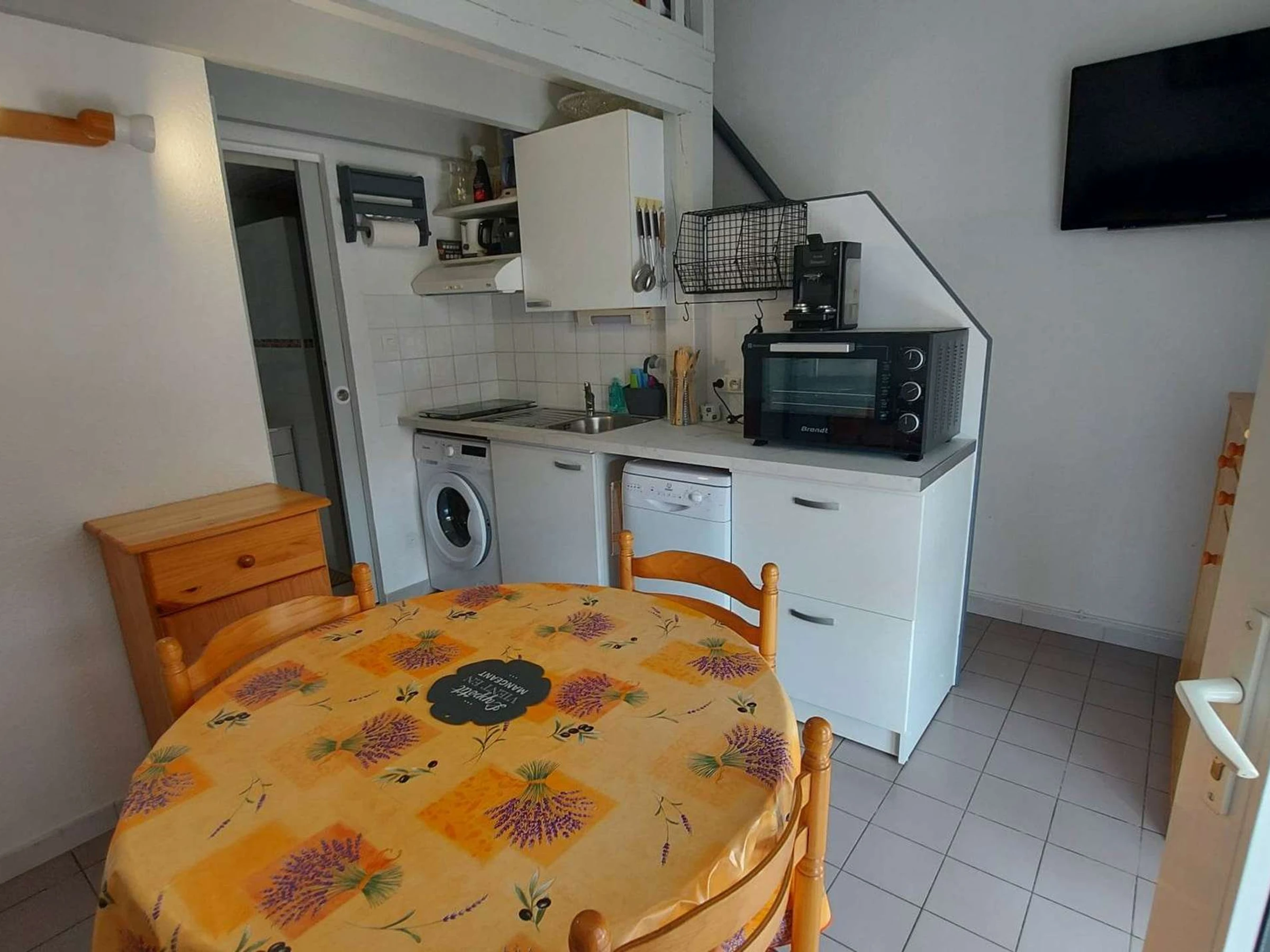 Coin cuisine équipé avec lave-linge et lave vaisselle. Au rez-de-chaussée une chambre avec un lit 140 cm. Salle d'eau avec wc.
