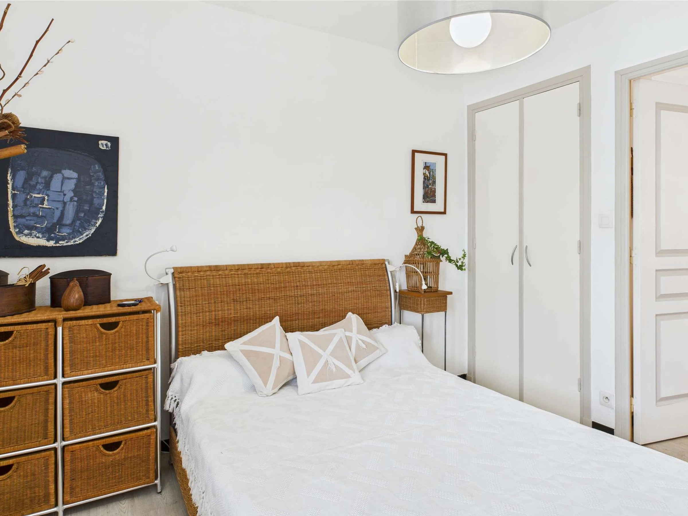 Première chambre avec lit double (140 cm) et salle d’eau privative.