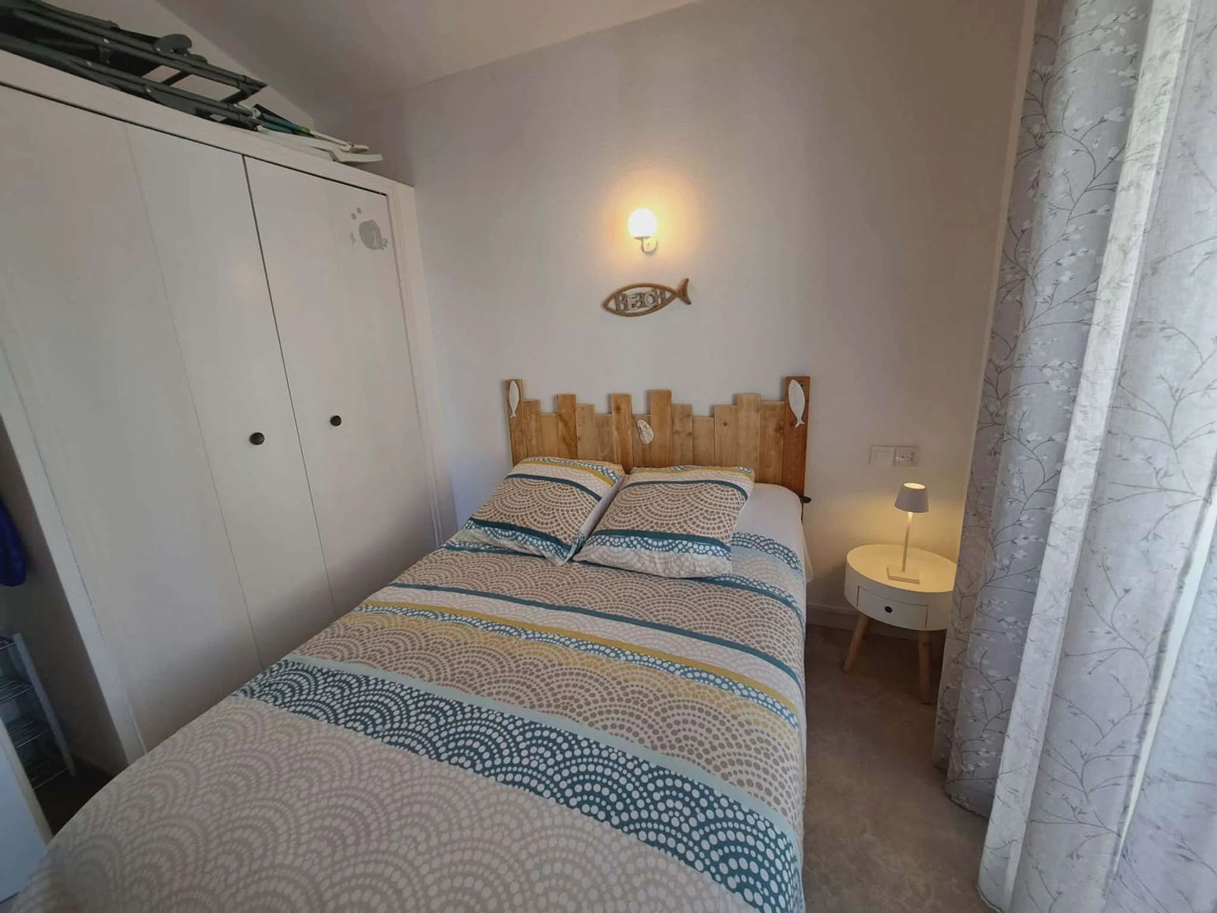 Une chambre confortable avec lit 140 cm et armoire pour poser vos valises tranquillement.