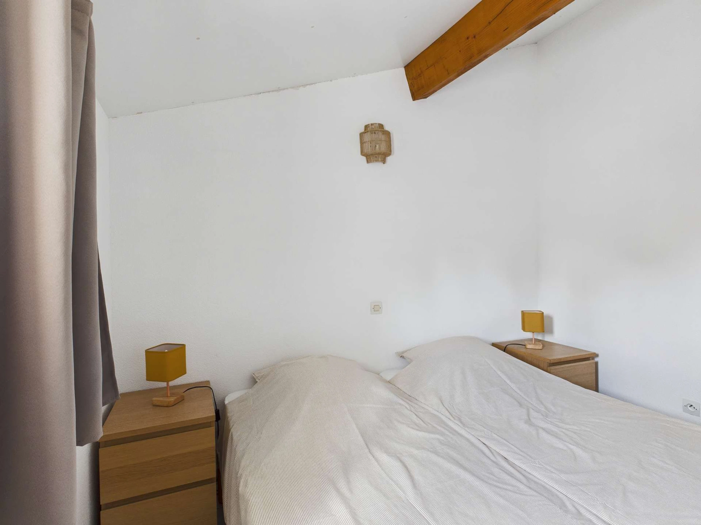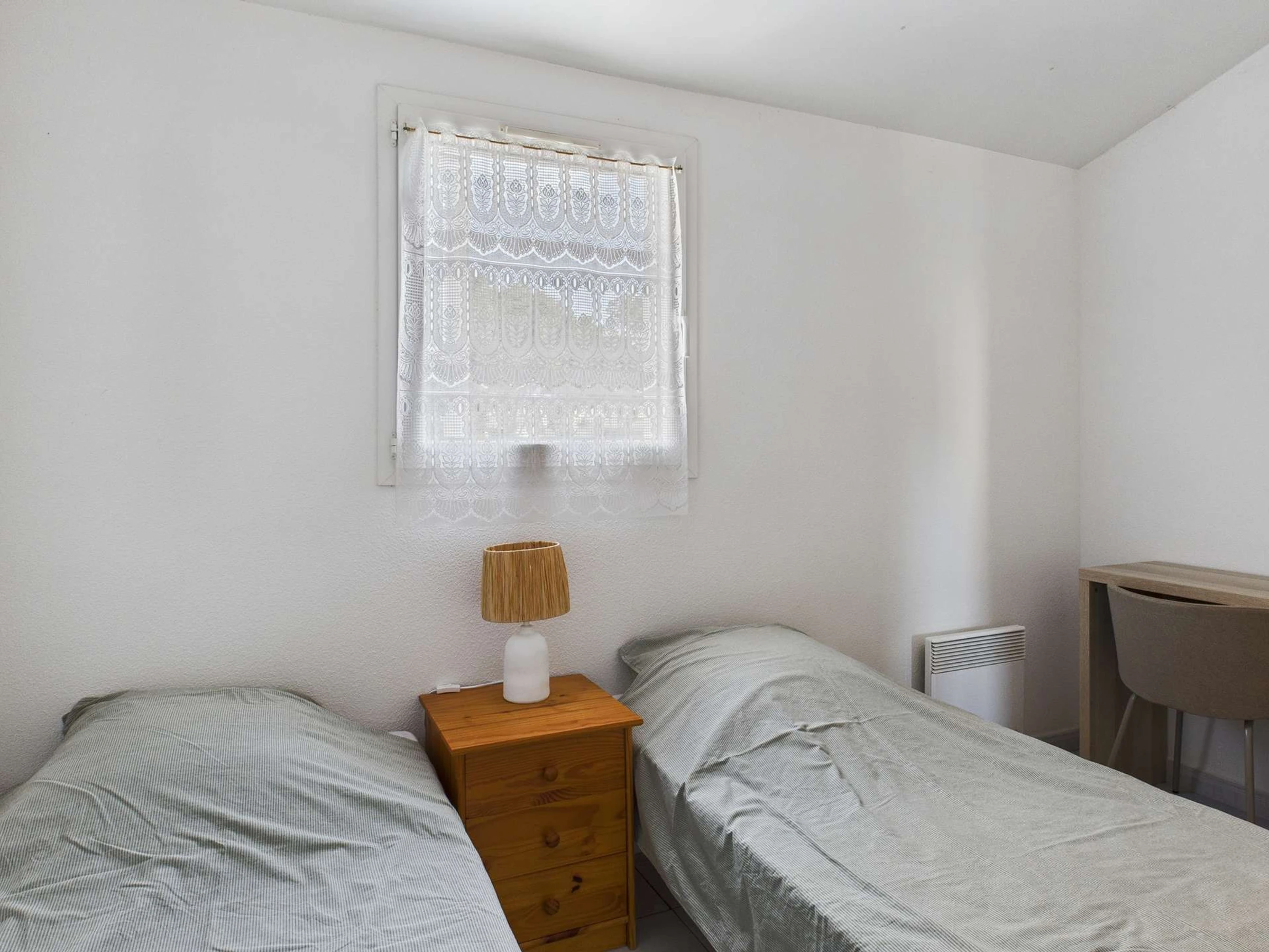 A l'étage 1 chambre avec deux lits simple coller l'un à l'autre et 1 chambre avec 2 lits simples avec placards de rangement.