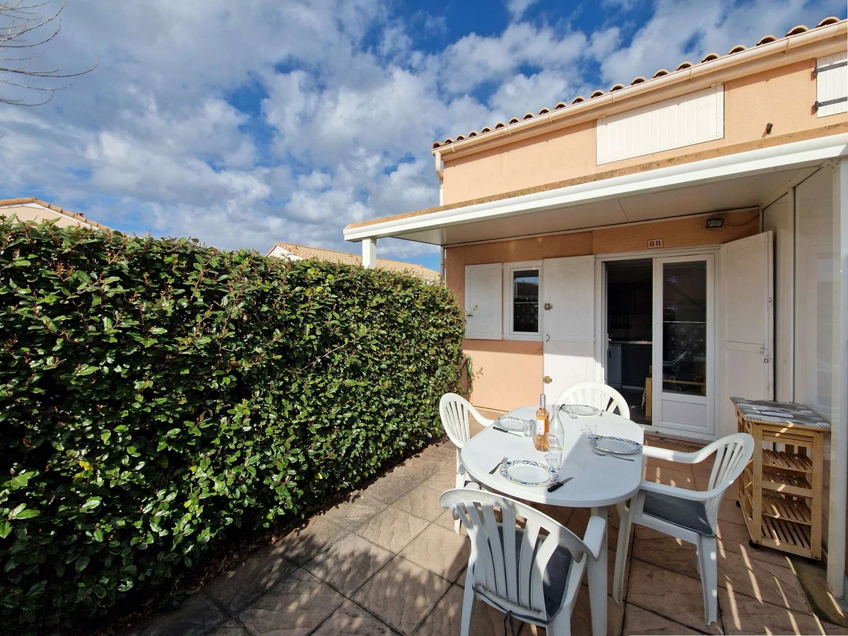 Idéalement située à seulement 250 mètres de la plage, maisonnette mitoyenne dans une résidence fermée parfaite pour une famille. Elle combine confort et commodité, offrant un cadre agréable pour vos vacances.