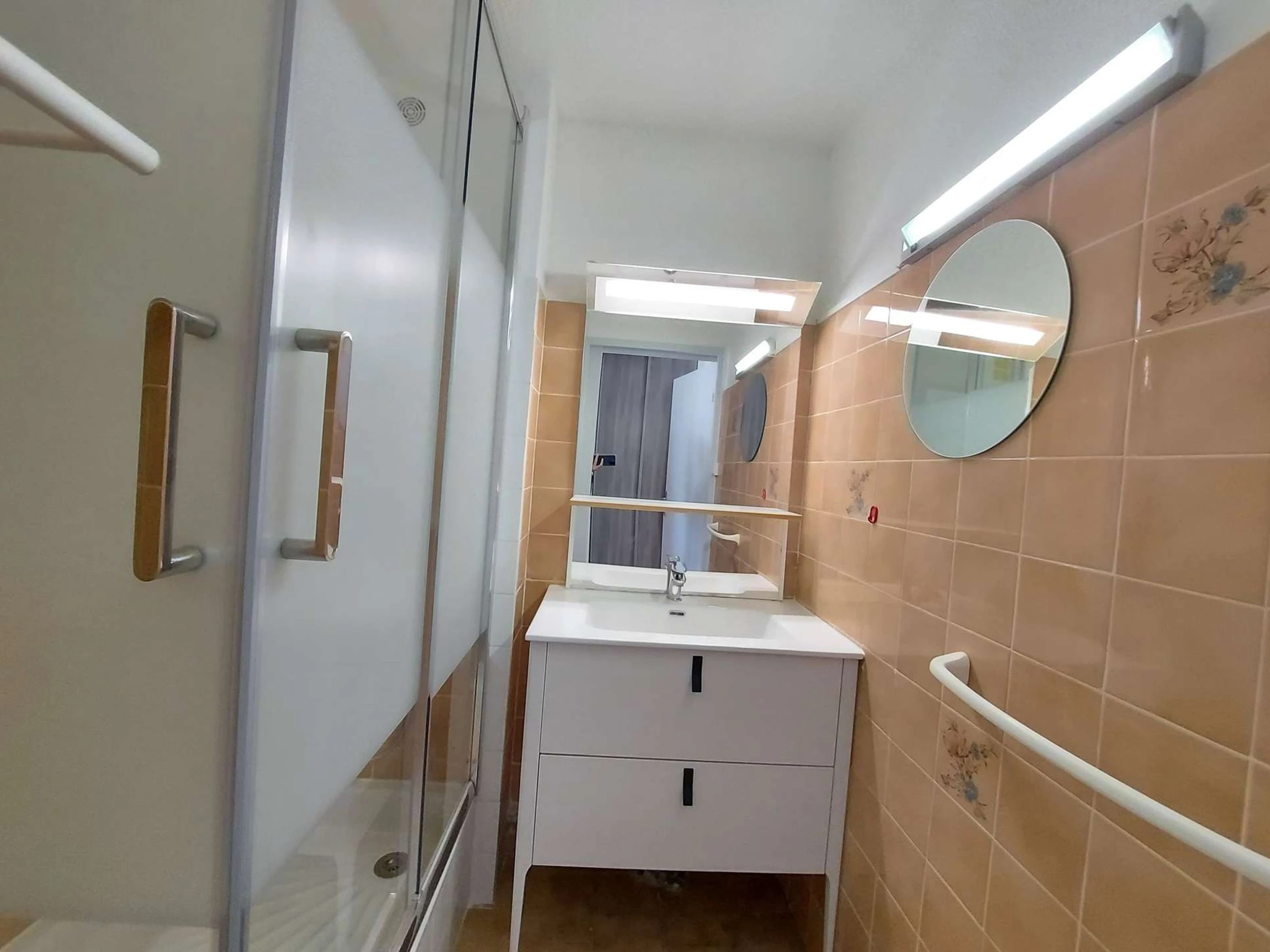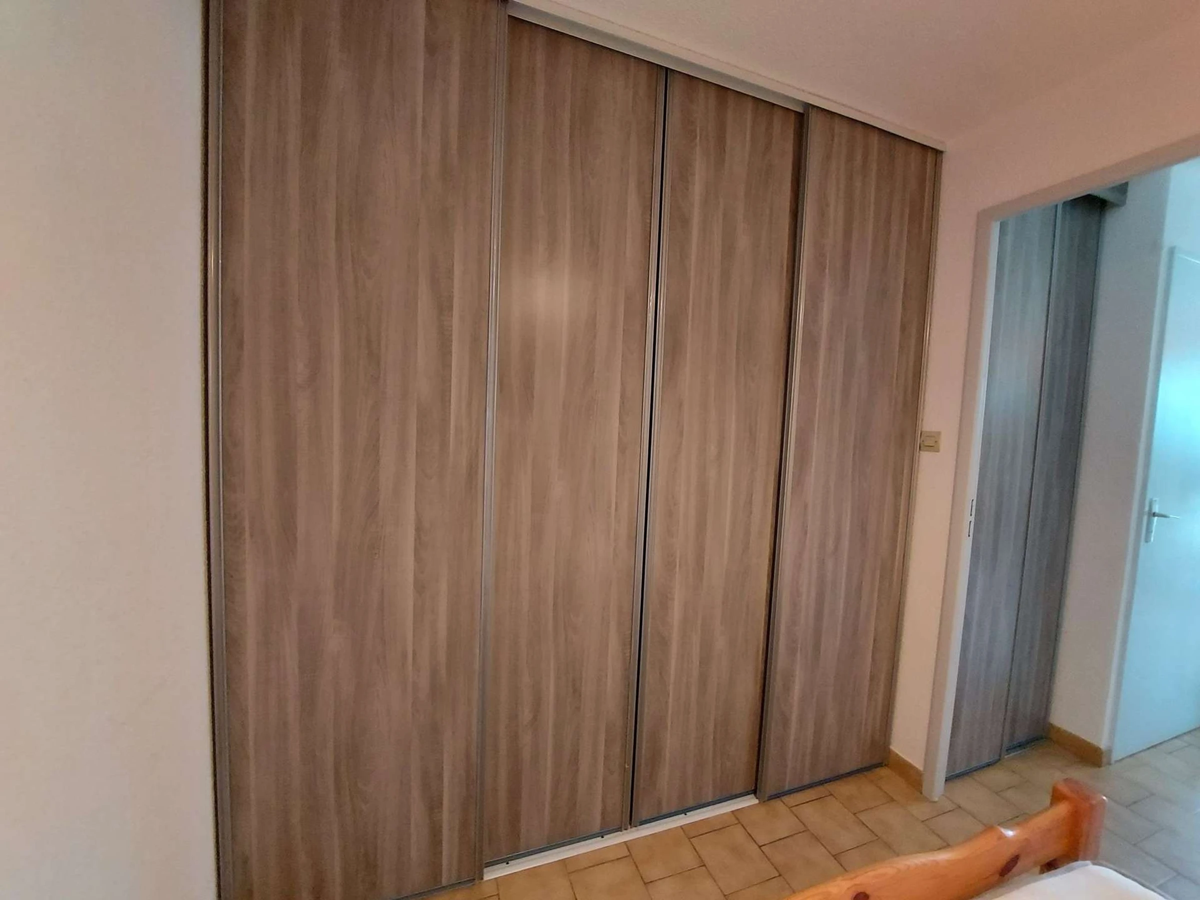 Chambre avec 1 lit 140cm et placard. Salle de d'eau avec cabine de douche et lavabo, wc séparés.