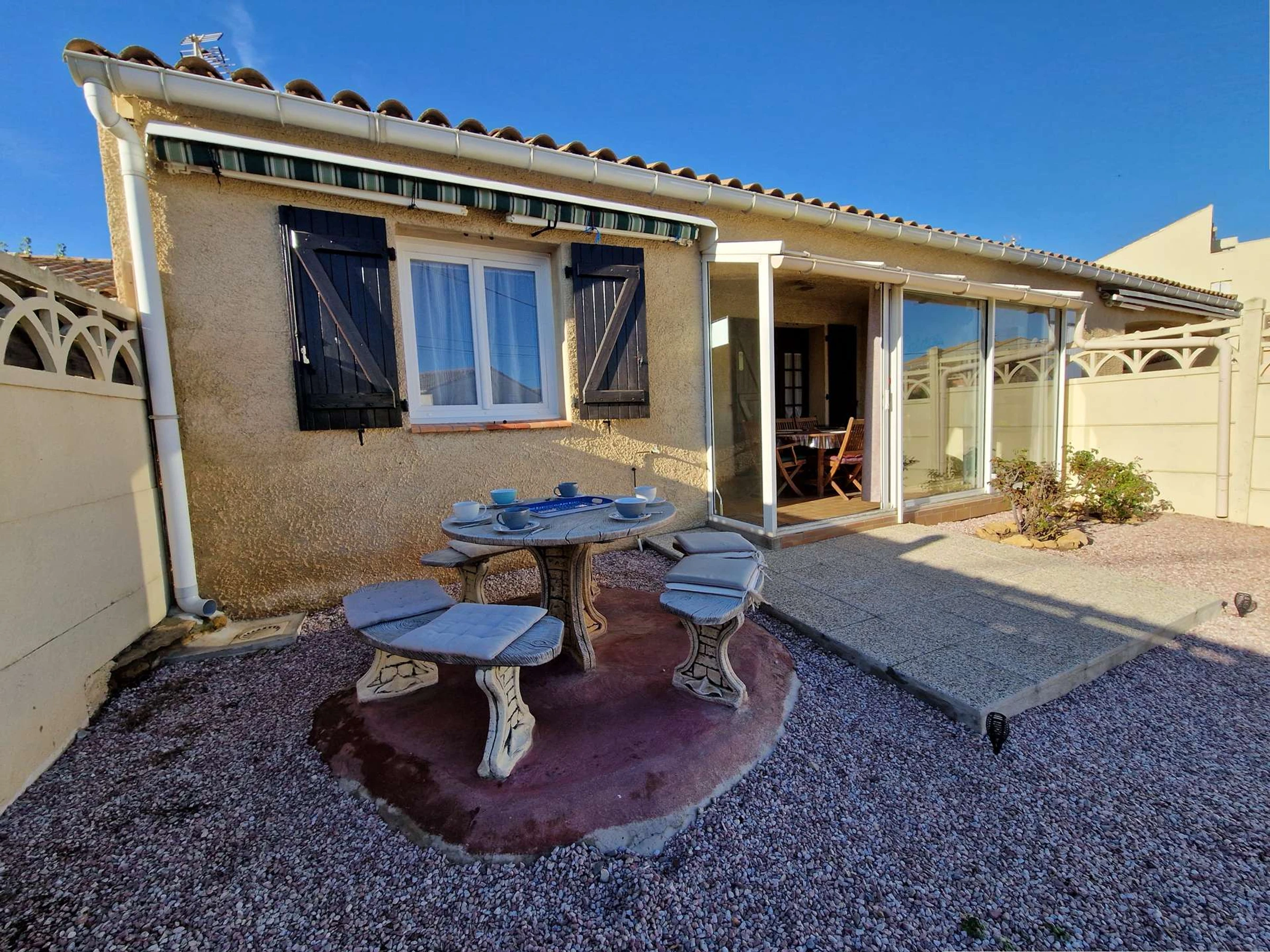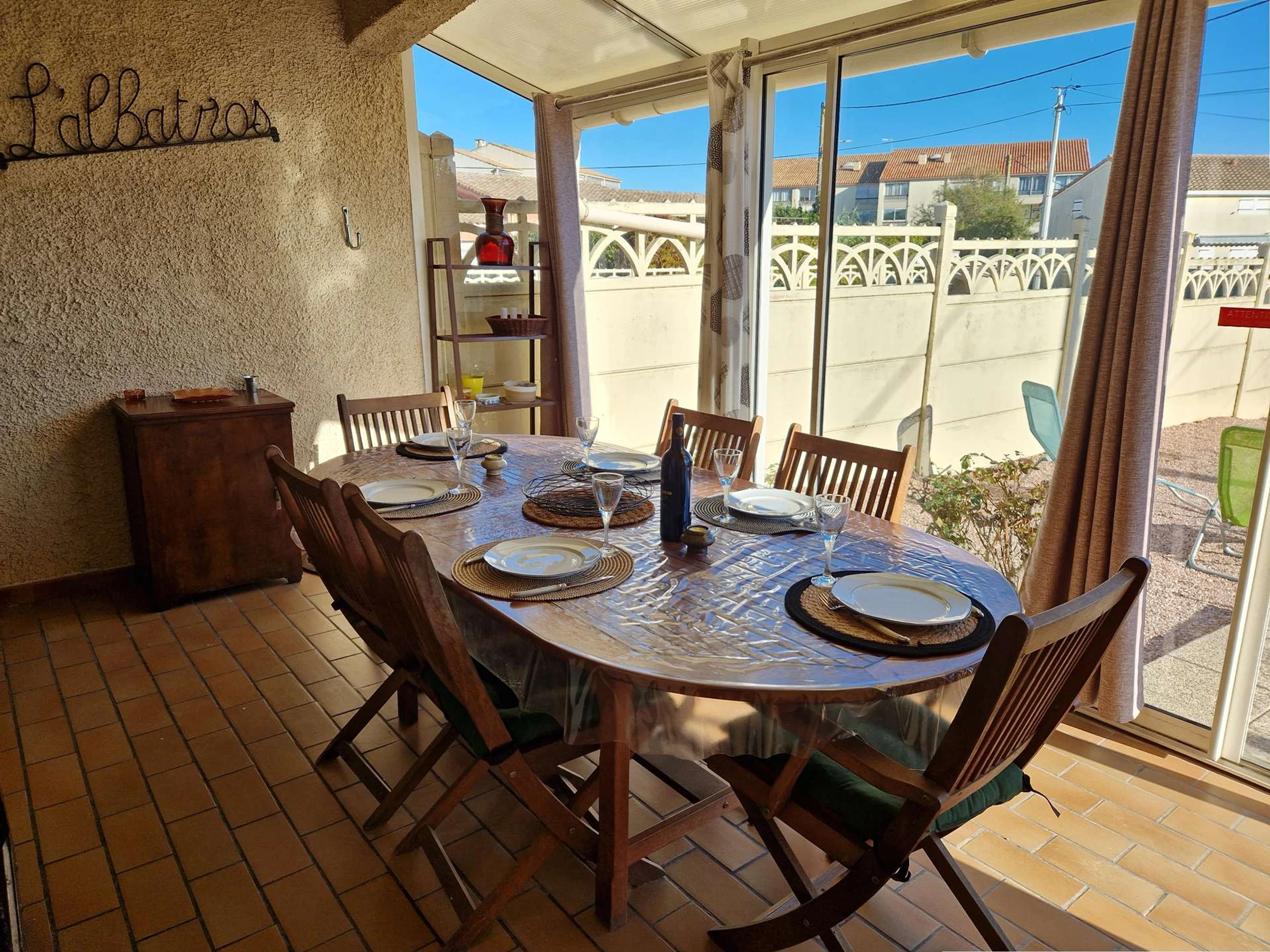 Véranda ensoleillée : espace détente avec salon de jardin pour profiter des journées ensoleillées