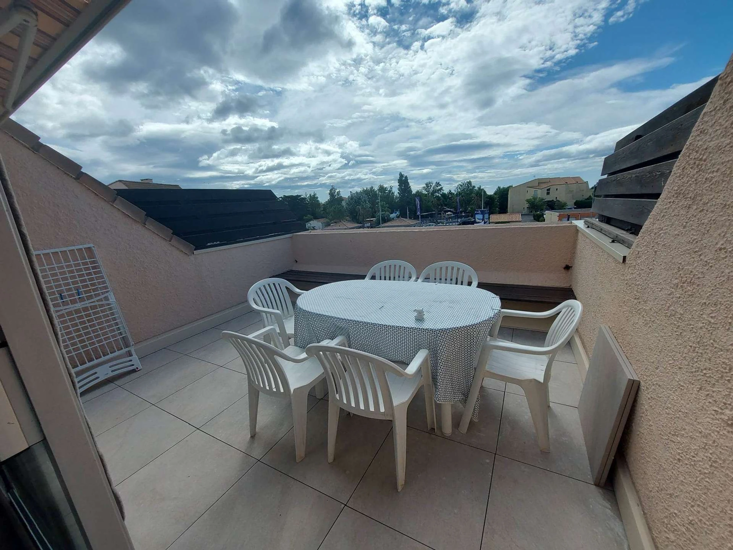 Terrasse de 12m² exposée Sud avec salon de jardin, plancha.
