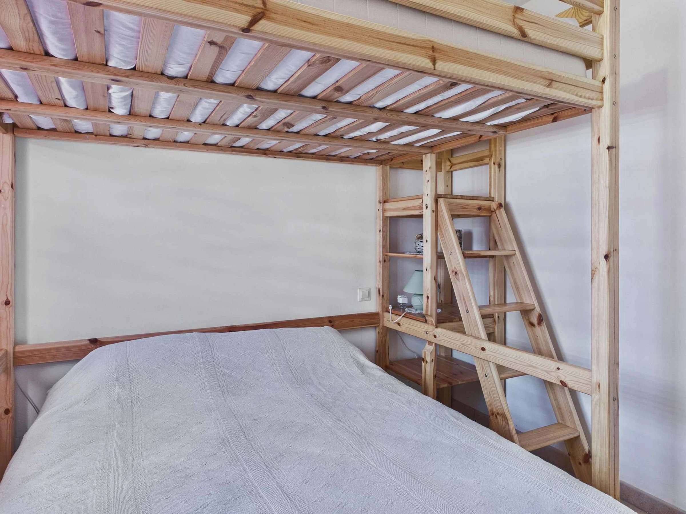 Il se compose d’une chambre avec un lit de 180 cm (séparable en deux lits de 90 cm), et d’une seconde chambre équipée d’un lit de 140 cm ainsi que d’un lit en hauteur de 140 cm.