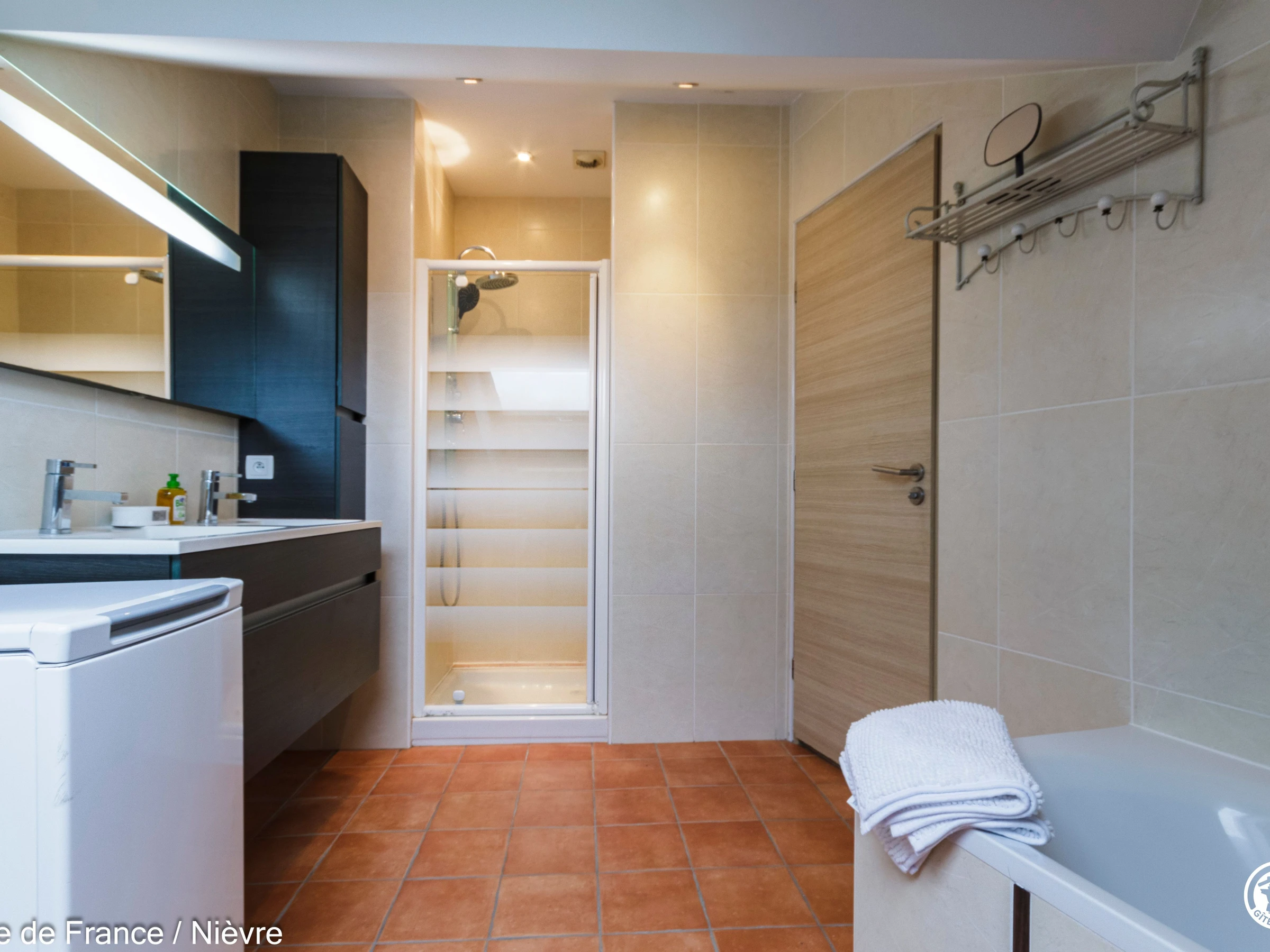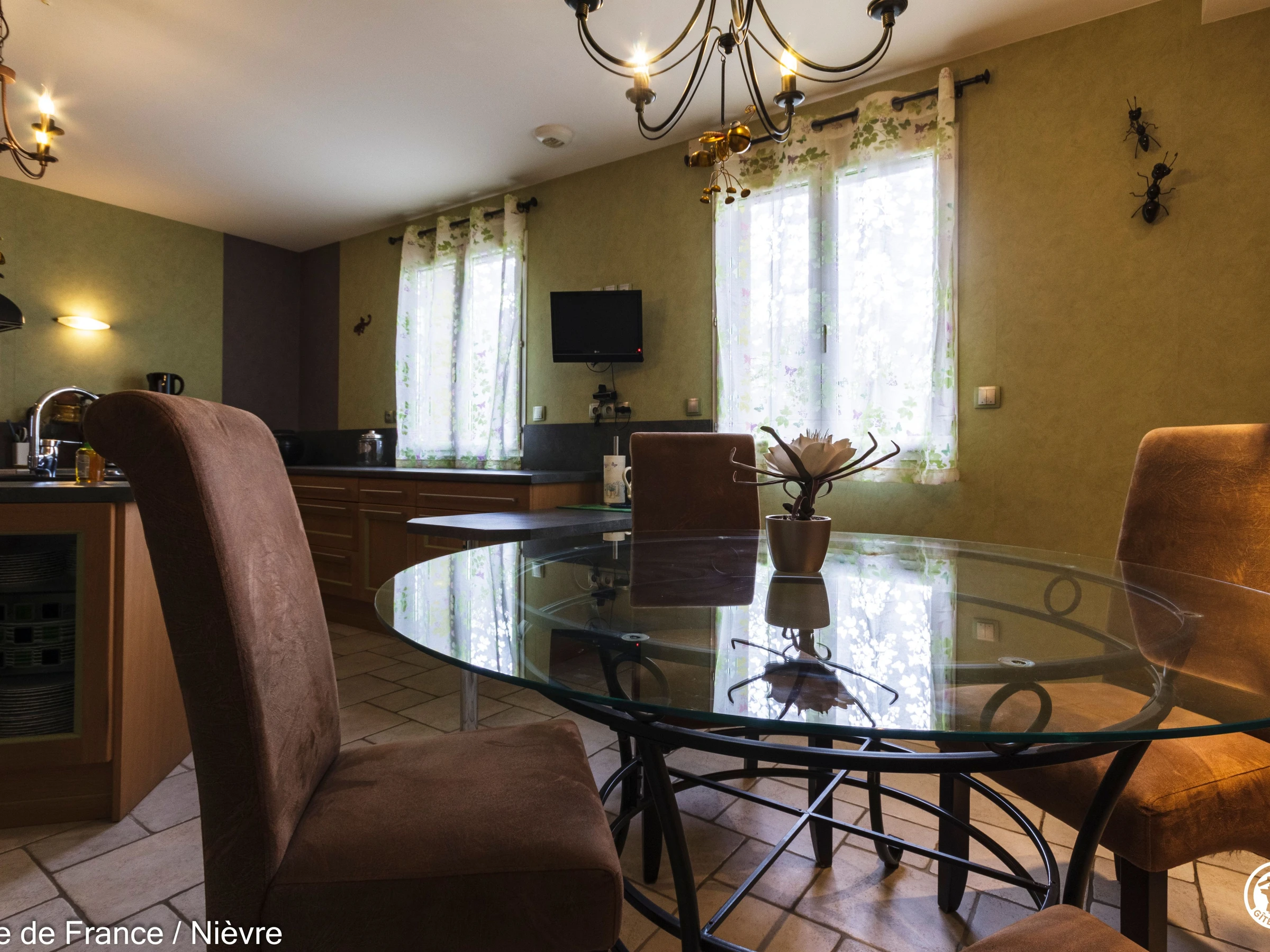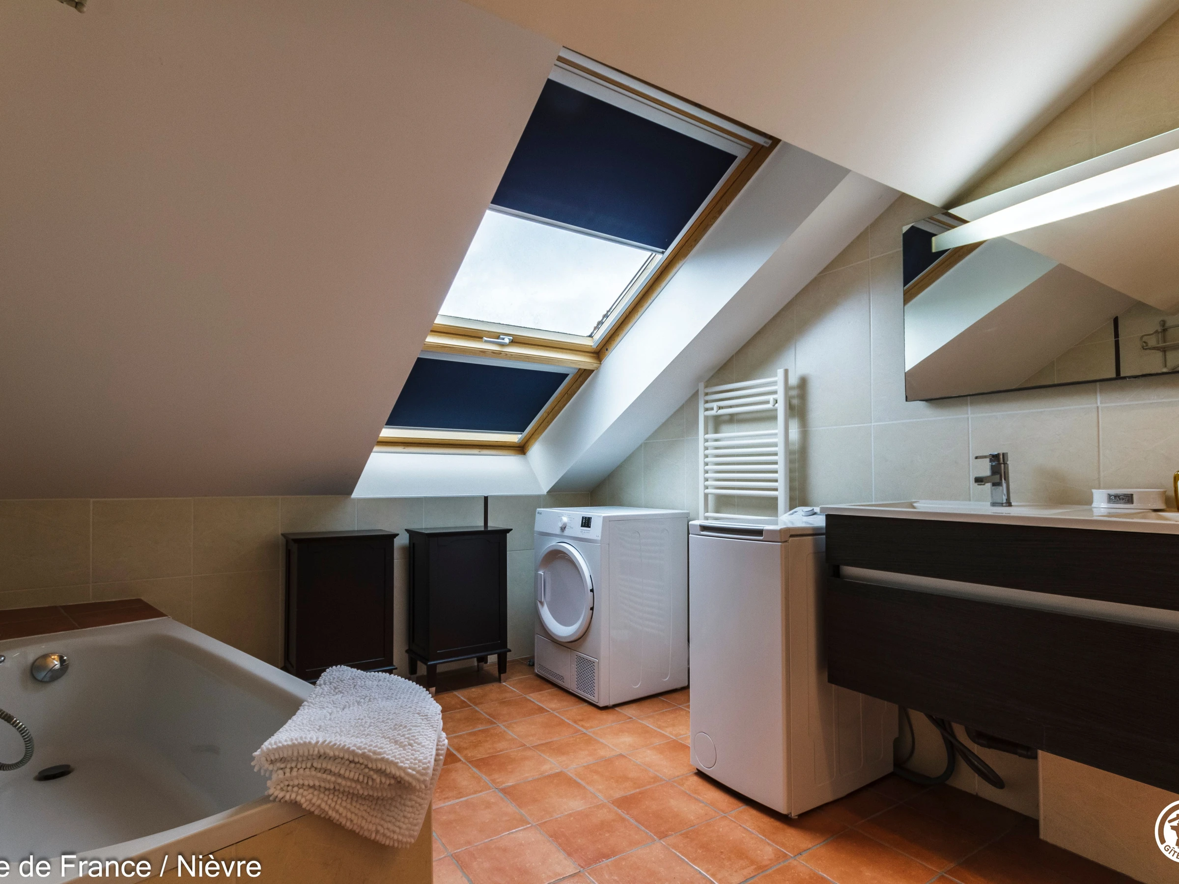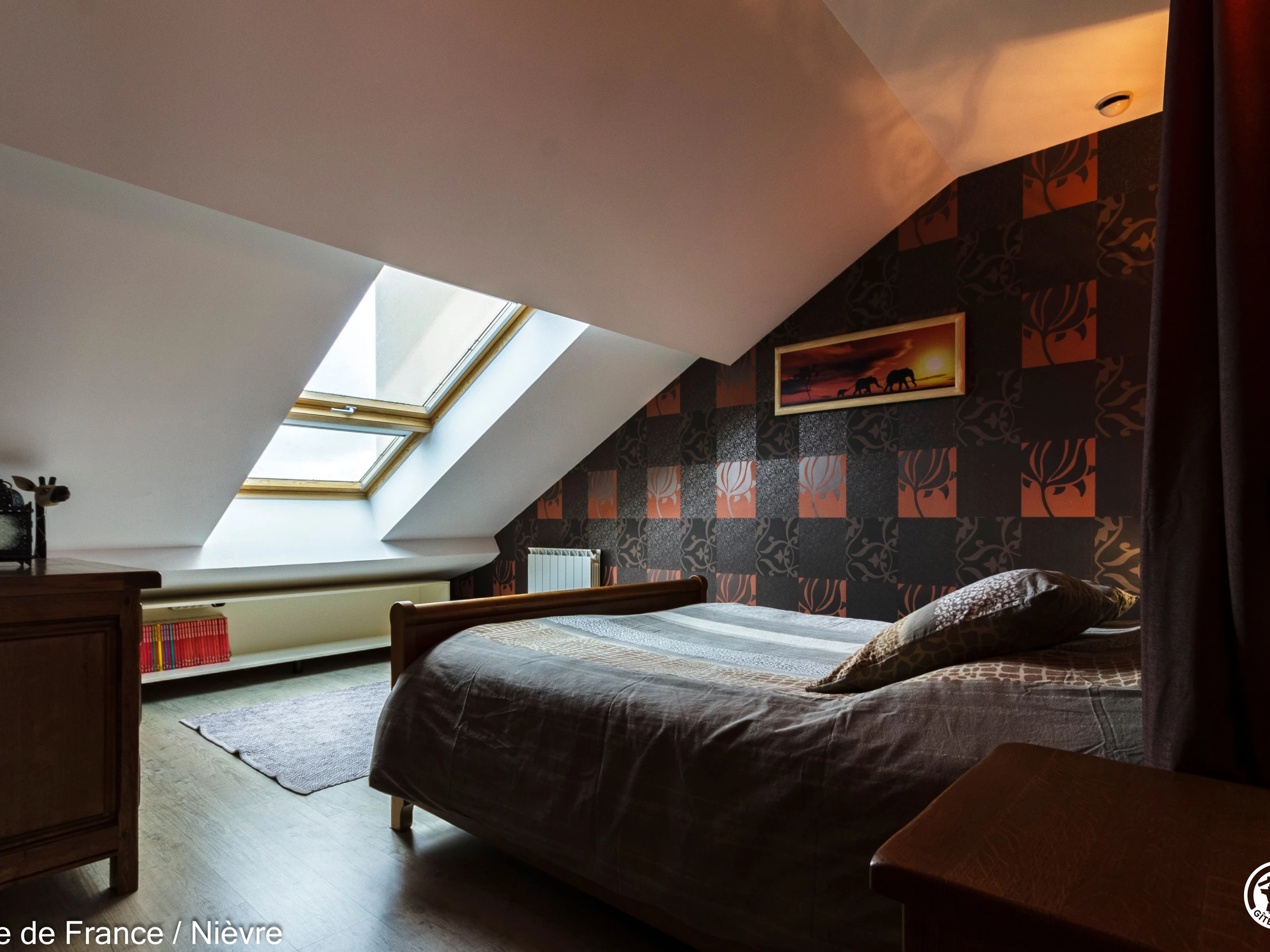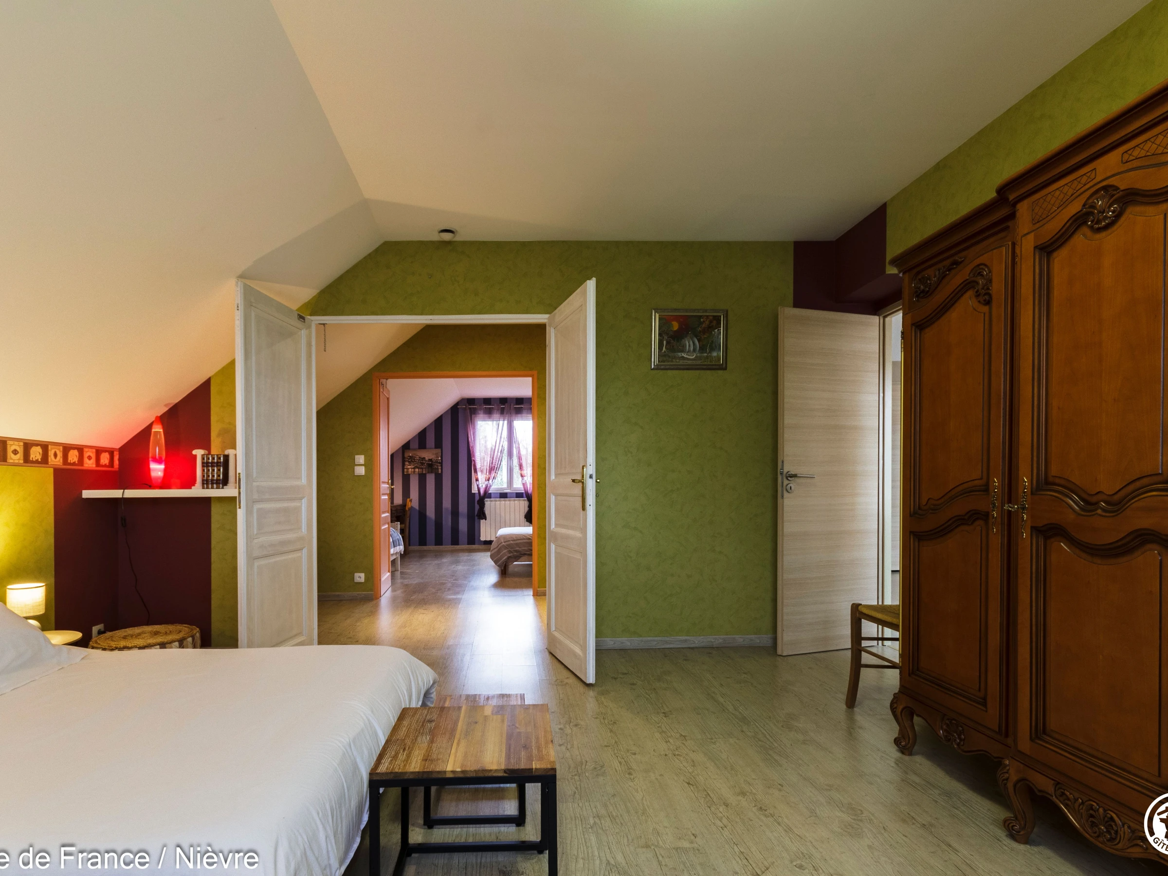 Maison d'architecte présentant de beaux volumes pour un séjour en famille ou entre amis tout confort, à moins de 10 mn de Nevers Jardin clos avec barbecue et salon de jardin, garage à disposition pour les motos. Hall d'entrée avec babyfoot, une grande pièce à vivre cathédrale avec espace salon (billard, bar, canapés, télé, wifi, chaîne hi-fi) et espace repas; une grande cuisine séparée aménagée et équipée. Une chambre en rez-de-chaussée avec 1 lit 160x200, télé, accès direct au jardin et dressing; 1 wc séparé, 1 salle d'eau avec douche de grande dimension. A l'étage une grande mezzanine; une chambre avec un lit 160x200; une salle de bain comprenant une baignoire et une douche, lave-linge et sèche-linge; un wc séparé; une chambre avec 1 lit 140x190 + 1 lit 90x190 et une chambre avec 1 lit 140x190 + 1 lit 90x190 (2 chambres sont climatisées à l'étage). Espace salle de jeux entre les 2 chambres.