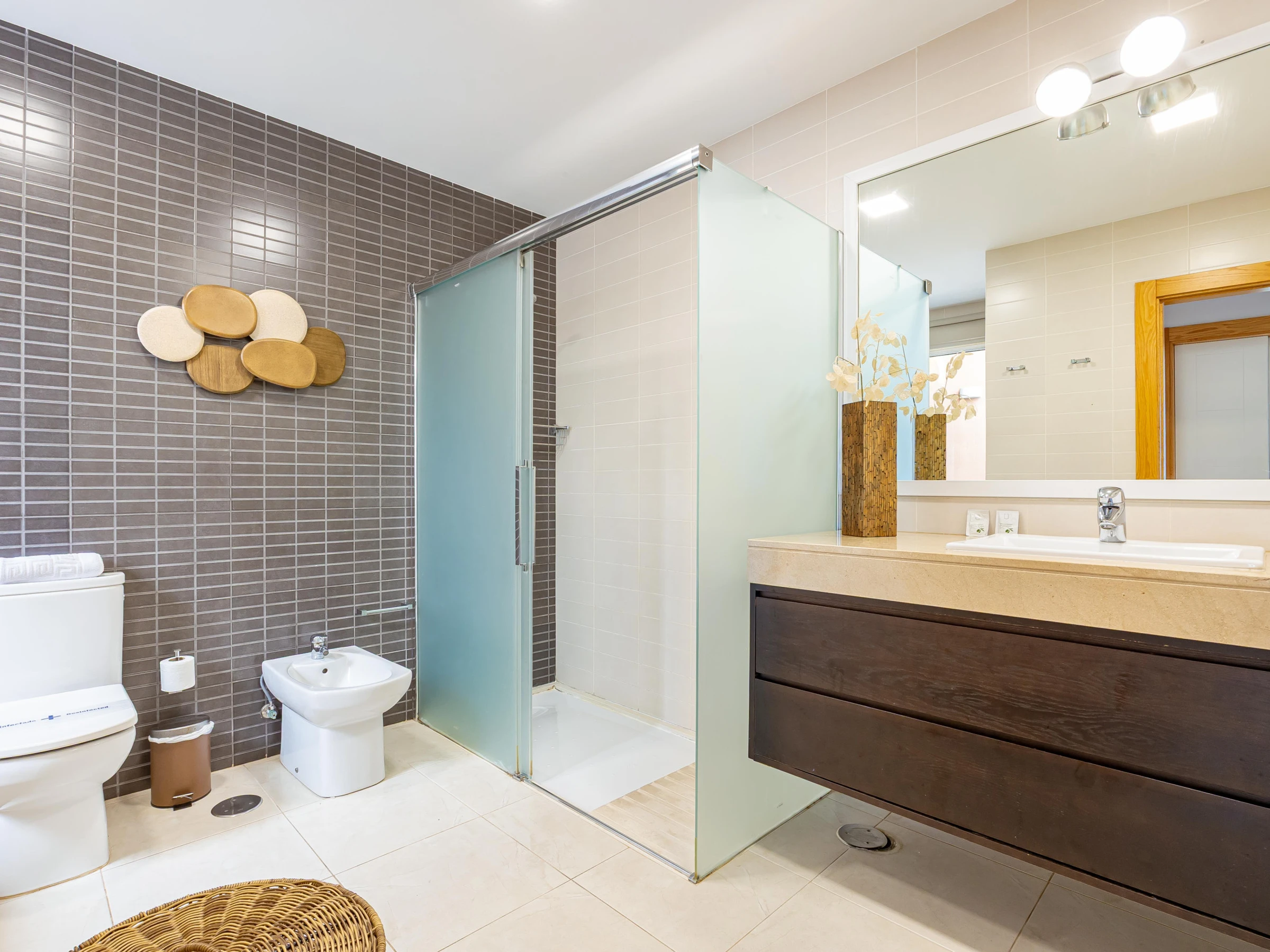 Les deux chambres disposent de lits confortables, un lit double et deux lits simples. Les deux salles de bains, l'une avec douche et l'autre avec douche et baignoire, garantissent le confort des invités.