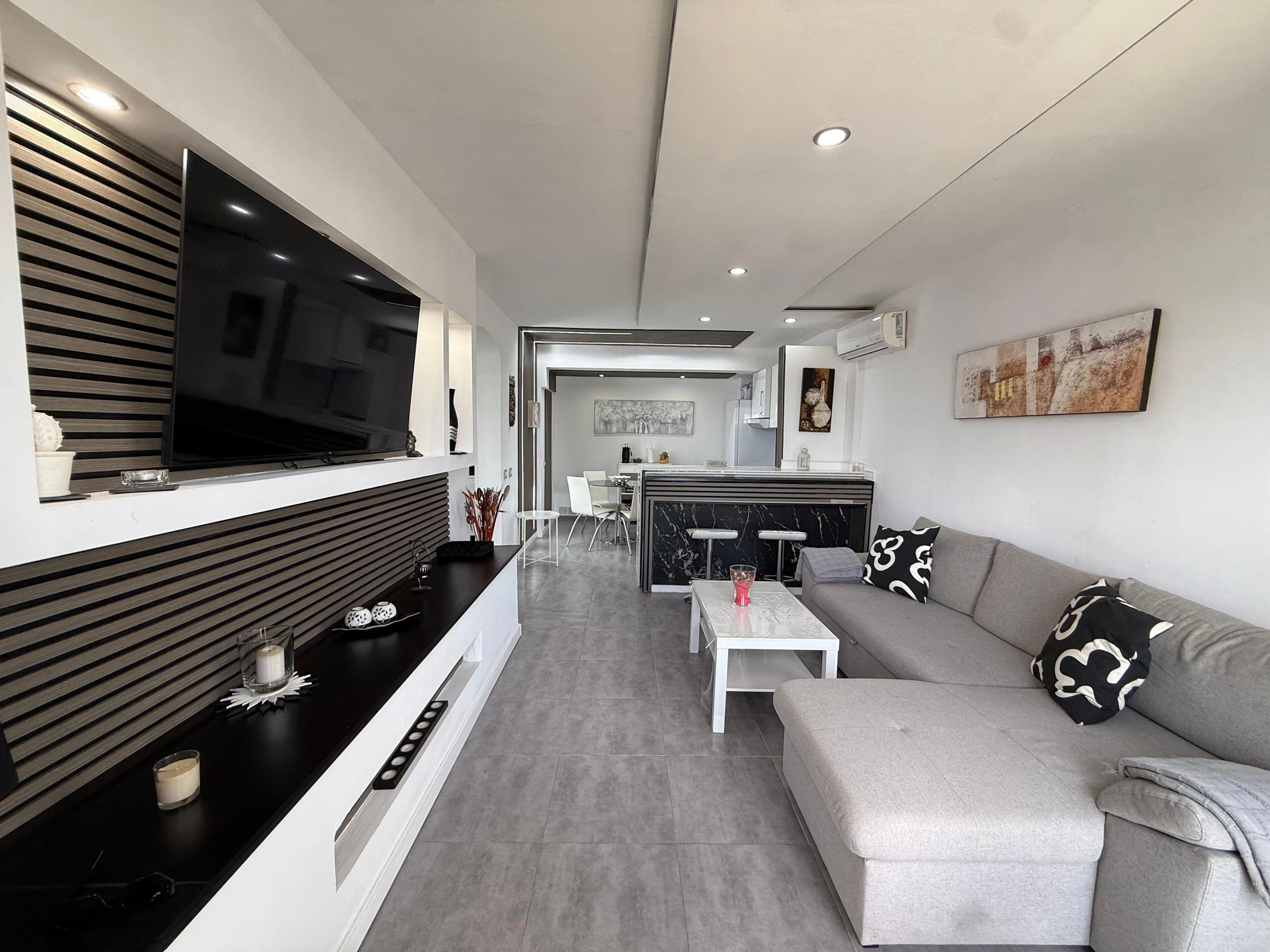 L'appartement dispose de la climatisation pour garantir le confort maximal tout au long de l'année. Il possède une terrasse privée qui permet de profiter de vues impressionnantes sur la mer et les Dunes de Maspalomas, un espace parfait pour prendre un café le matin ou profiter d'un verre au coucher du soleil.