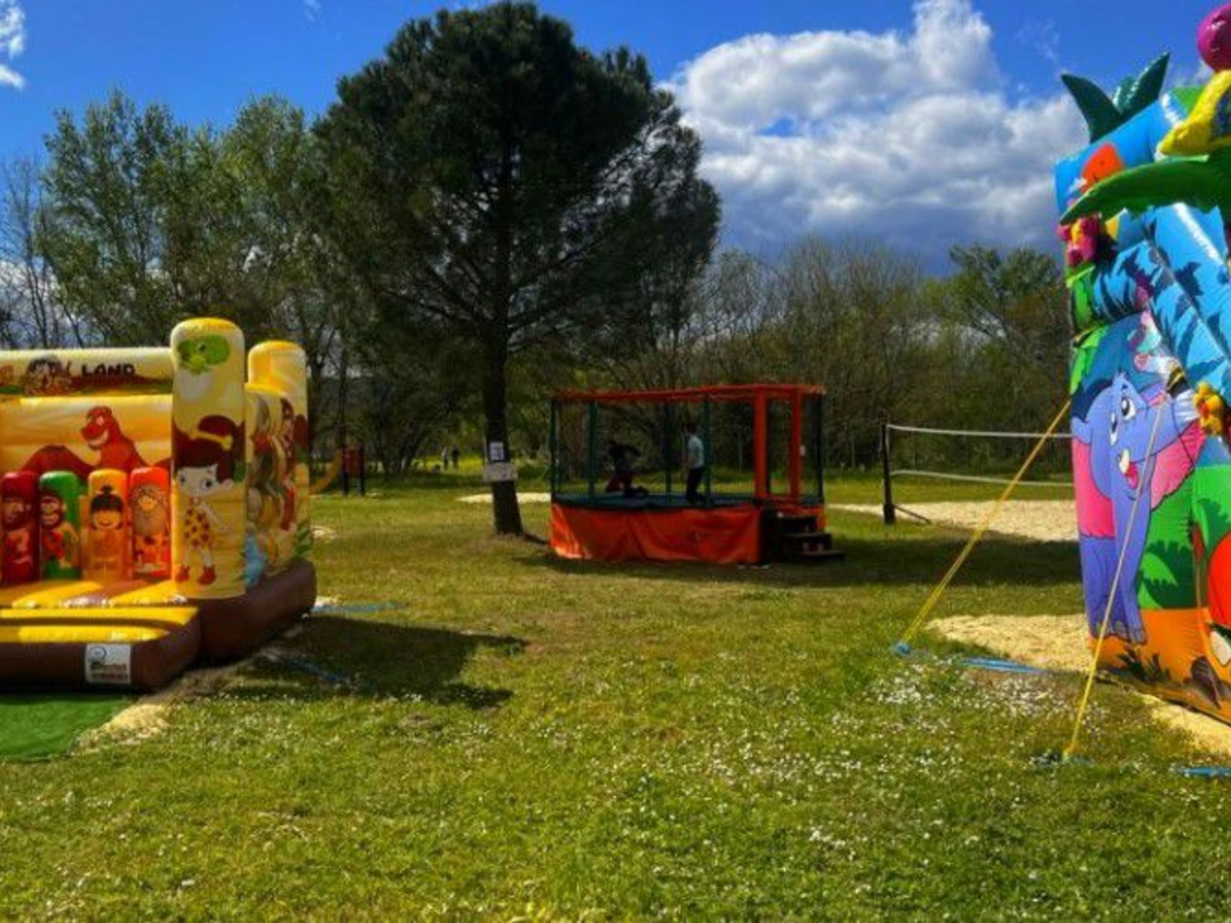 - 2 Chu00e2teaux gonflables, un trampoline, des balanu00e7oires,