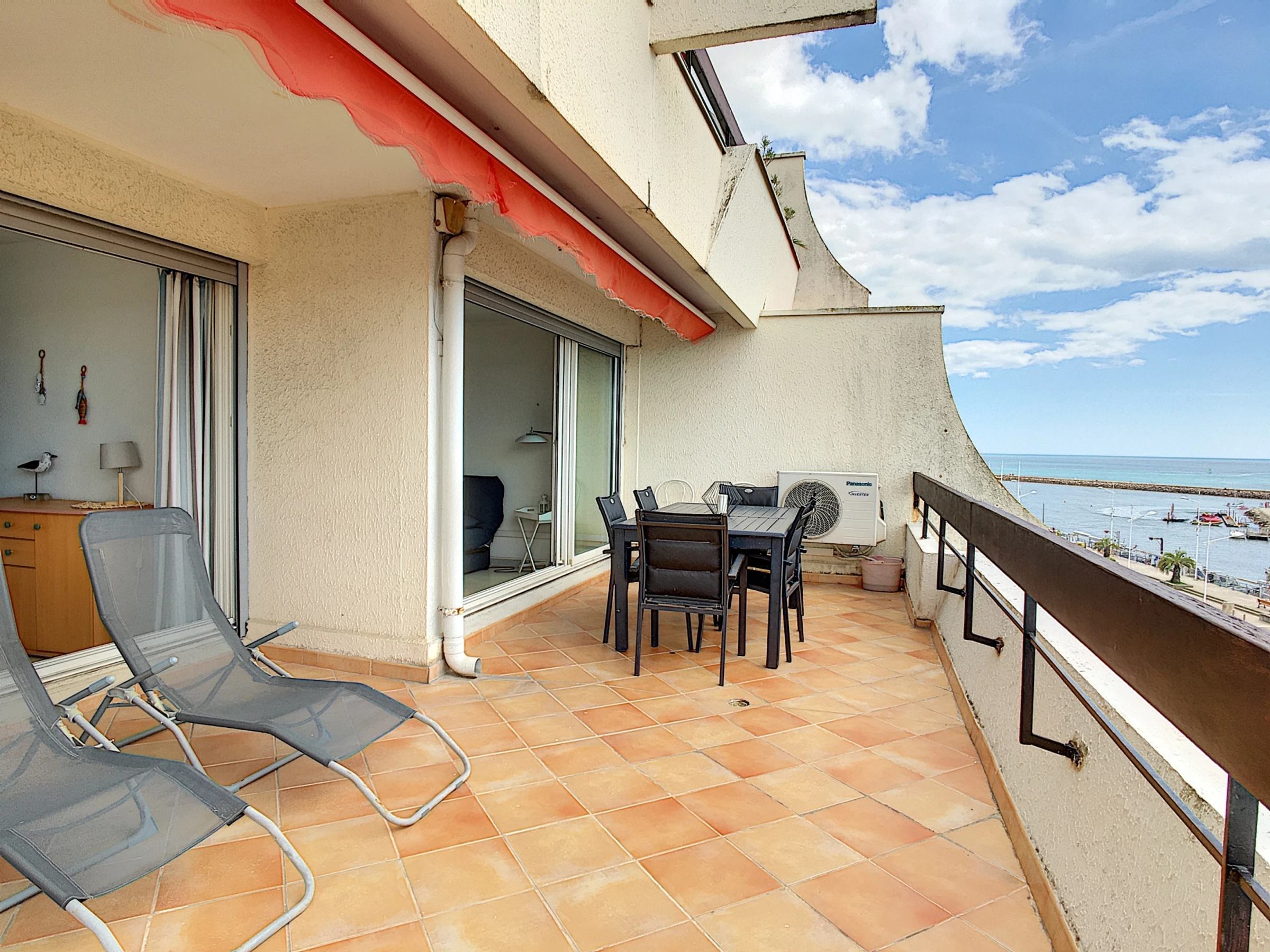 Appartement spacieux exposé sud est avec vue panoramique des étangs, du port et de la mer, il se situe au 4éme étage d'une résidence avec ascenseur proche du centre entre mer et port. Équipé pour 4 personnes, il comprend un séjour avec canapé convertible en 140, une cuisine américaine, une chambre avec un lit en 160, une salle d'eau avec WC, un deuxième WC séparé, une grande terrasse plein ciel, un parking privé à l'arrière de la résidence sans emplacement nominatif.