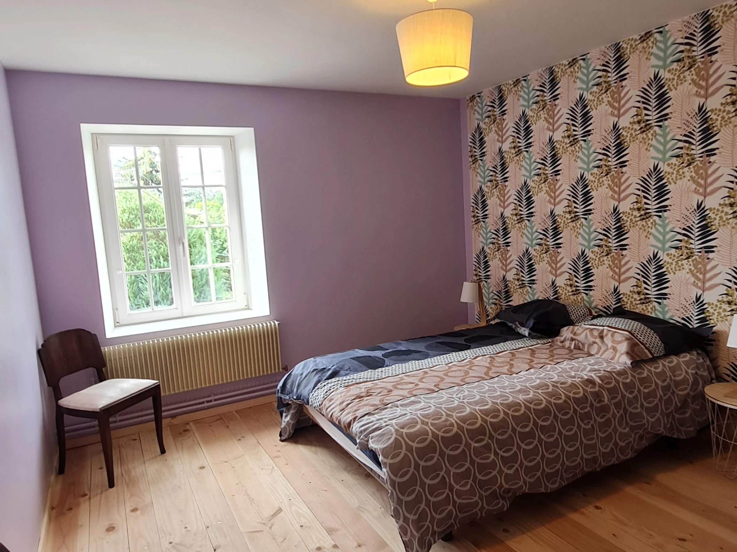 Une belle chambre avec un lit de 140x190 cm, une salle d'eau, un wc indépendant et une buanderie.