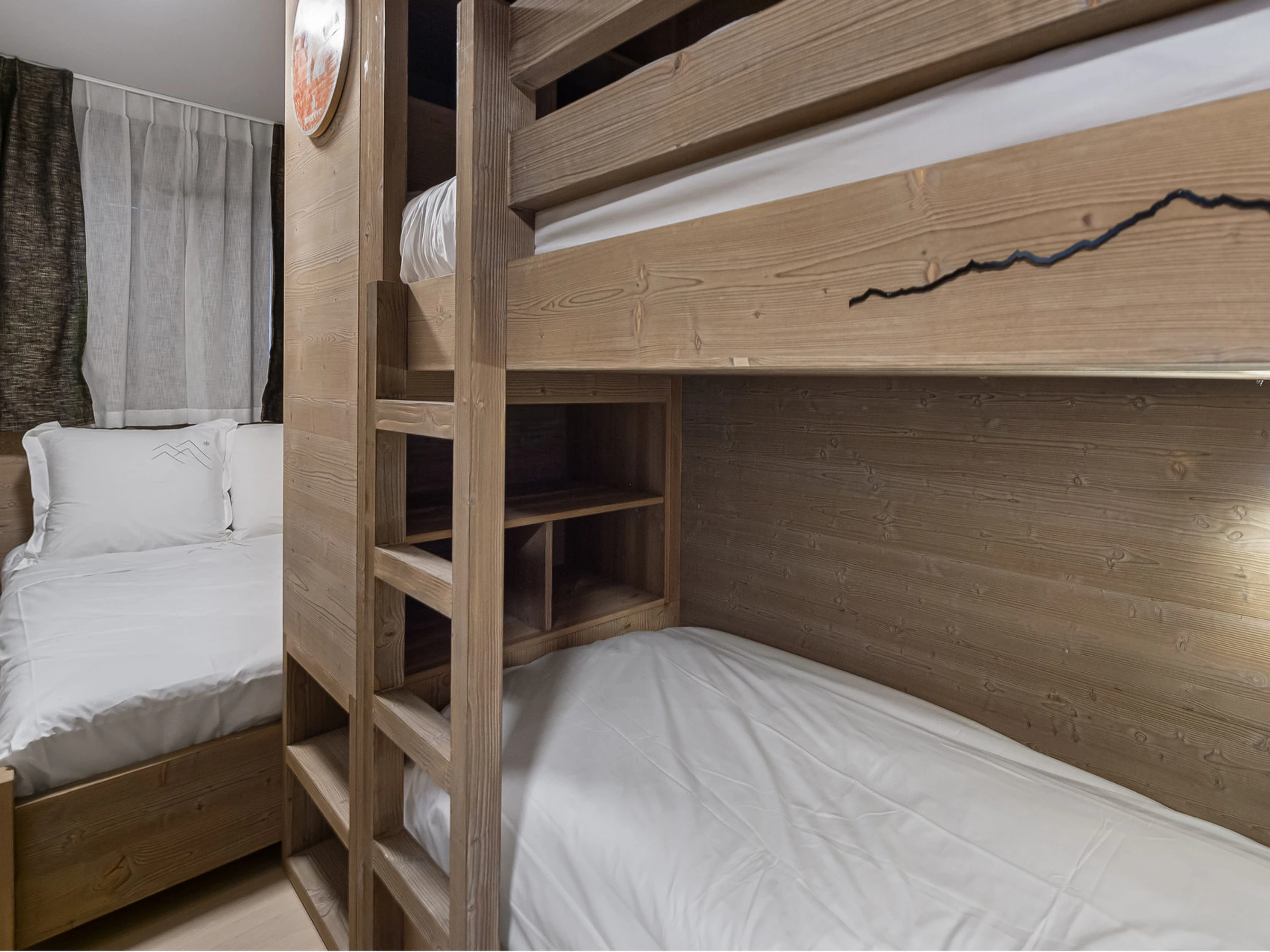 - Chambre avec lit double (120x190) et un lit superposés (2 couchages 90x190)