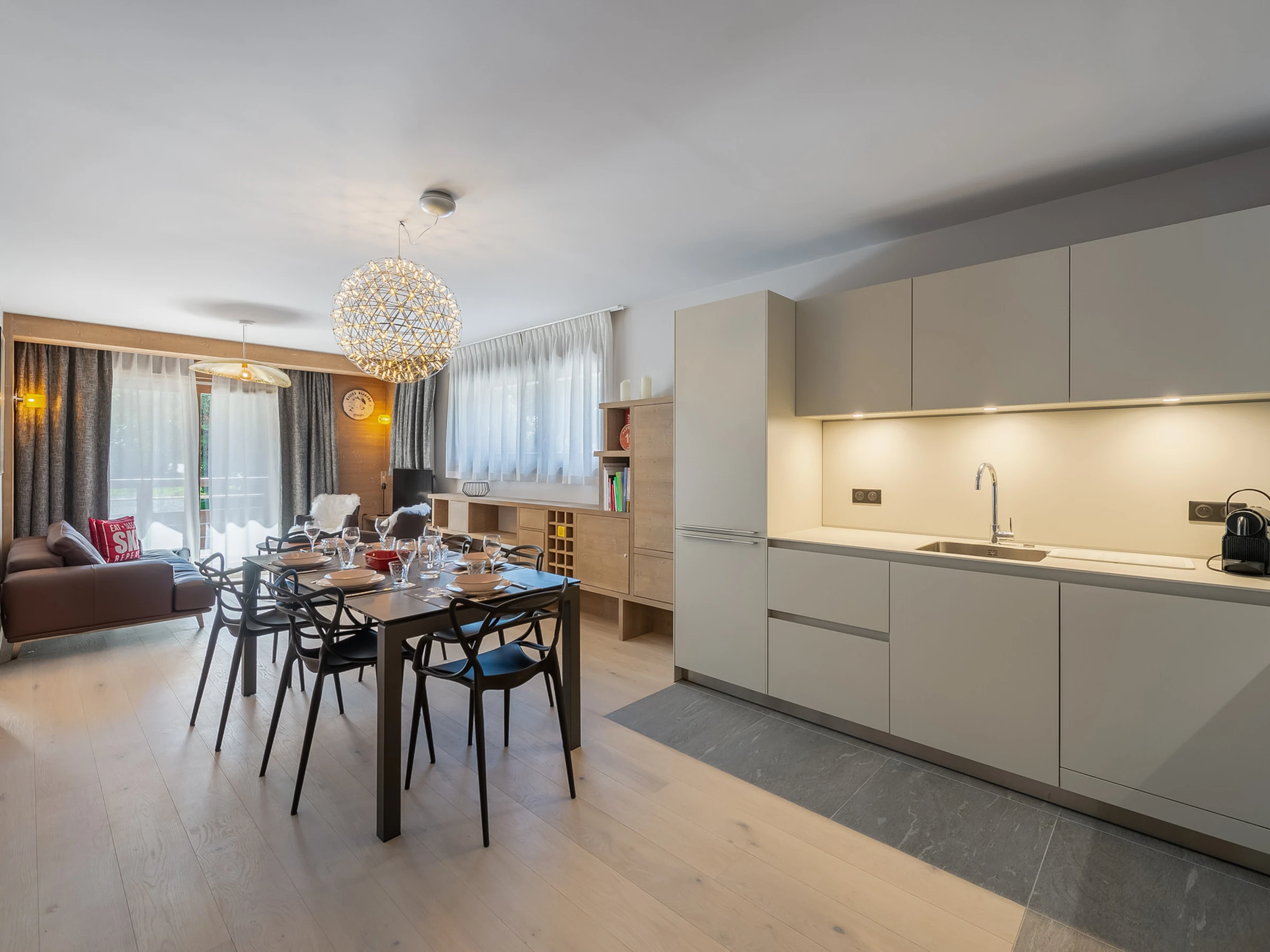 - Pièce de vie avec cuisine ouverte et espace repas