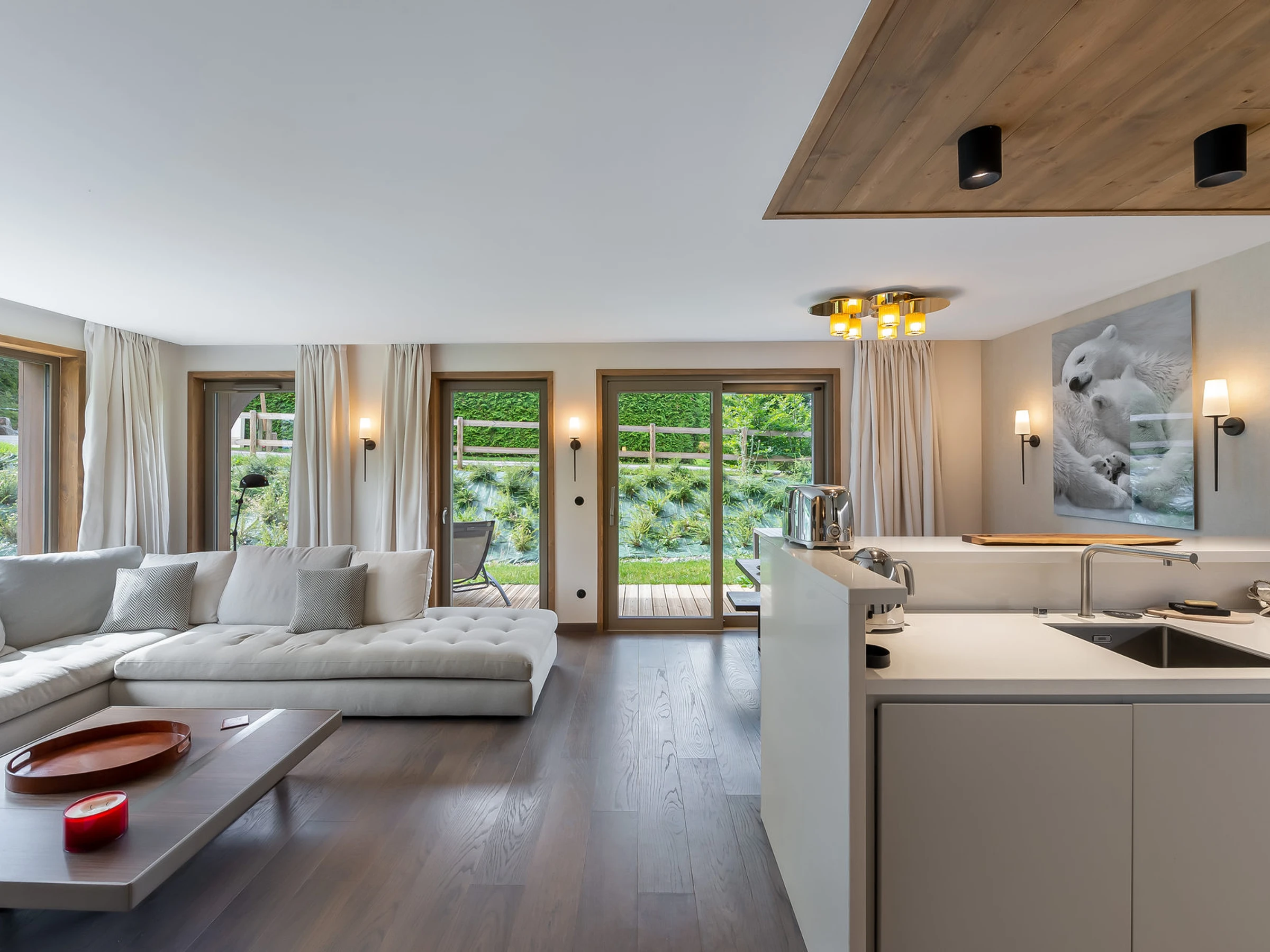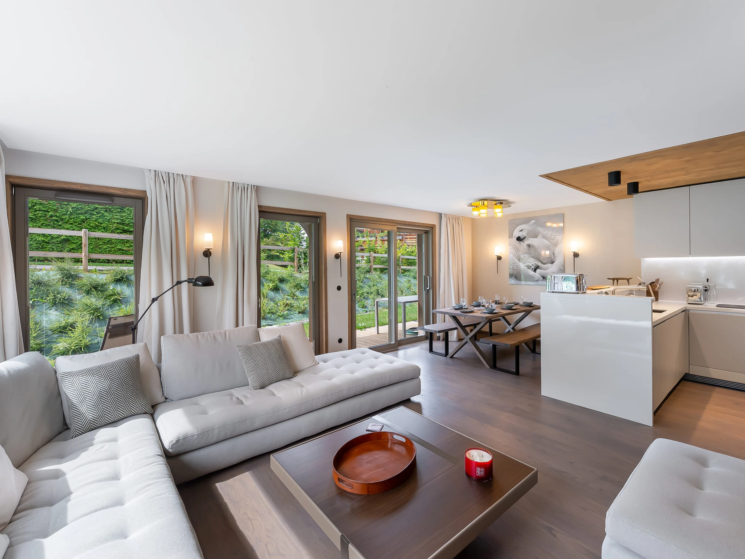 Magnifique appartement en rez de jardin situé dans le quartier du Tour à Megève. Bénéficiant d’une belle surface de 83m², cet appartement peut accueillir jusqu’à 6 personnes. Il est composé d’une vaste pièce de vie dans un style épuré et contemporain, d’une cuisine équipée ouverte sur l’espace repas, ainsi qu’une agréable terrasse.