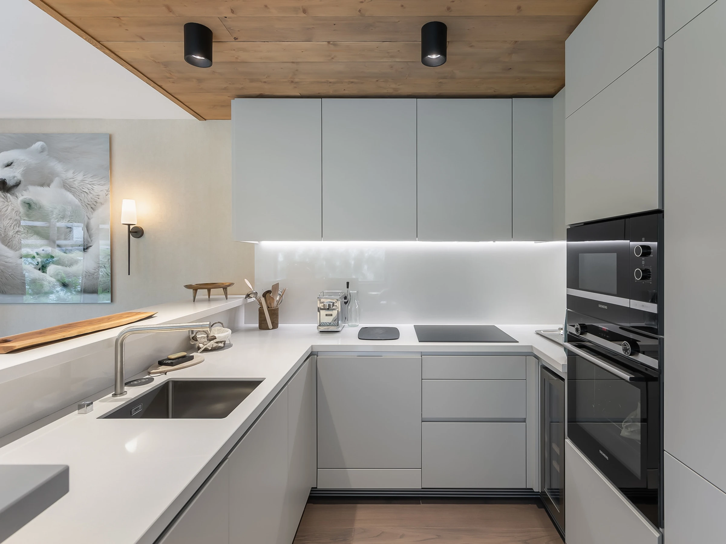 Ce bien entièrement neuf aux décorations tendances et élégantes est idéal pour les familles, il dégage une atmosphère cosy grâce à la prépondérance de bois de haute qualité, qui se marie parfaitement avec les tissus de couleur claire présents dans le mobilier.