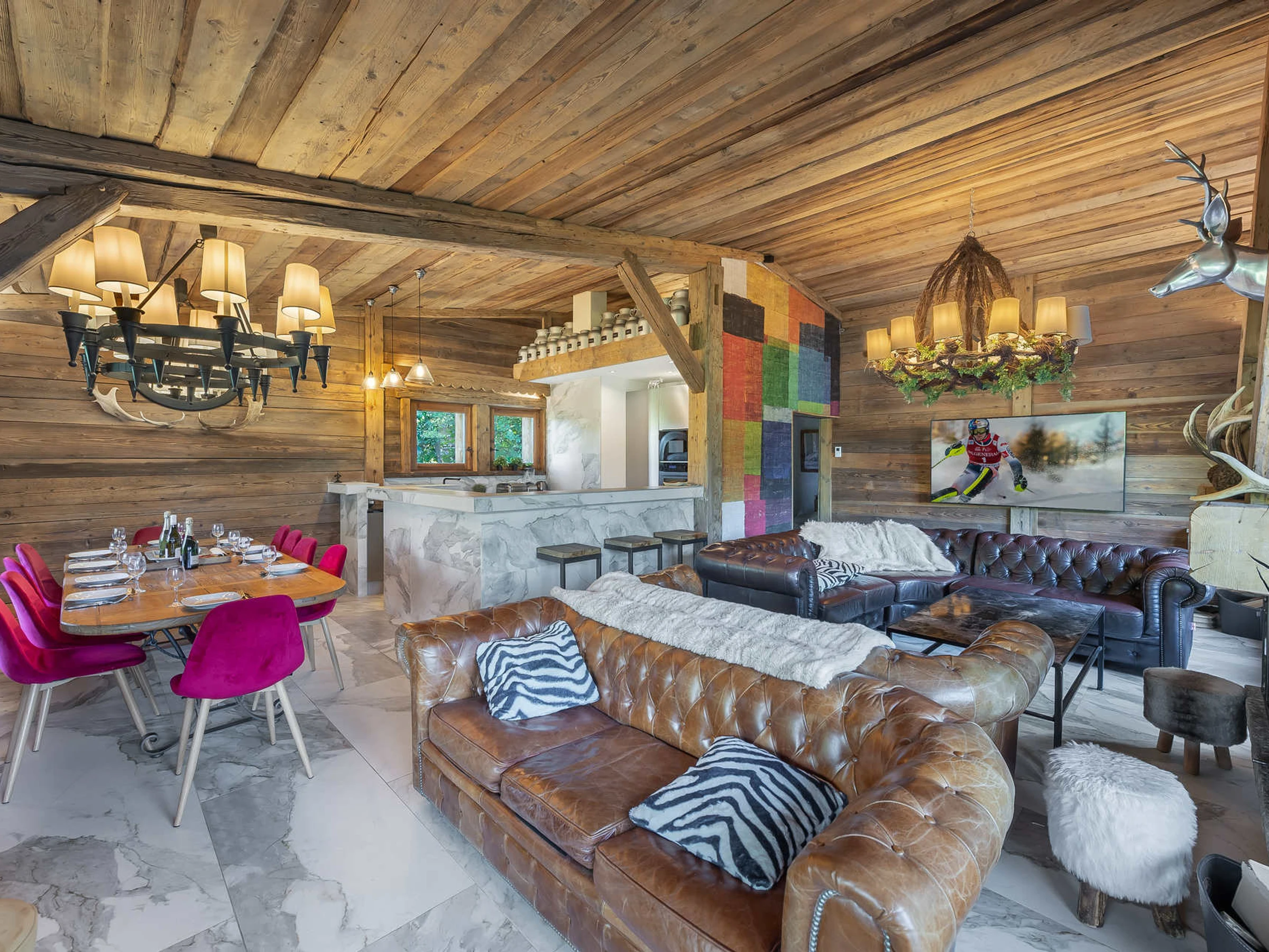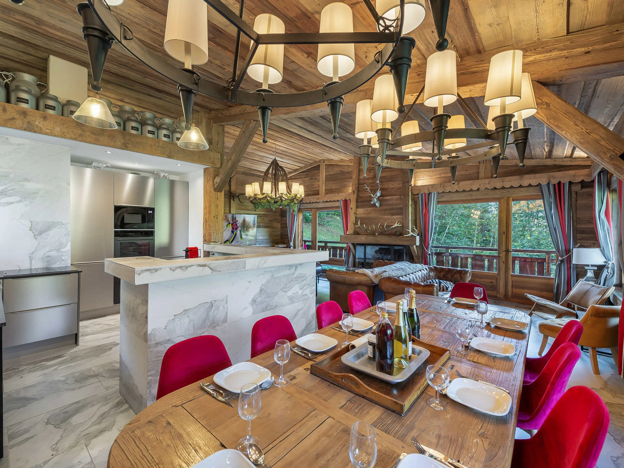 Profitant d’un parfait emplacement, ce chalet atypique, situé dans un secteur calme et privilégié. Vous passerez de superbes vacances d’hiver dans ce chalet Haut-Savoyard pouvant accueillir aisément 10 personnes. Profitez d’une pièce de vie spacieuse, englobant salon et salle à manger, où le bois y est proéminant comme le veut l’architecture des chalets traditionnels. Un chalet avec une décoration marquée. Correctement exposé, il est lumineux et chaleureux. Habillé de bois, vous serez conquis par le charme unique de ce chalet, bénéficiant d’une situation idéale à Megève.