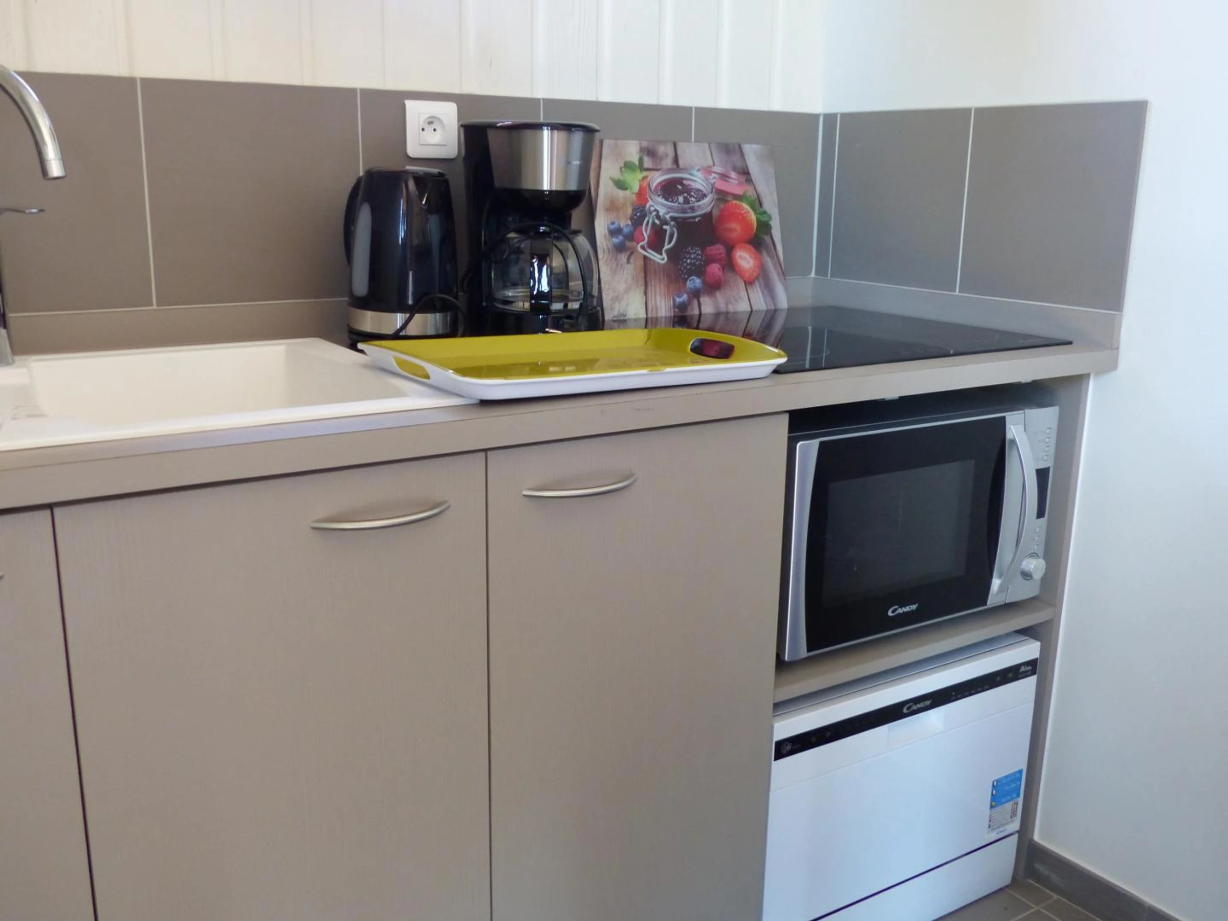 Les torchons et produits d'usage ( café, sucre, produits ménagers, gel douche ....)