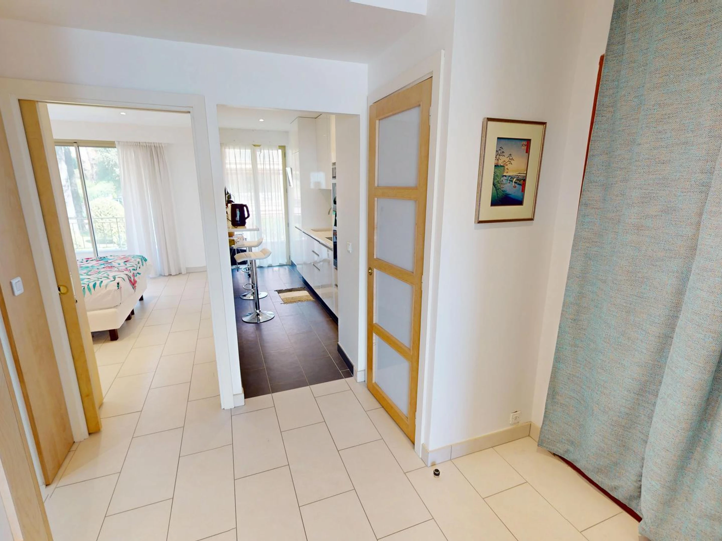 Cuisine séparée équipée de four traditionnel, microonde, plaque induction, réfrigérateur/congélateur, lave-vaisselle, cafetière type Nespresso, grille-pain et bouilloire.