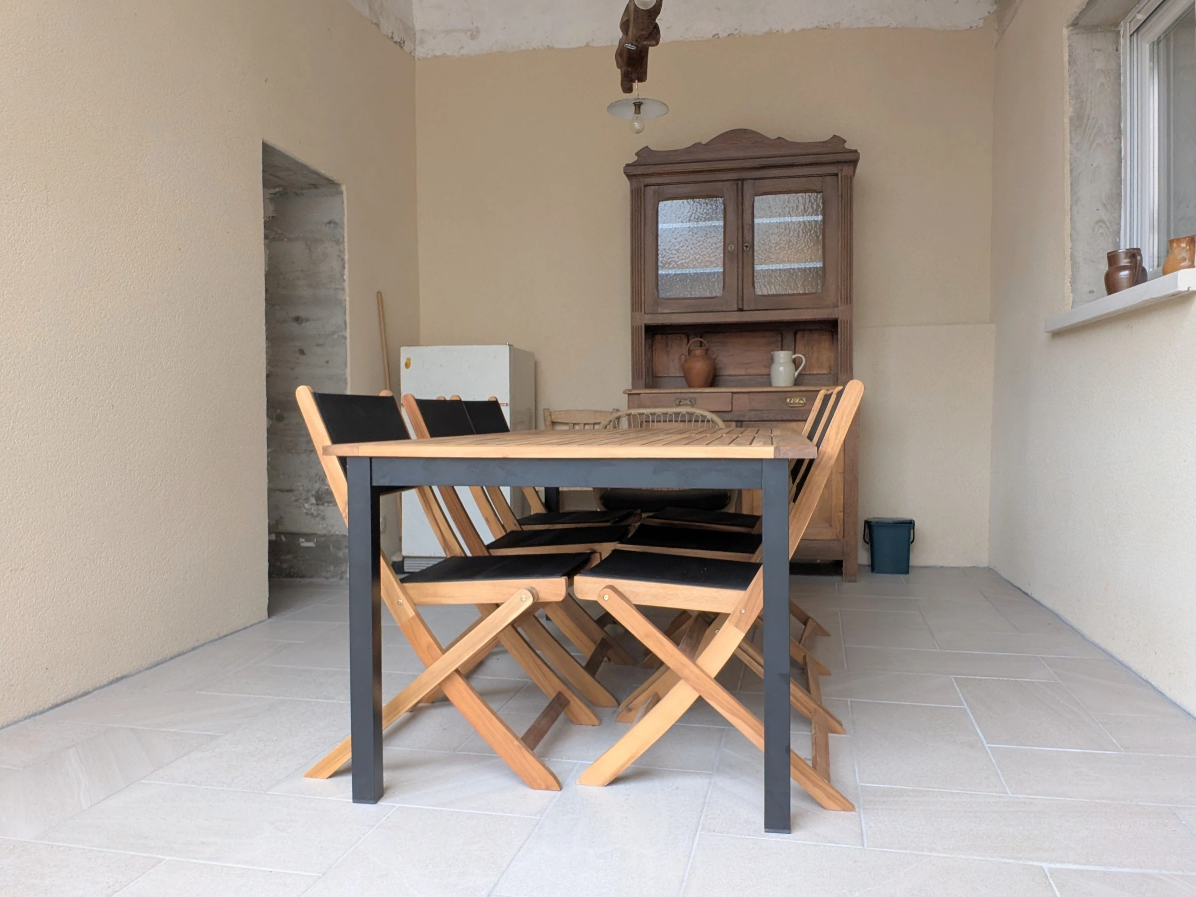 A l'extérieur une cour privative et close ou peuvent se stationner 2 véhicules, une terrasse couverte pour profiter de l'extérieur par tout les temps, un barbecue à gaz. Extérieurs en cours d'aménagement