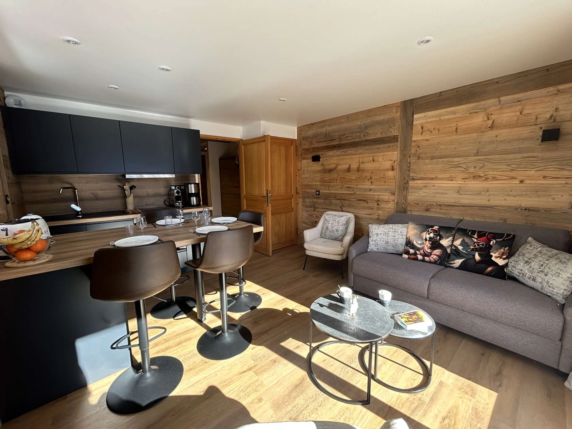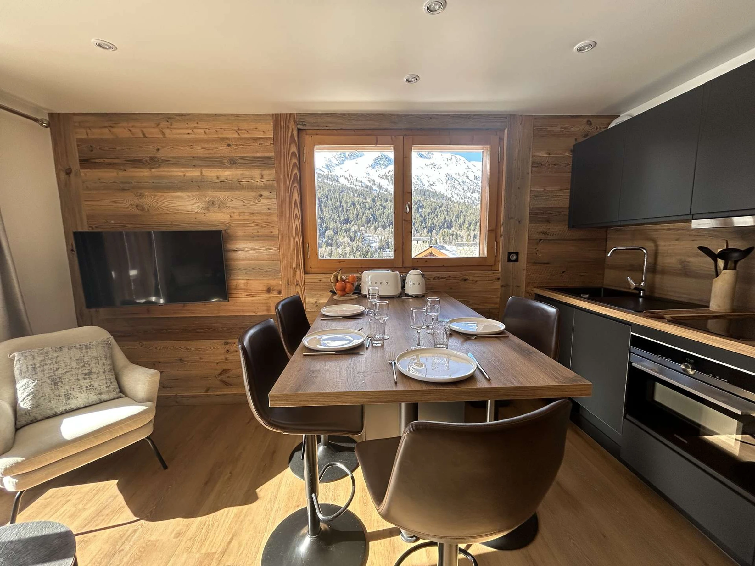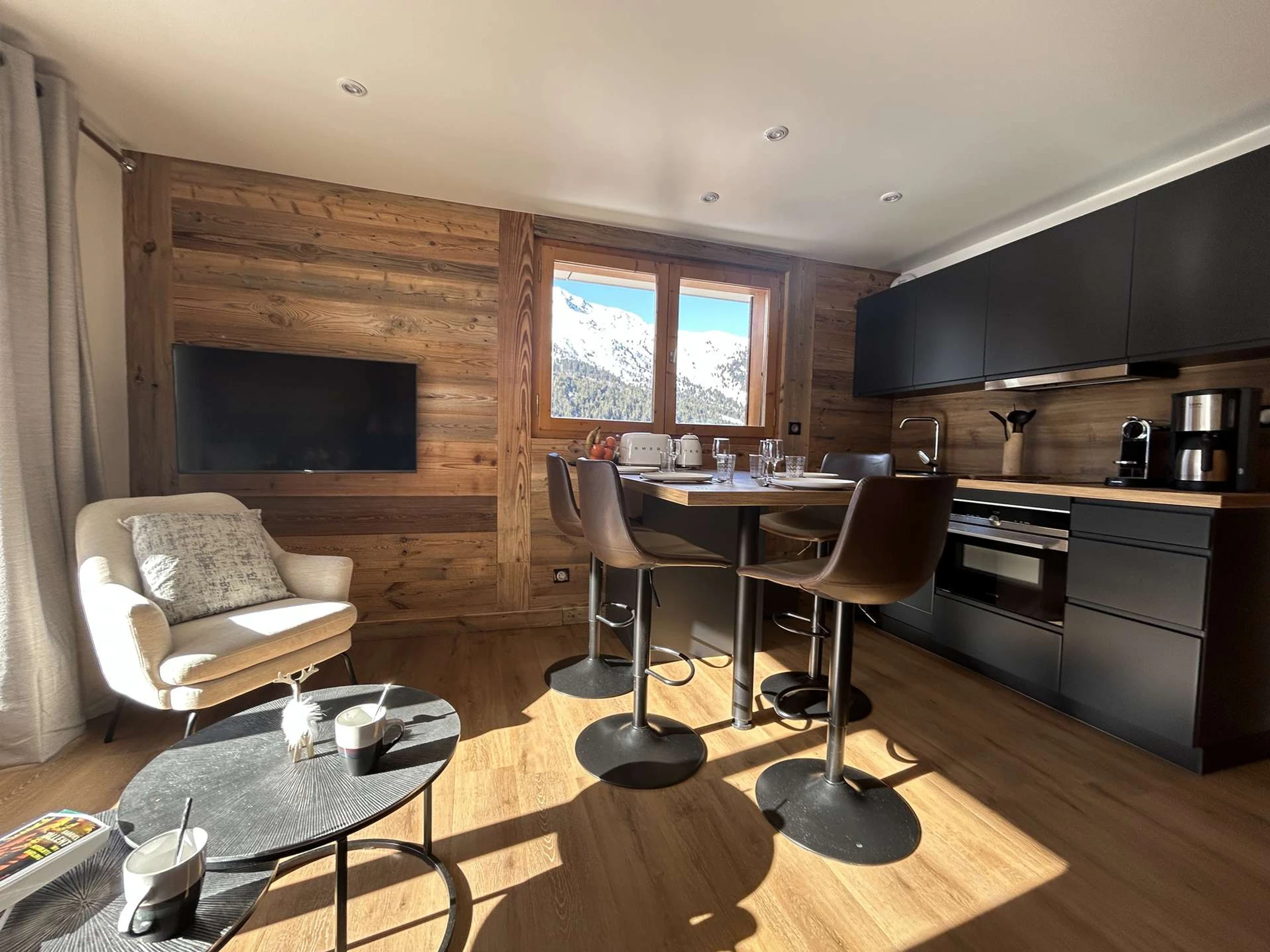 Ce bel appartement au style contemporain est situé au 2ème étage, avec ascenseur. Vous découvrirez une agréable pièce à vivre avec un balcon Sud, un salon avec un canapé et un espace repas très convivial disposant de la télévision. La cuisine au design moderne est très bien équipée et ouverte sur le séjour. Au niveau de l'entrée, vous disposerez d'une chambre avec 1 lit 140x190, une salle d'eau et des toilettes indépendantes. Dans l'entrée 1 ensemble de lits abattants simples en 80x190 très confortables. "Le couchage en hauteur est interdit aux enfants de moins de 6 ans". Un casier à skis n°4 au niveau de l'entrée.