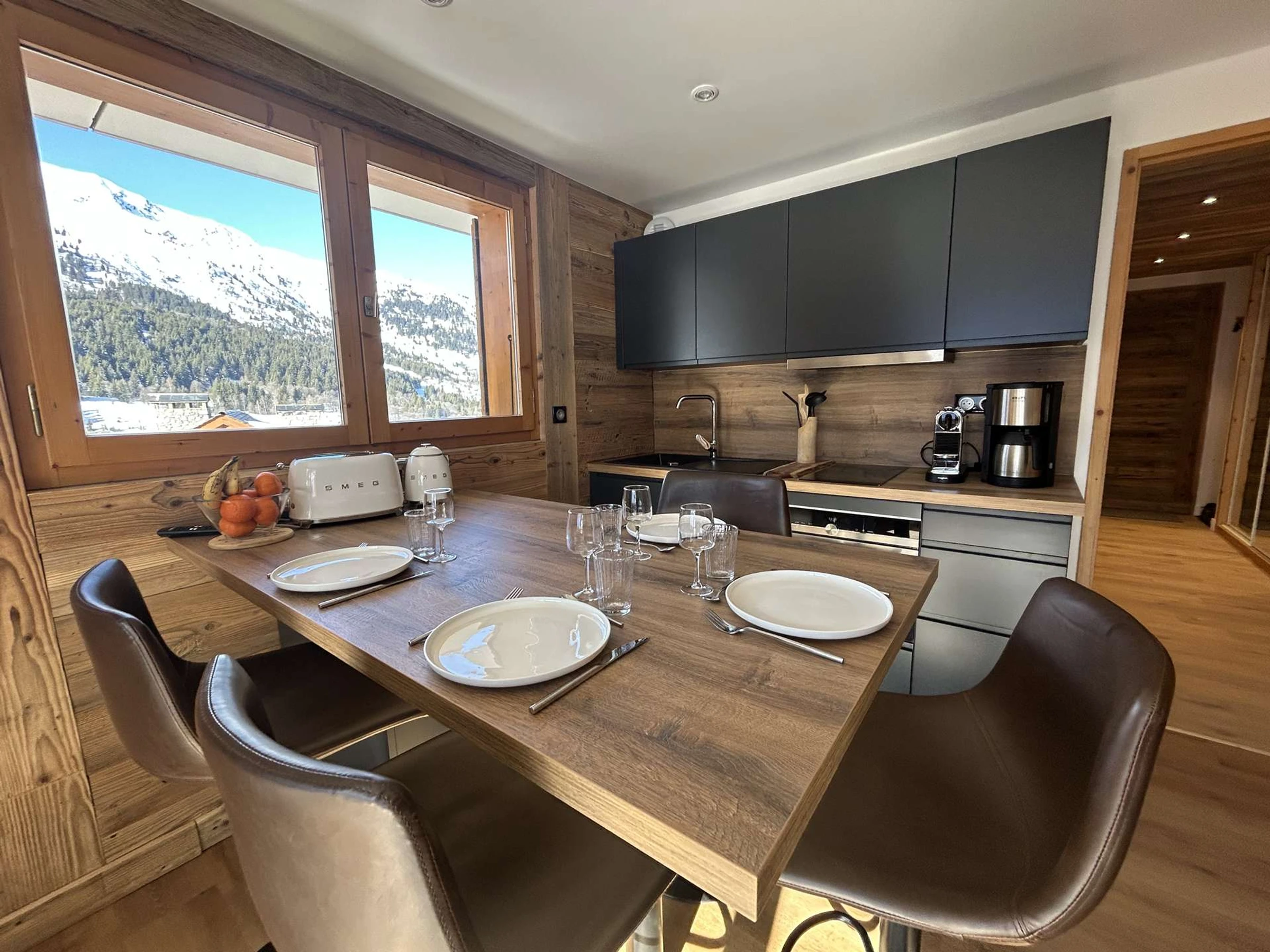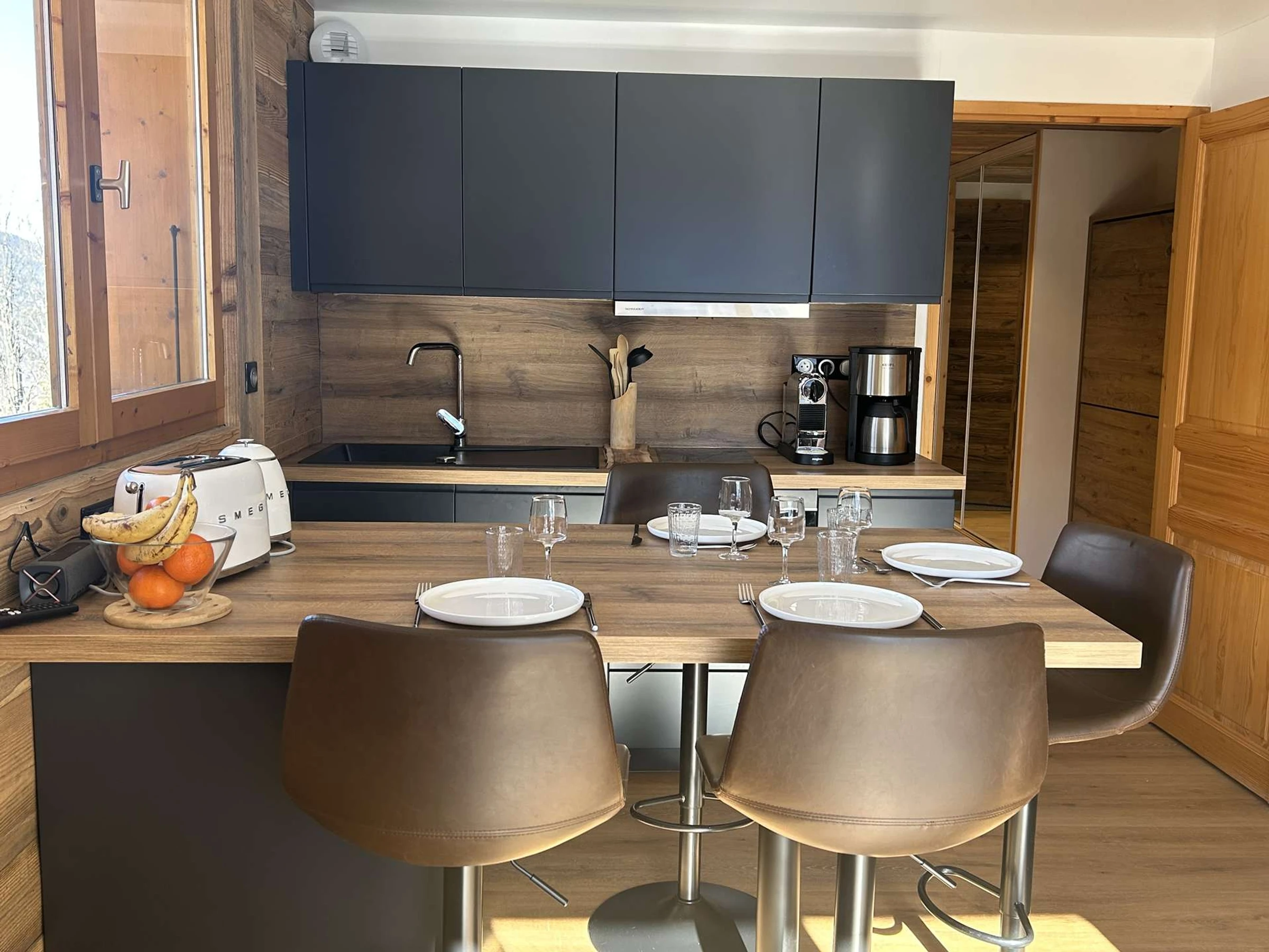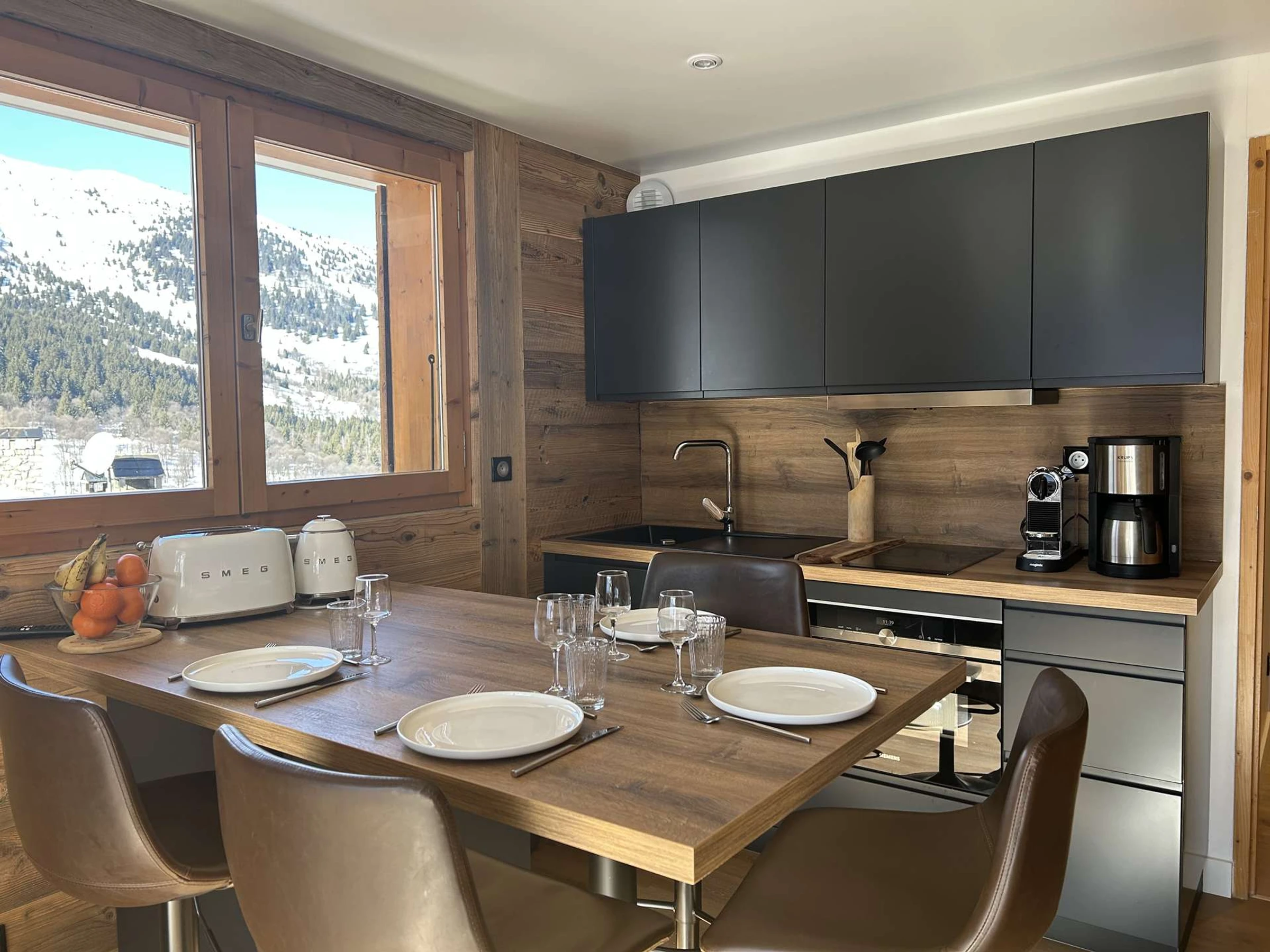 Ce bel appartement au style contemporain est situé au 2ème étage, avec ascenseur. Vous découvrirez une agréable pièce à vivre avec un balcon Sud, un salon avec un canapé et un espace repas très convivial disposant de la télévision. La cuisine au design moderne est très bien équipée et ouverte sur le séjour. Au niveau de l'entrée, vous disposerez d'une chambre avec 1 lit 140x190, une salle d'eau et des toilettes indépendantes. Dans l'entrée 1 ensemble de lits abattants simples en 80x190 très confortables. "Le couchage en hauteur est interdit aux enfants de moins de 6 ans". Un casier à skis n°4 au niveau de l'entrée.