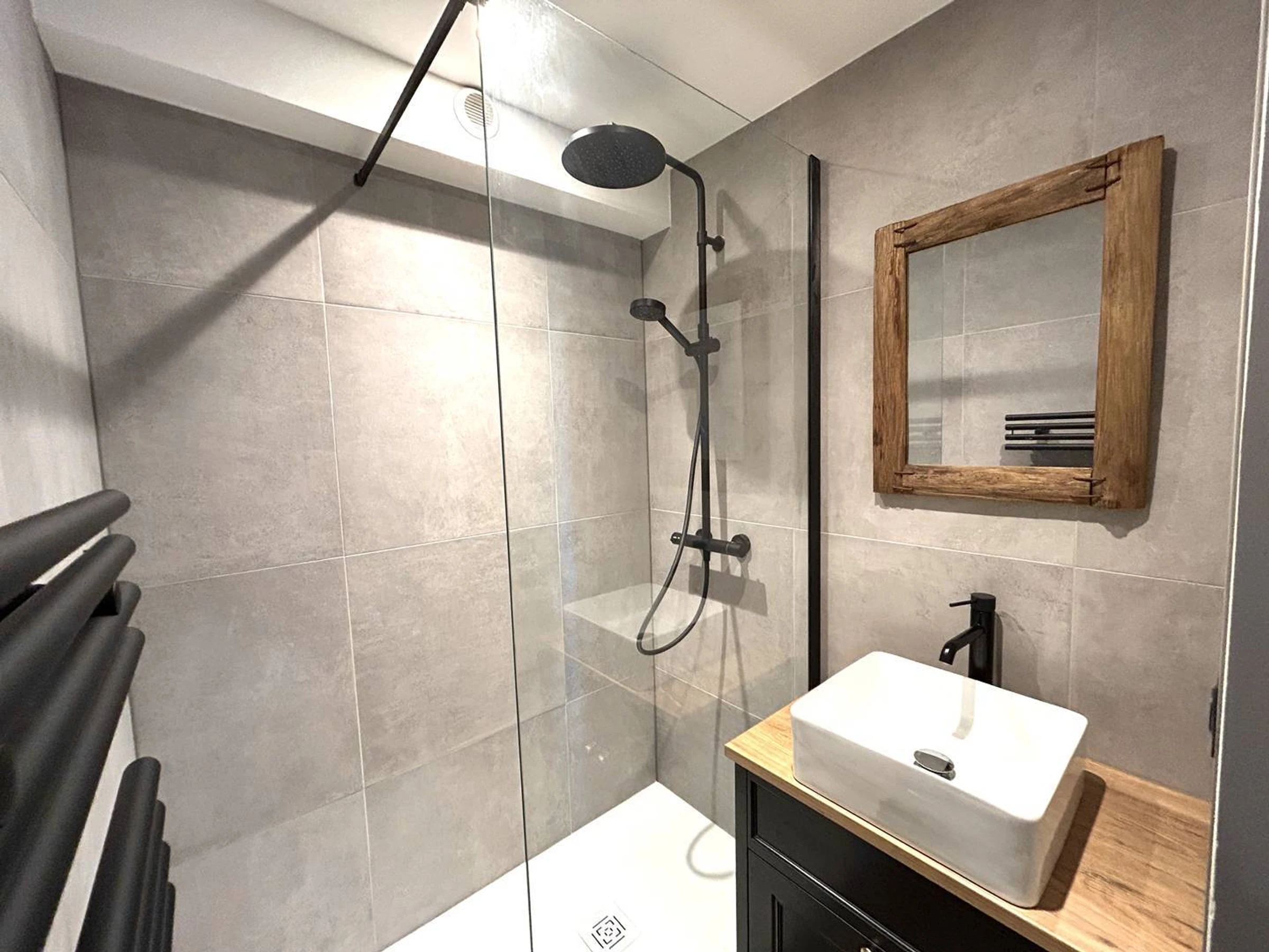 Un vaste hall d’entrée équipé d’un grand placard facilite le rangement du matériel de ski. La salle d’eau, élégante et contemporaine, comprend une douche à l’italienne, tandis que les WC indépendants sont dotés d’un lave-linge 3 kg pour encore plus de praticité.