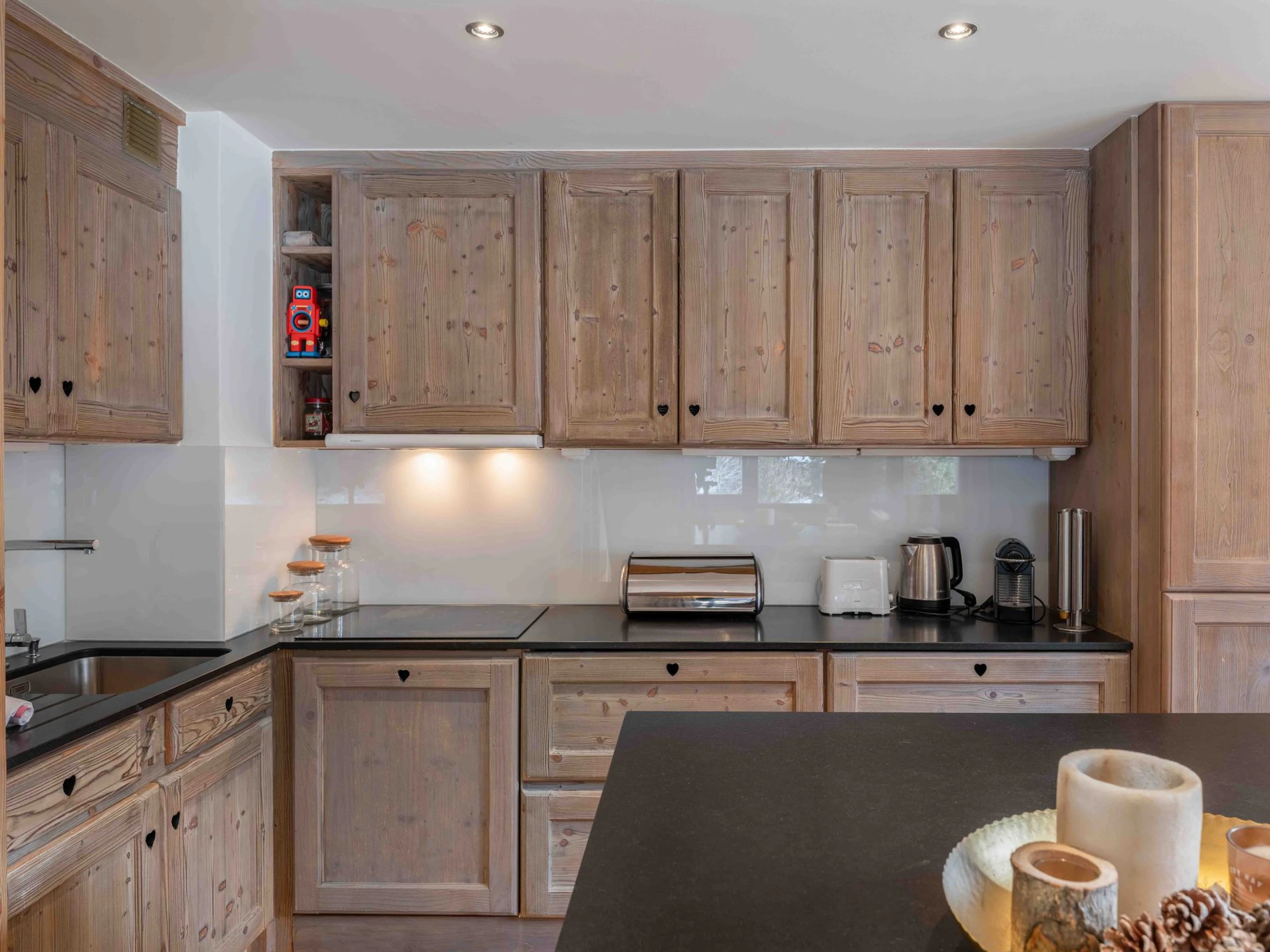 - Cuisine ouverte entièrement équipée : réfrigérateur, congélateur, four mixte, lave-linge, lave-vaisselle, plaque induction, bouilloire, grille-pain, Nespresso, appareil à raclette, service à fondue, presse agrumes électrique
