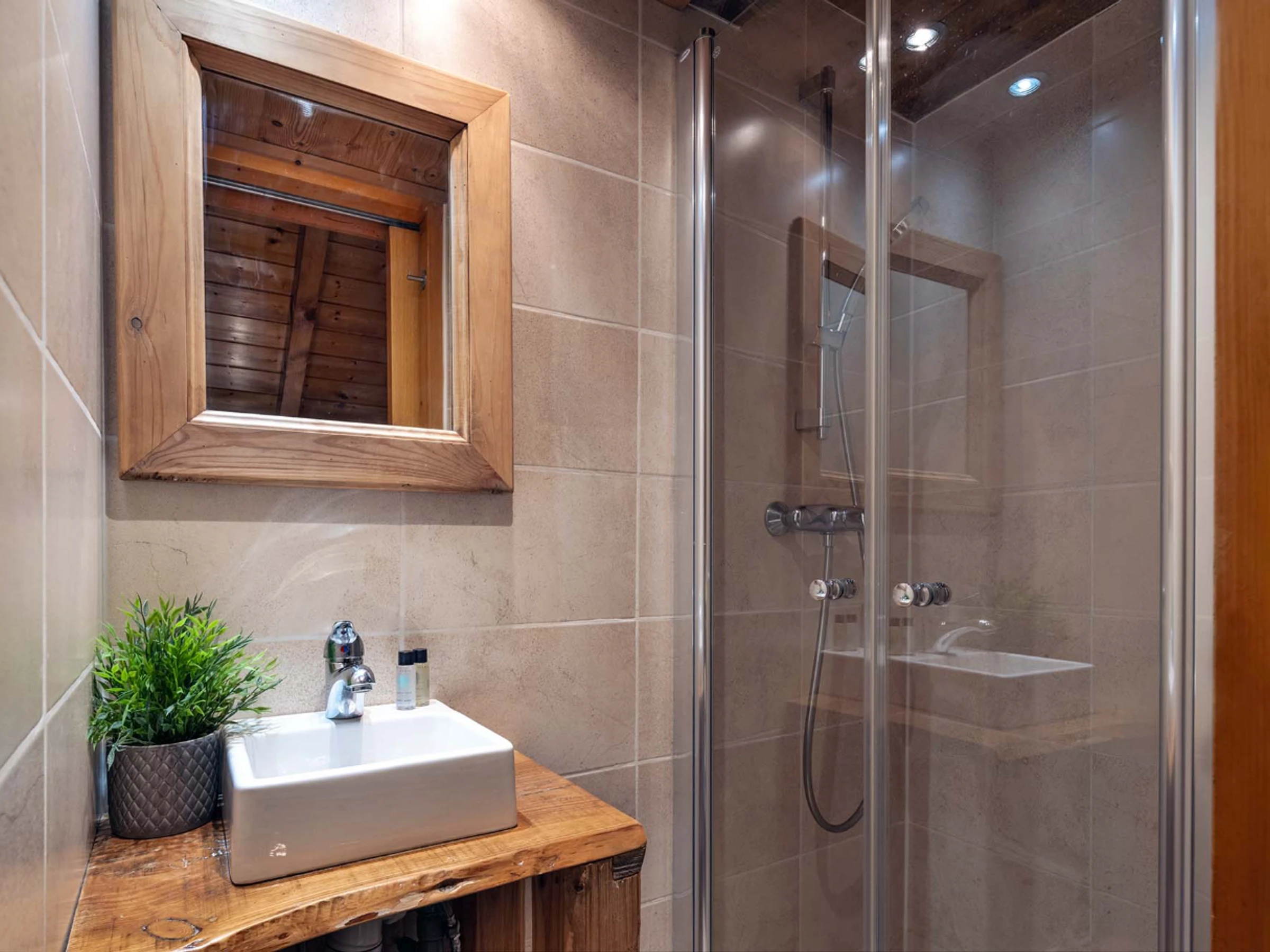 - Chambre 1 : lit double avec salle de douche, vasque et wc