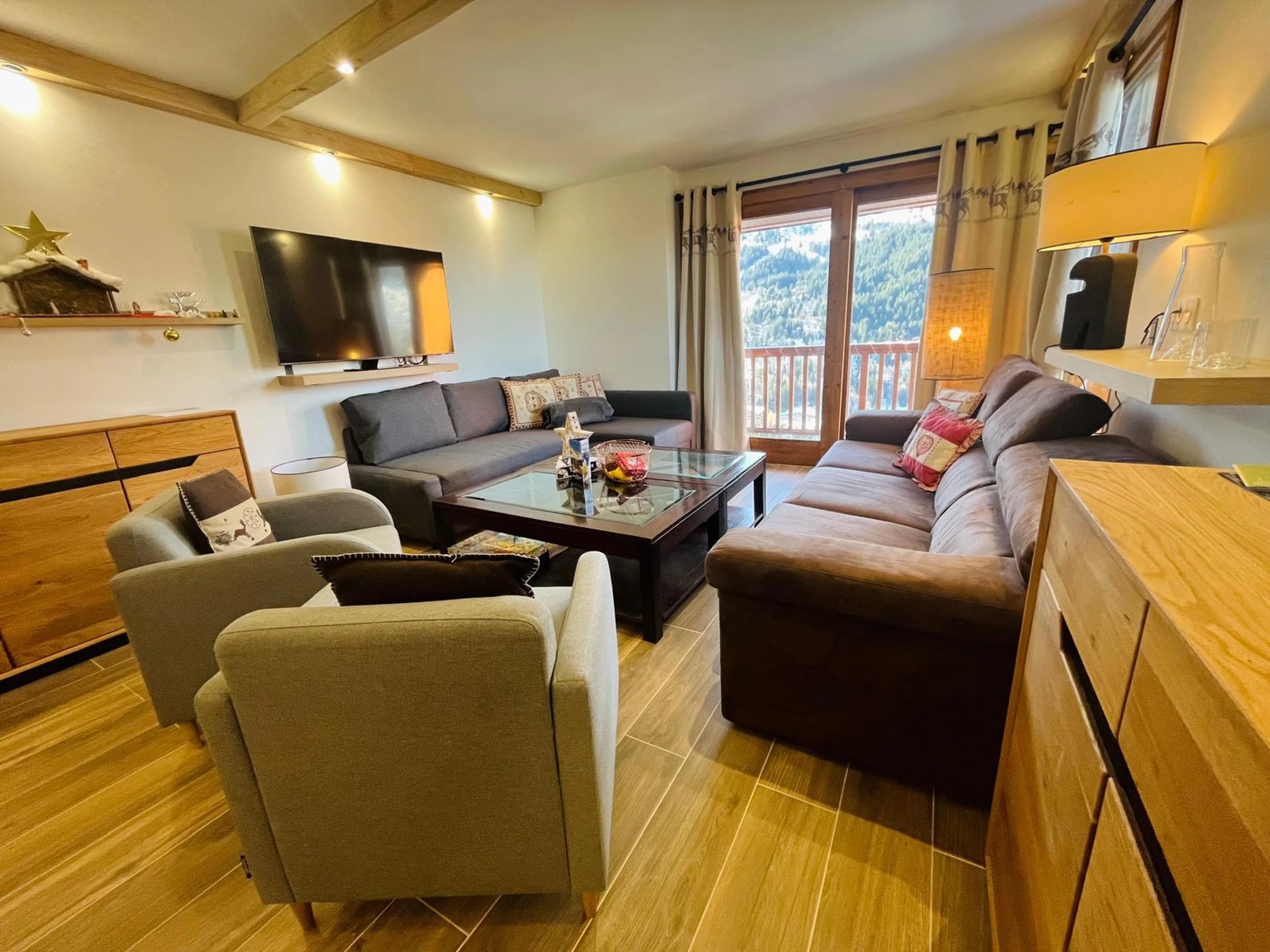 Venez découvrir le Peclet3A41, un appartement entièrement rénové avec goût, situé en étage, offrant une vue dégagée exceptionnelle sur les sommets des montagnes et la forêt de sapins.
