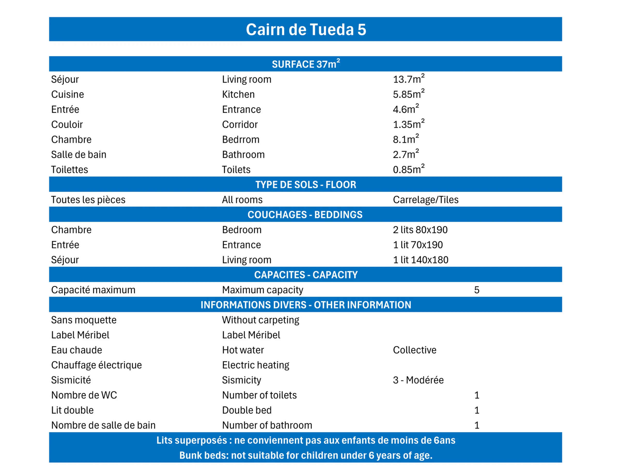 Le Cairn de Tuéda est un chalet individuel composé de 4 appartements. Il est située côté Châtelet, dans un envrironnement calme, à moins de 5mn des pistes et du centre commercial du Châtelet.