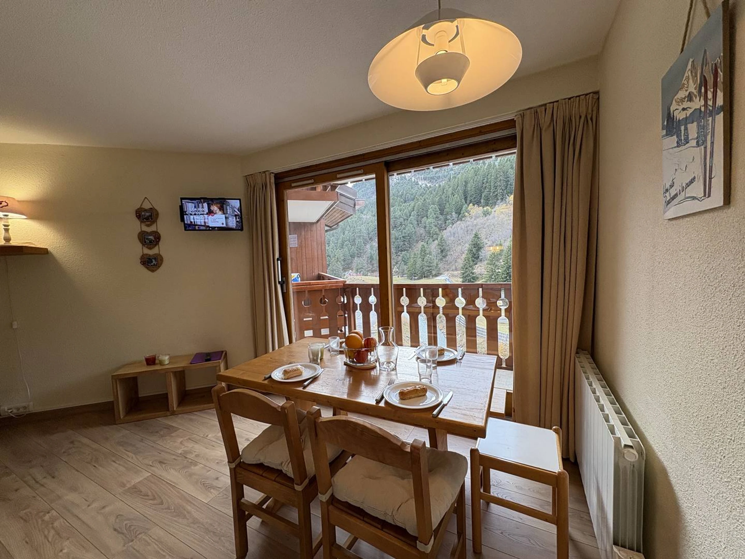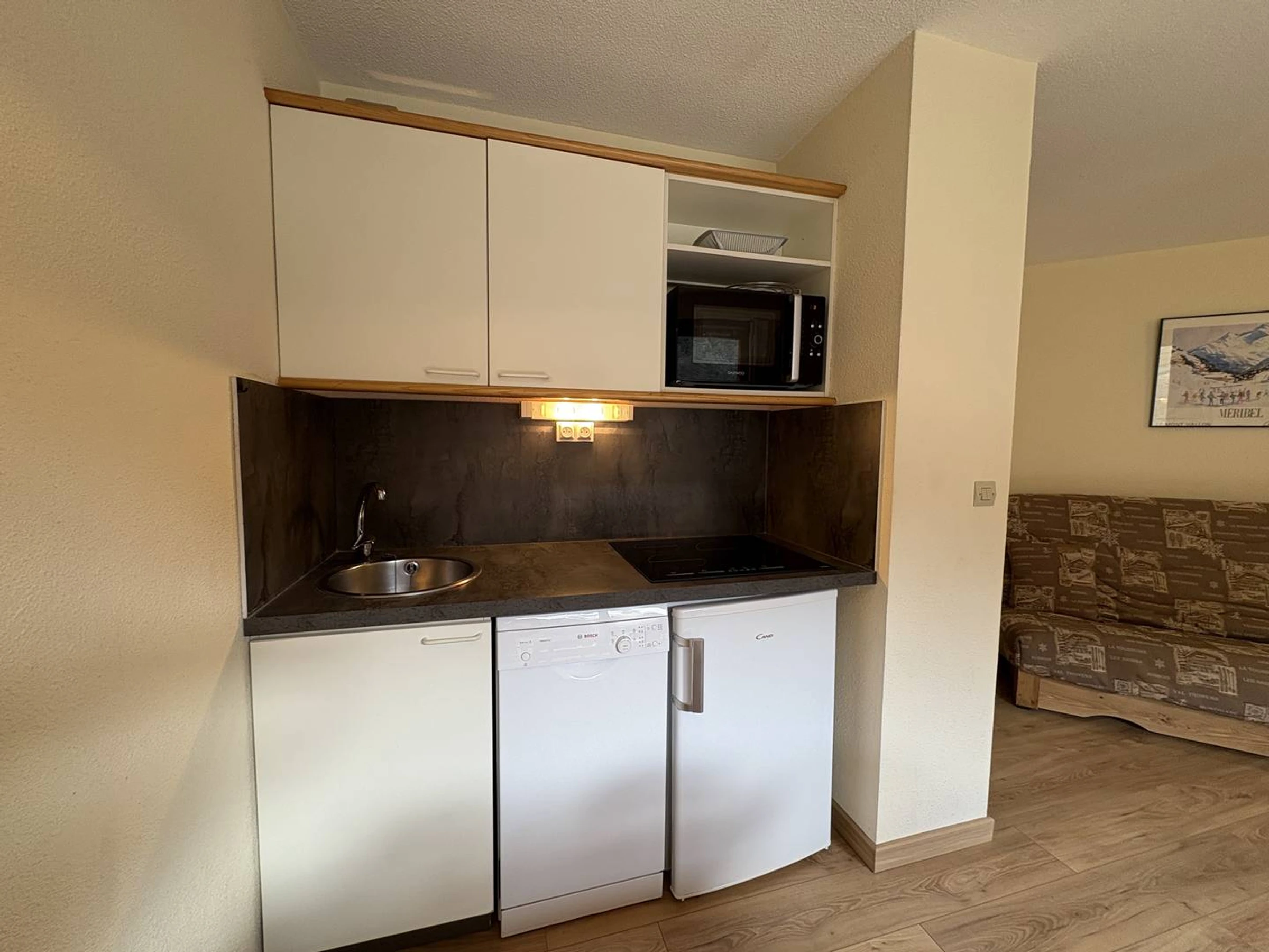 Séjour comprenant un canapé-lit (190x130) et une télévision. Une chambre avec 2 lits simples collés (80x190). Kitchenette équipée de plaques électriques, four micro-ondes, lave vaisselle, cafetière à filtre, grille pain, bouilloire et réfrigérateur. Salle de bains avec wc. Balcon. Ascenseur et casier à skis dans la résidence. 3ème étage. Animaux non admis. Appartement non fumeur.