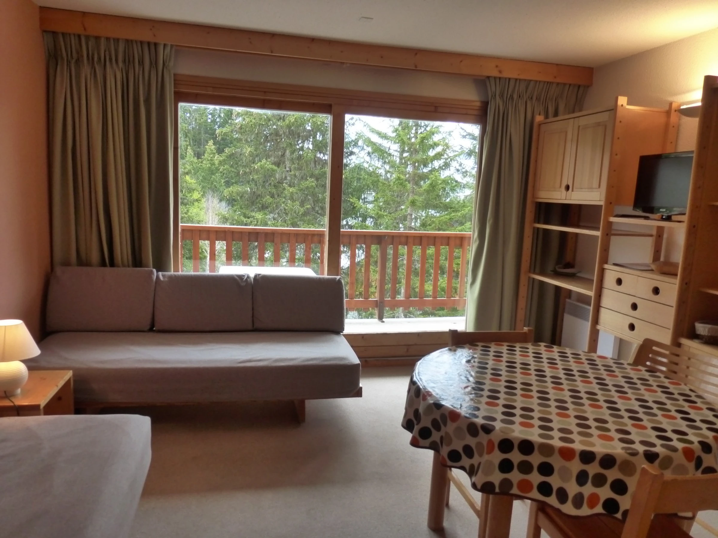 Pour vos vacances au ski ou vos vacances d'été à Méribel, réservez ce studio dans le quartier de l'Altiport au pied des pistes. Il bénéficie d'un balcon exposé Sud avec une vue sur les sapins et la montagne.