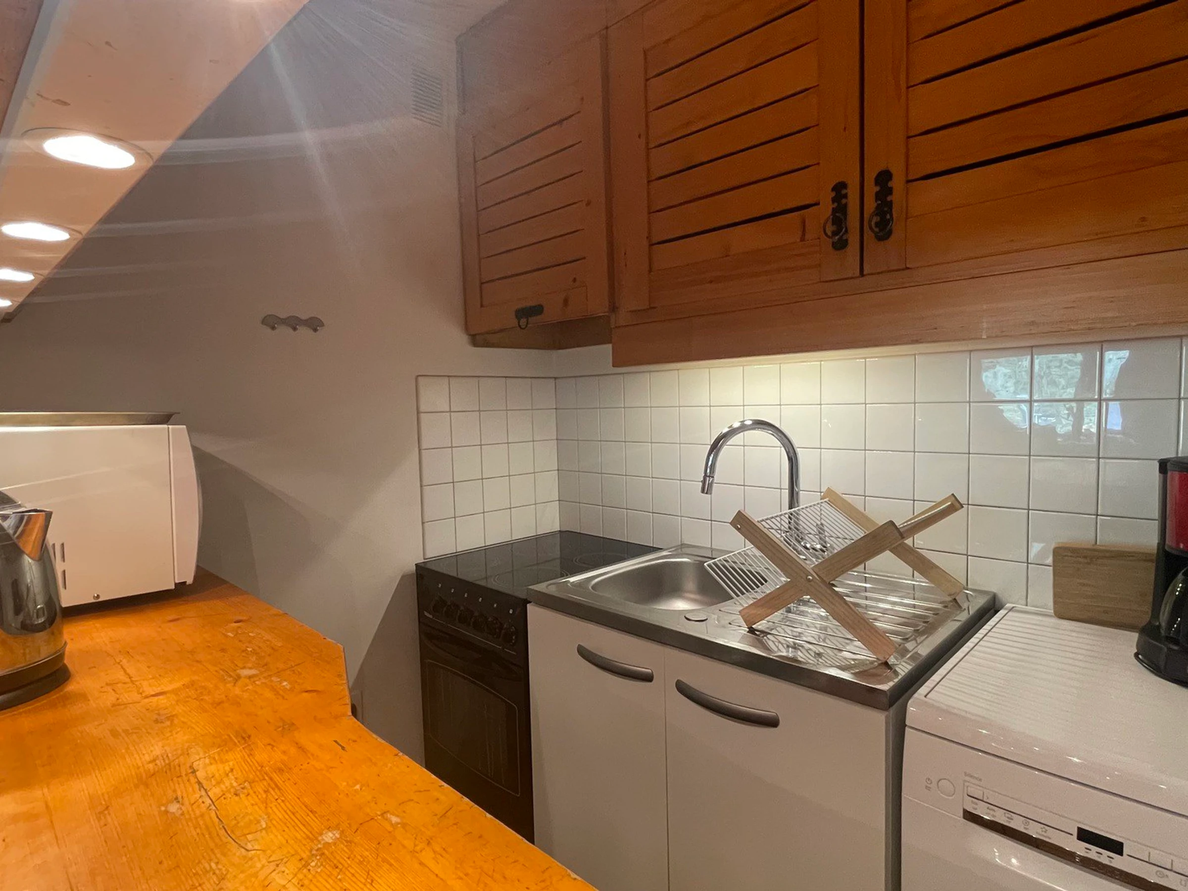 Elle est équipée avec des plaques électriques, un four à micro-ondes, un lave vaiselle et un réfrigirateur