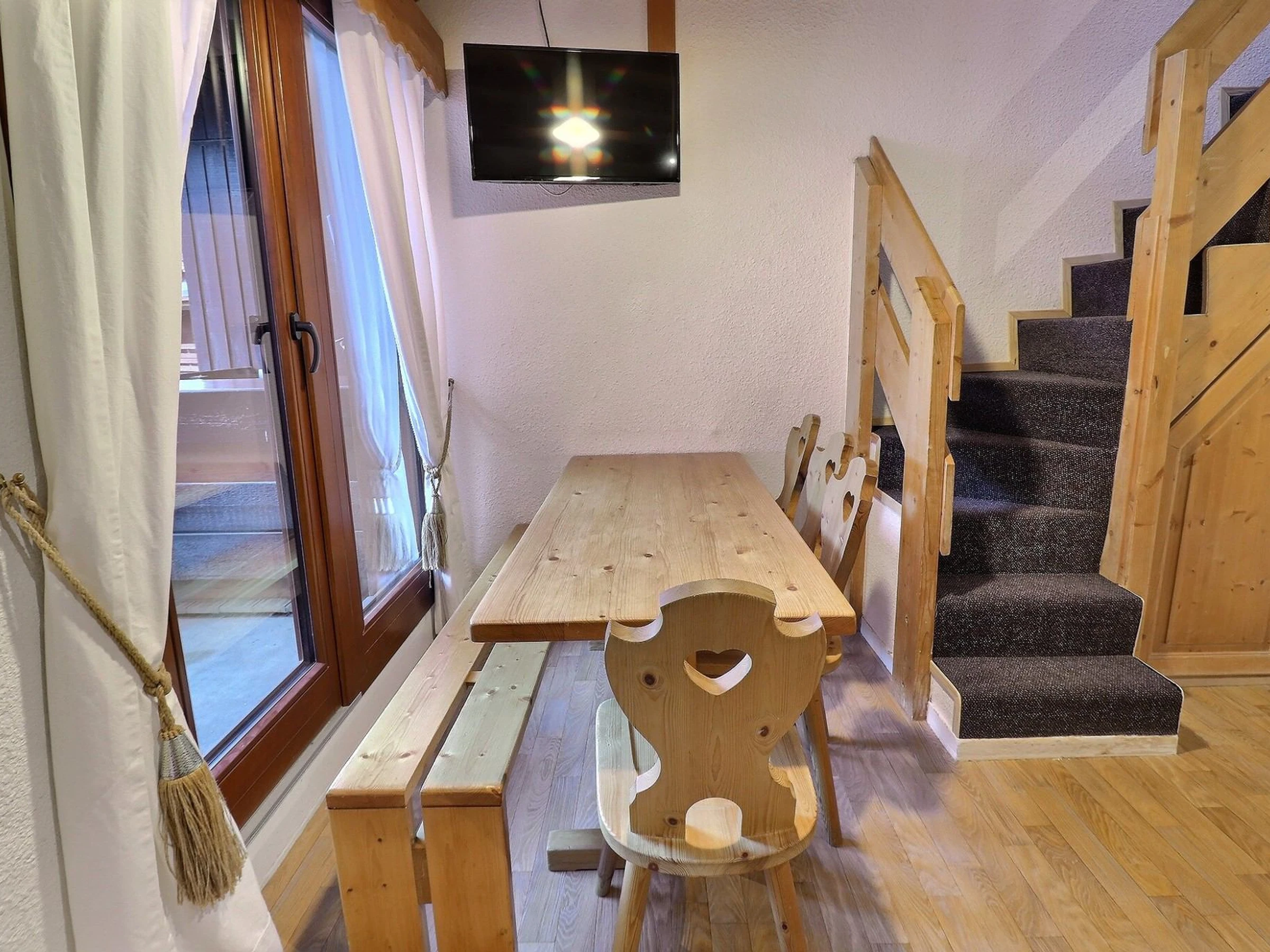 Pour rejoindre les pistes depuis l'appartement, rendez-vous aux casiers à ski de la résidence, puis dirigez vous vers la gauche afin d'accéder à la piste verte qui mène au départ principal des remontées mécaniques.