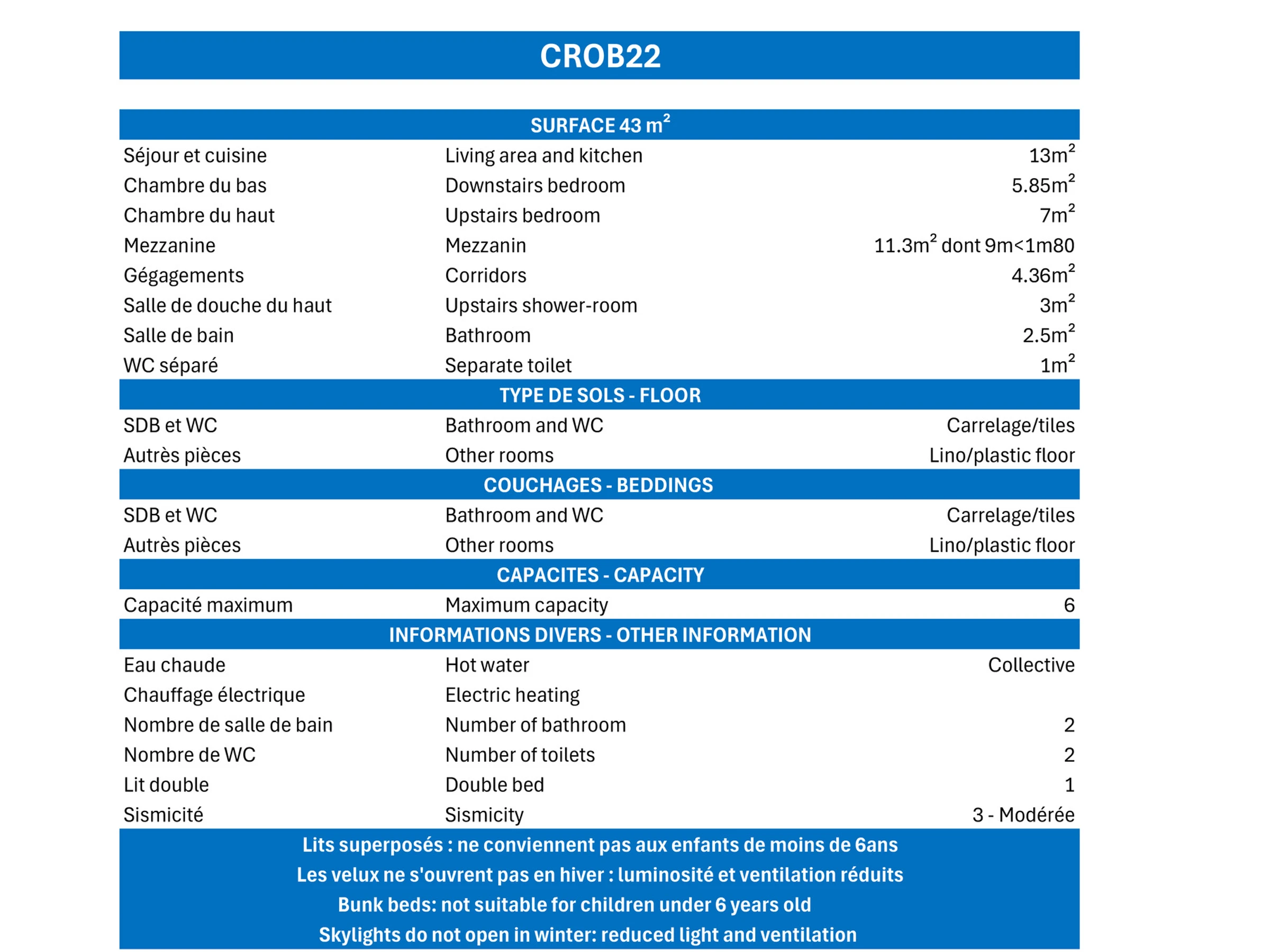 . Lit bébé : 40.0 € par séjour