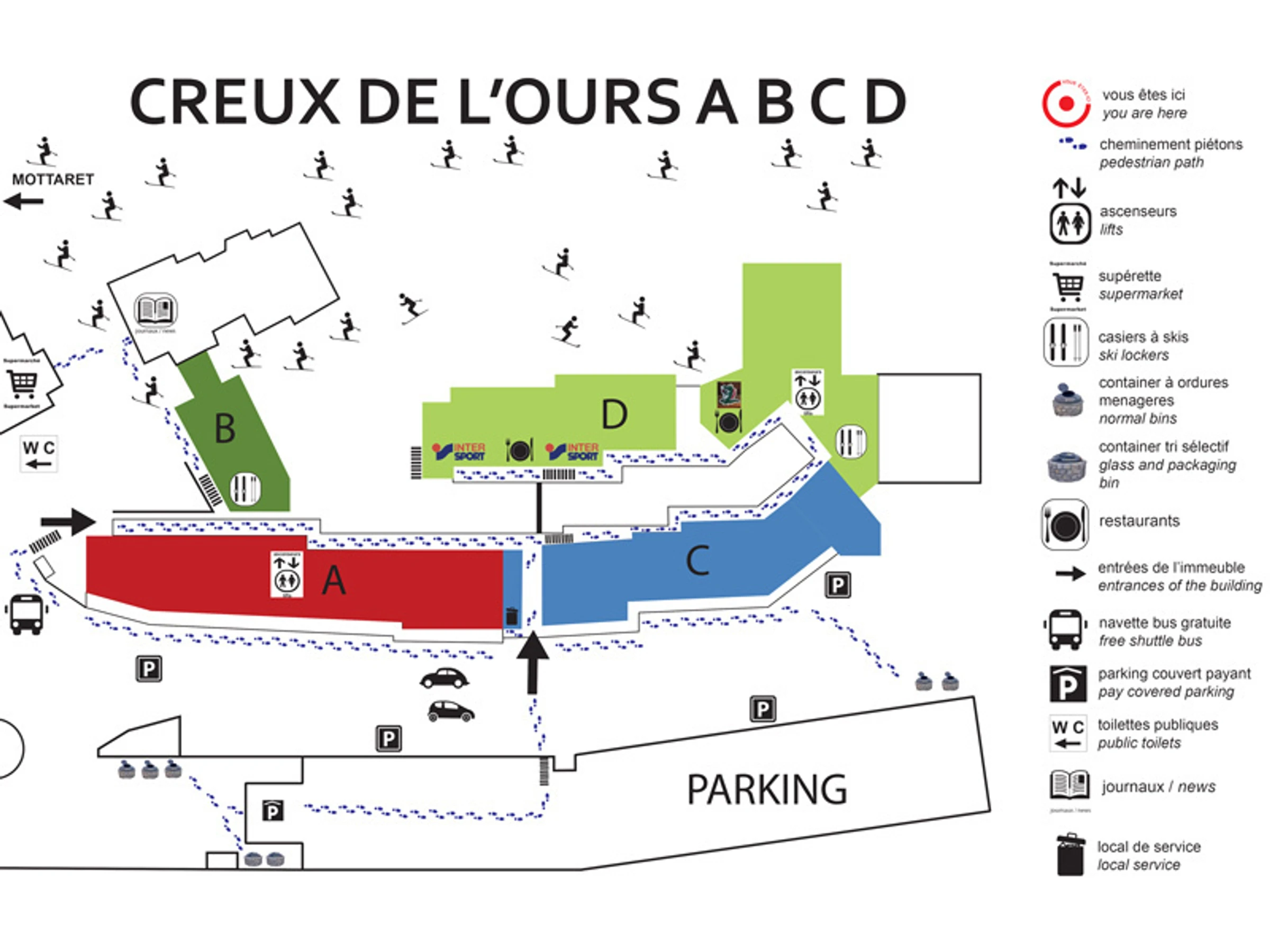 La résidence Creux de l'ours se situe en plein cœur du Hameau, au Laitelet. Elle est située aux pieds des pistes et des commerces.