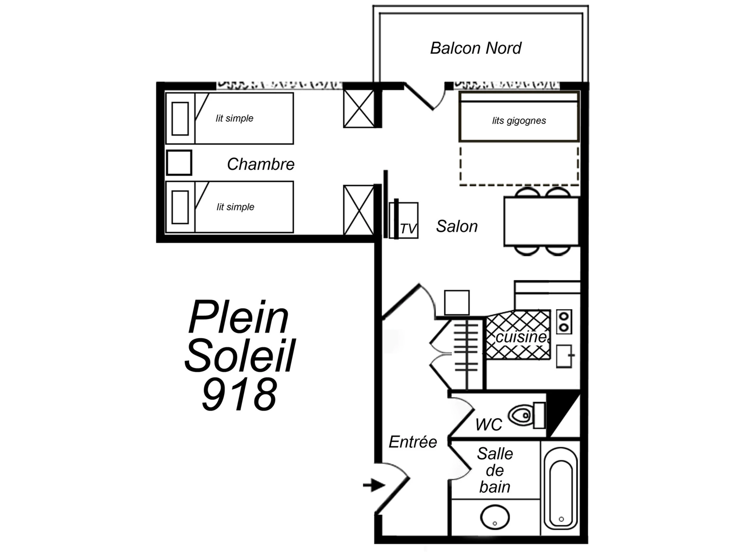 2 Pièces, 4 Personnes, 33m², Balcon Nord