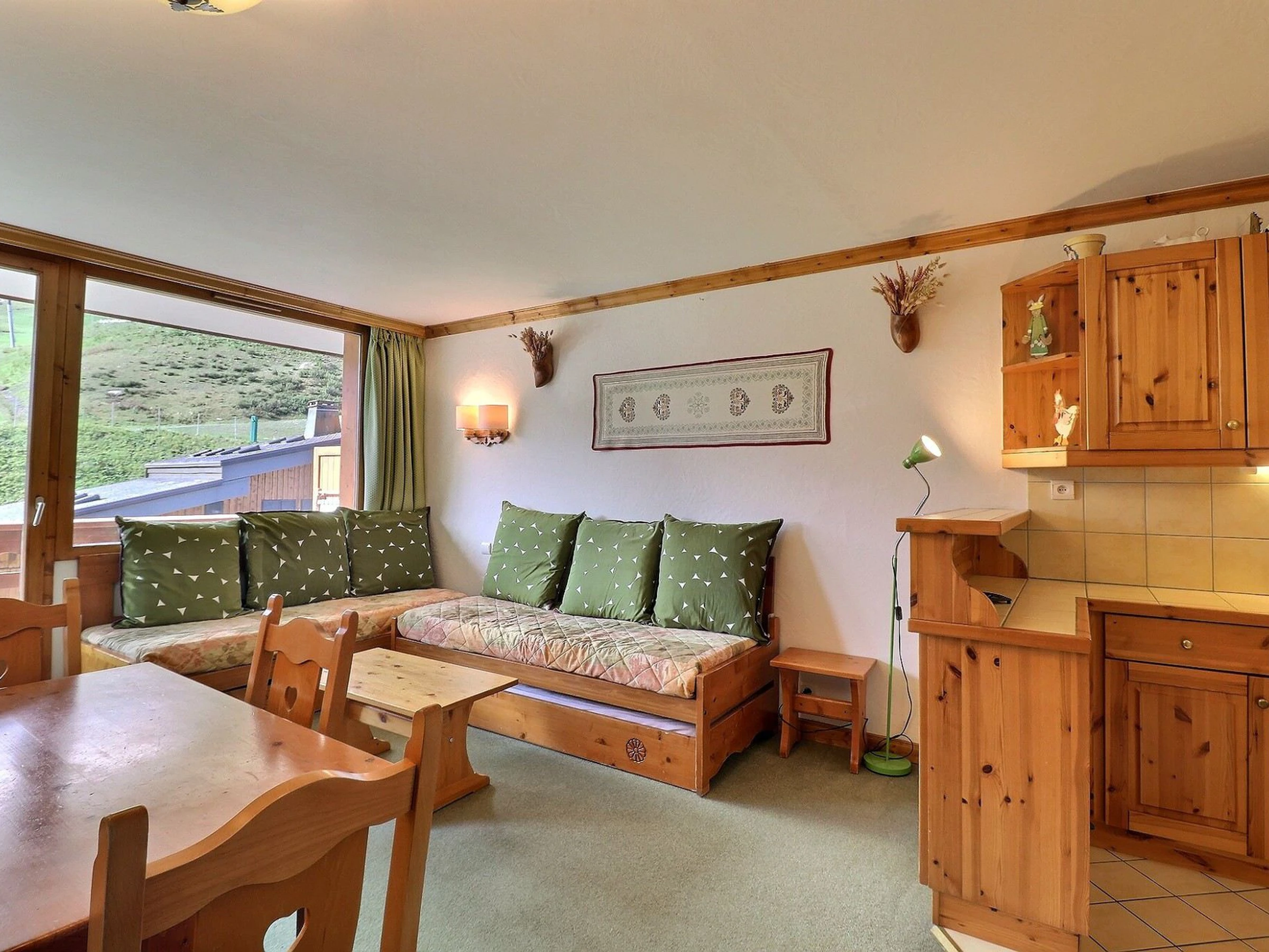 Séjour : 1 ensemble de lits gigognes (80x190), 1 banquette lit 1 personne (80x190)